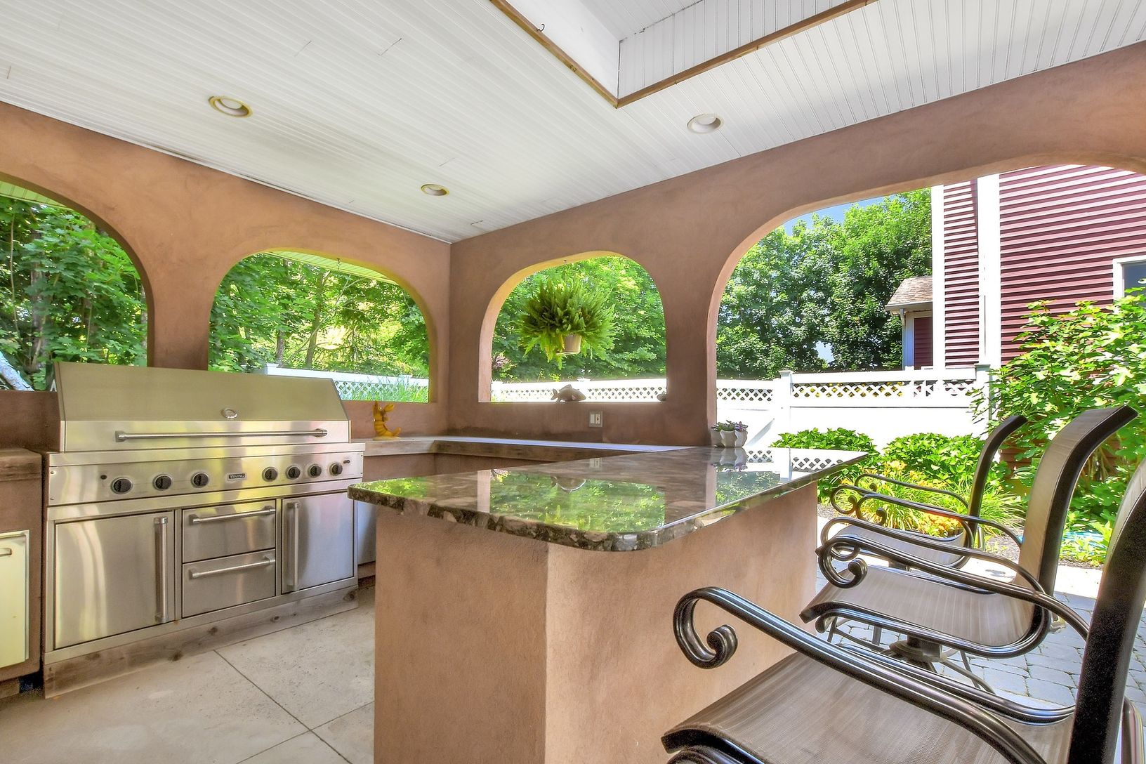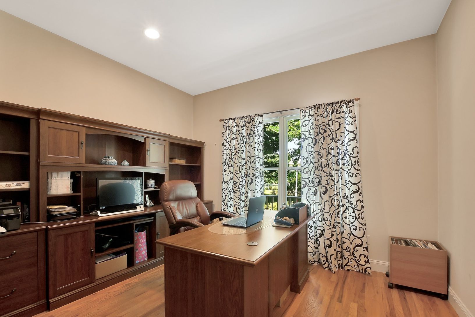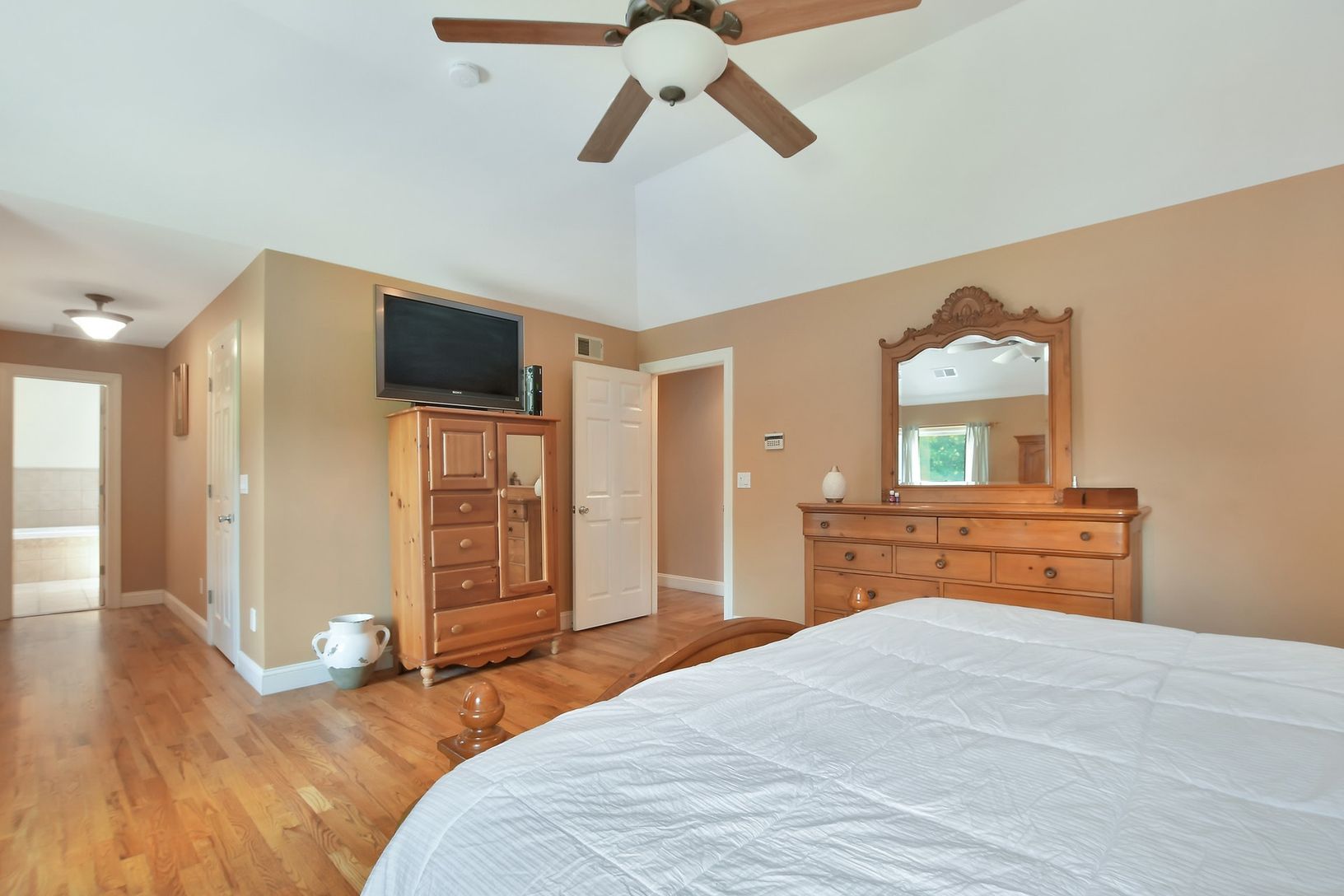 Surrounded by professionally landscaped grounds and buffered by hundreds of mature oak and maple trees this one of a kind post modern gem on 2.2 acres was born to shine. The large country-style front porch and grand entry foyer are a prelude for good things to come. The over-sized chef’s kitchen is a joy to behold and includes an l- shaped center island with wine fridge and breakfast seating, black granite tops, custom maple cabinets and comme