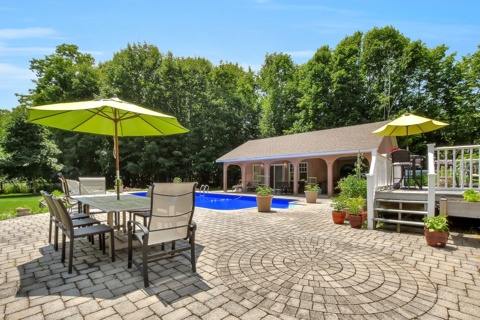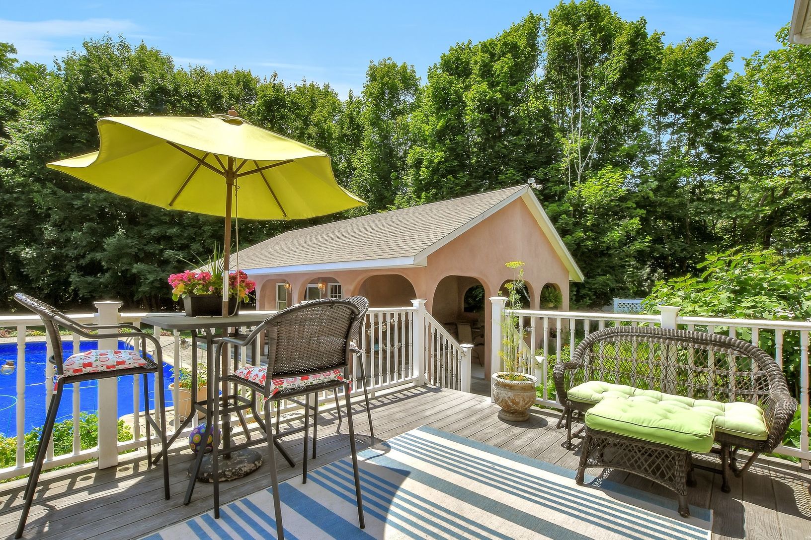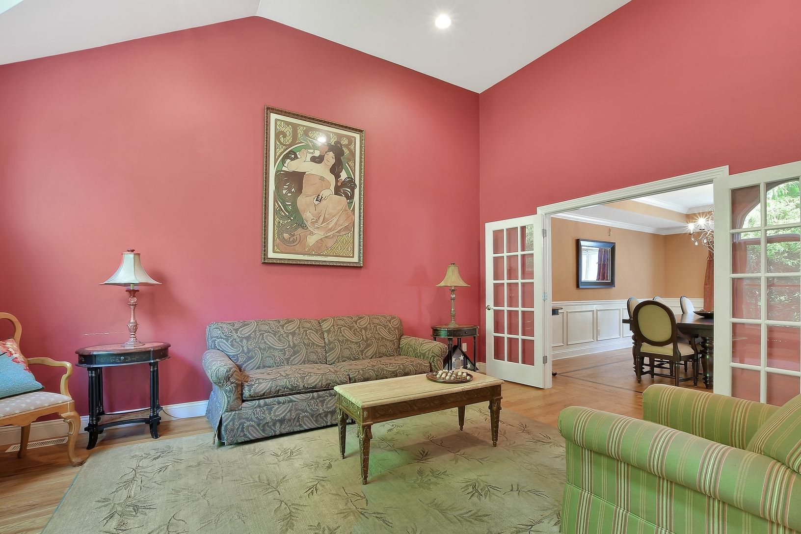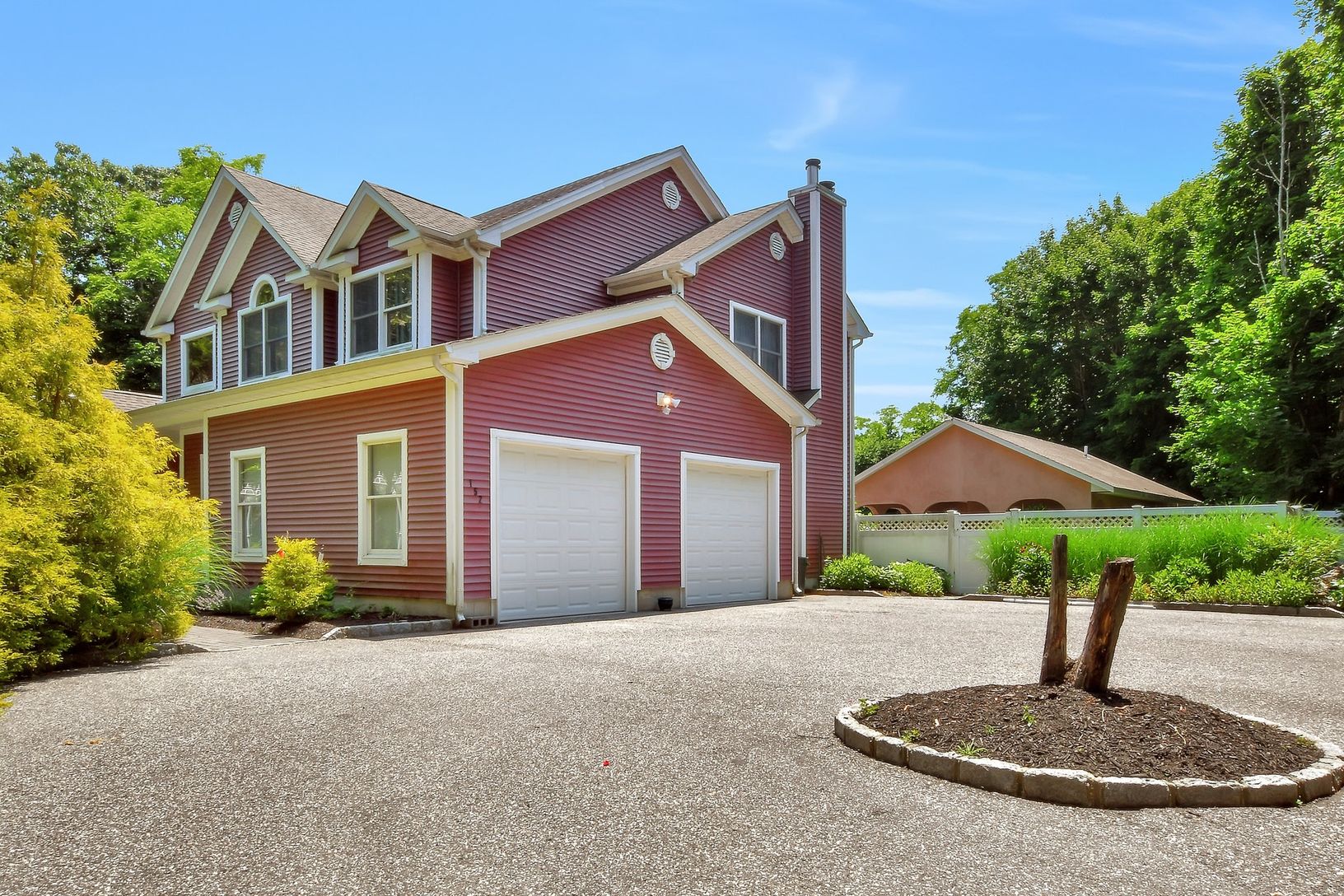 Surrounded by professionally landscaped grounds and buffered by hundreds of mature oak and maple trees this one of a kind post modern gem on 2.2 acres was born to shine. The large country-style front porch and grand entry foyer are a prelude for good things to come. The over-sized chef’s kitchen is a joy to behold and includes an l- shaped center island with wine fridge and breakfast seating, black granite tops, custom maple cabinets and comme