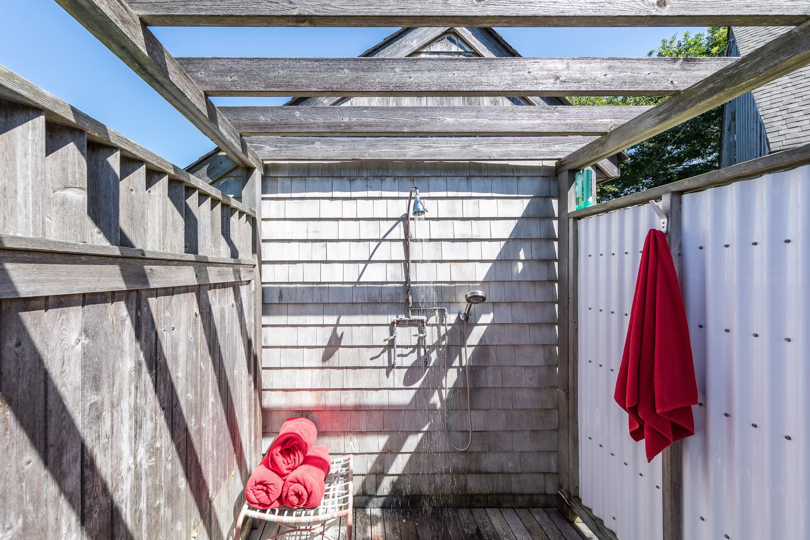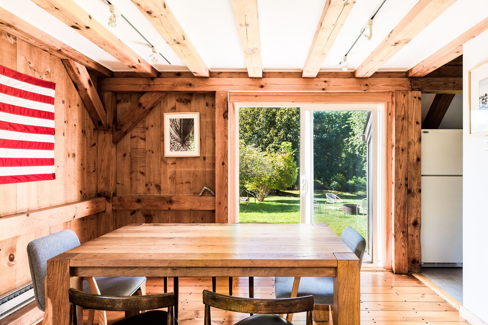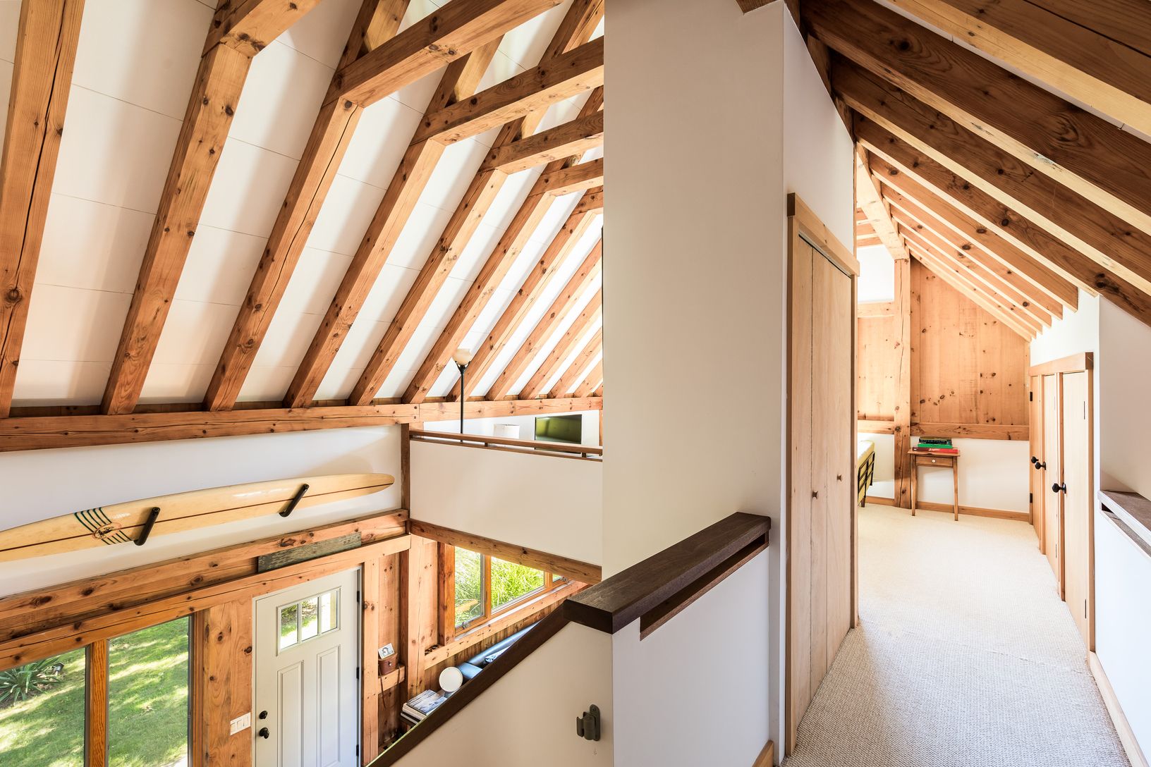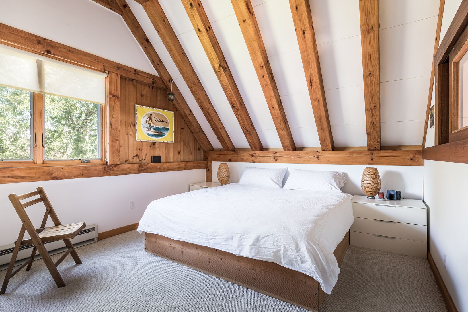 Centrally located in Montauk, this lovely home offers two bedrooms and two full bathrooms on a park-like property set back from the road. The spacious first floor living area is open and light filled with large picture windows and sliders to the rear of the property. There is a wood burning in the living room, while the dining area and kitchen are situated with easy patio access. This level has a full bathroom, guest bedroom, and a walk-in pan