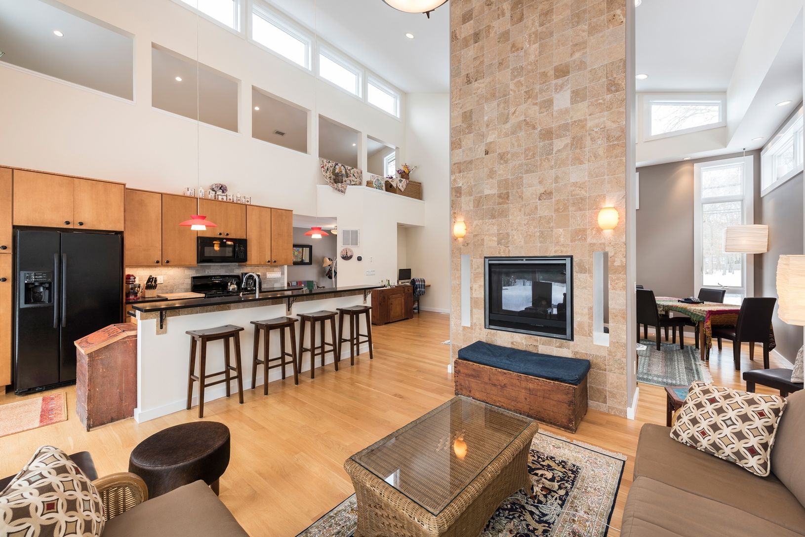 This "like new" contemporary three bedroom, three and one-half bath home is in turnkey condition. When you enter through the foyer you will know that this is the "perfect" fit for the Hamptons lifestyle that you seek. The soaring ceilings in the great room give such a great feeling of open space. The beautiful kitchen shares the dining and adjacent living areas. A double-sided gas fireplace is just what you want for a chilly evening. During th