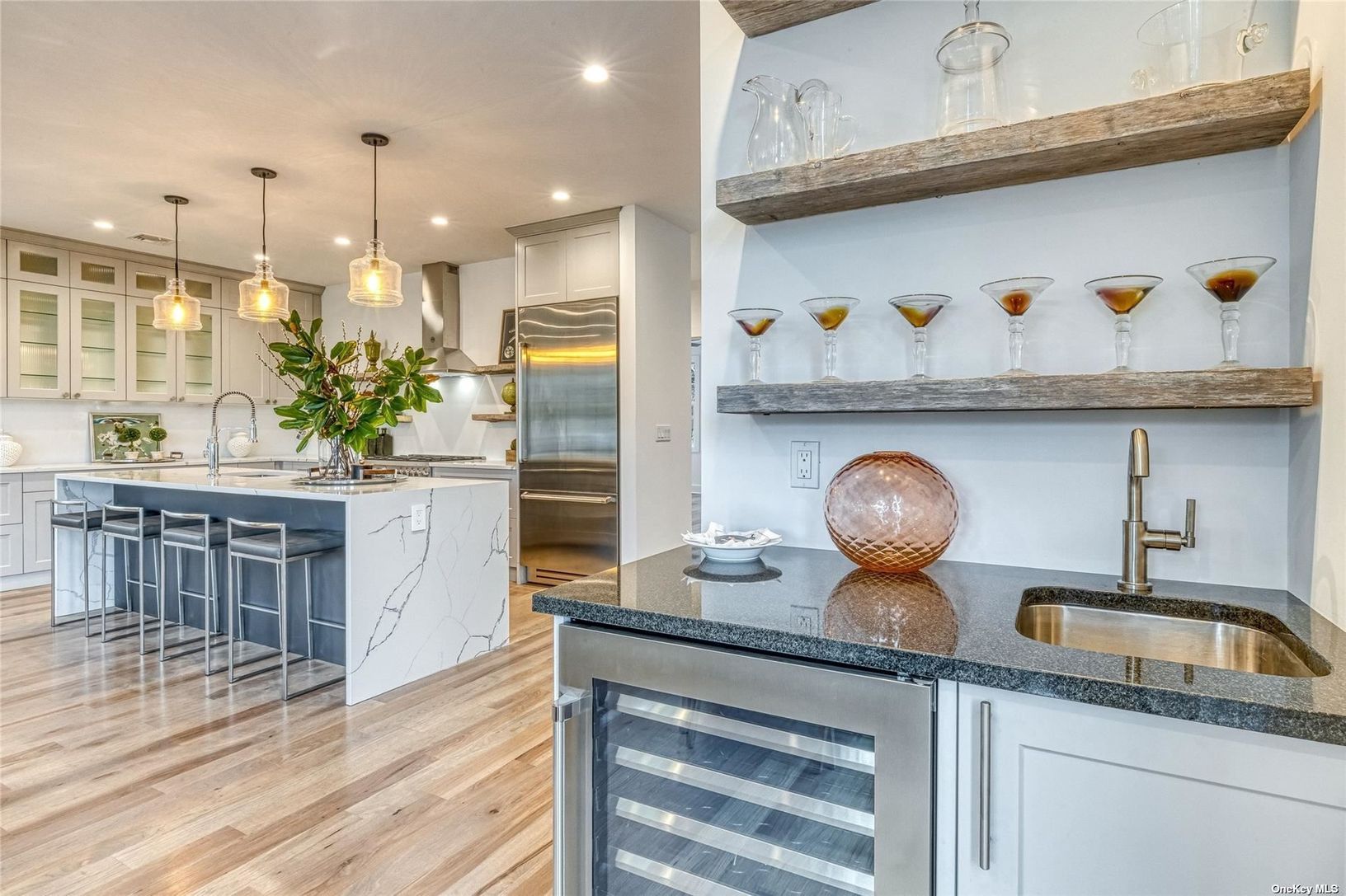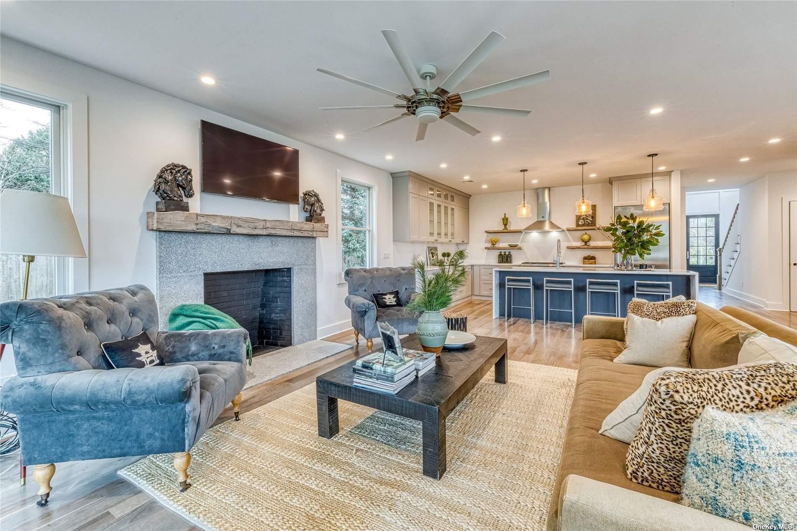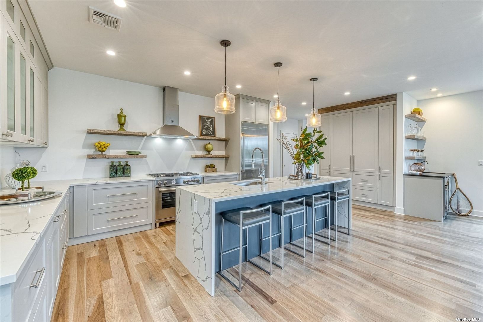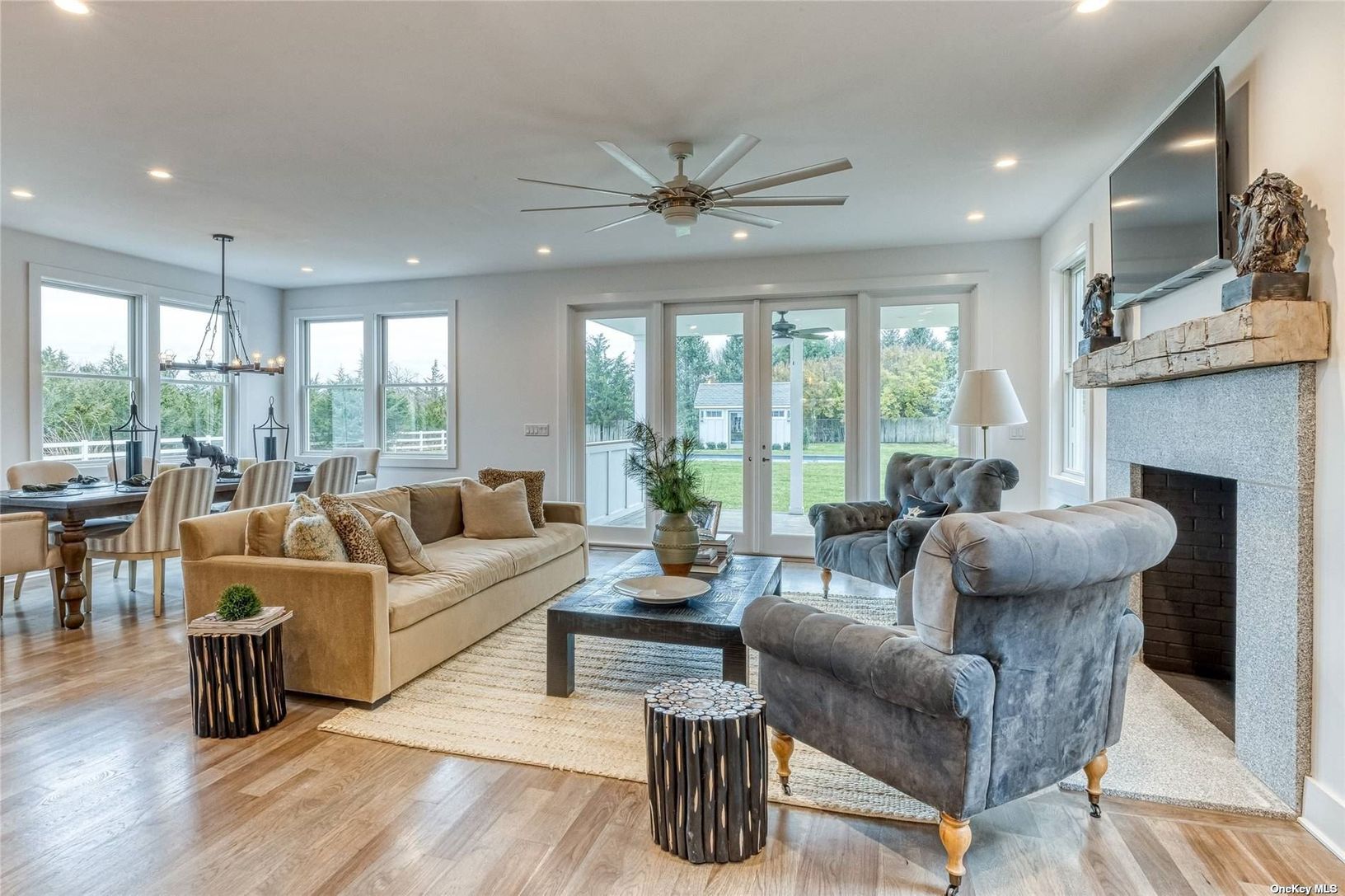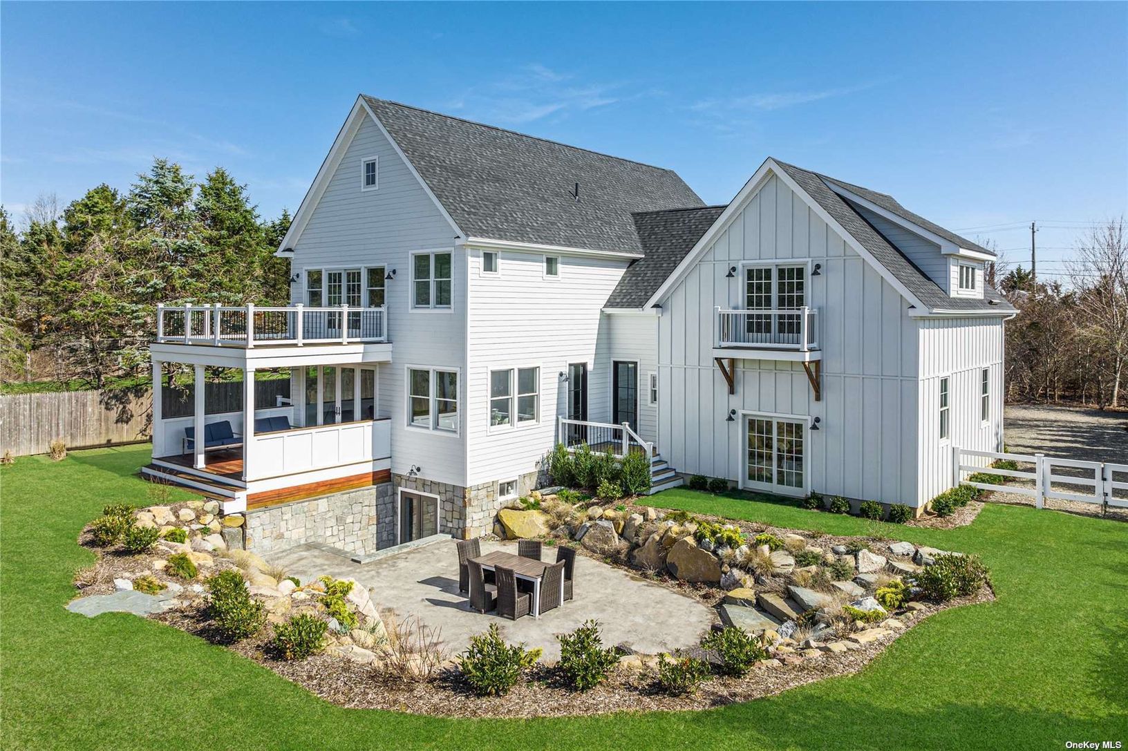 Be ready to be wowed when you enter this custom built luxury new construction home situated on a private acre in the coveted North Fork hamlet of Jamesport! No expense was sparred in the construction, landscaping and finishes of this hidden gem. Enjoy solid wide plank hickory floors throughout, 9ft ceilings throughout entire home as well as basement. The grand entrance/foyer leads into an open concept living area with gourmet kitchen with high