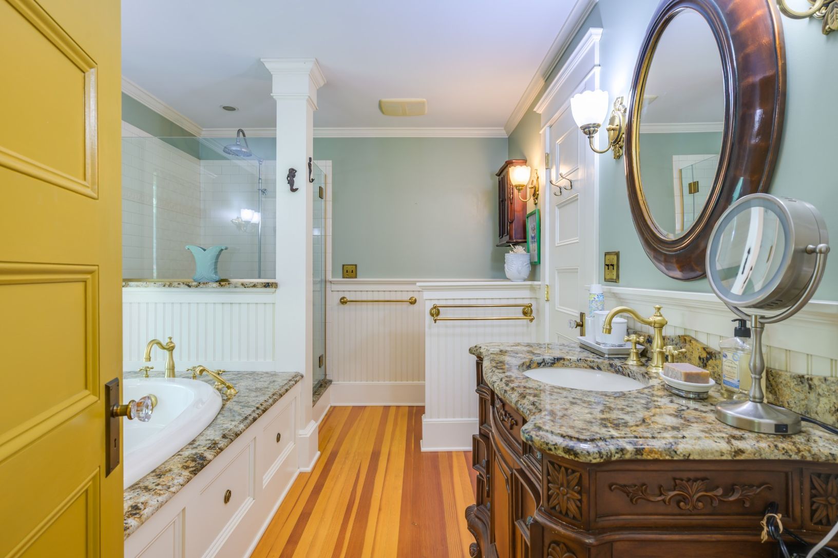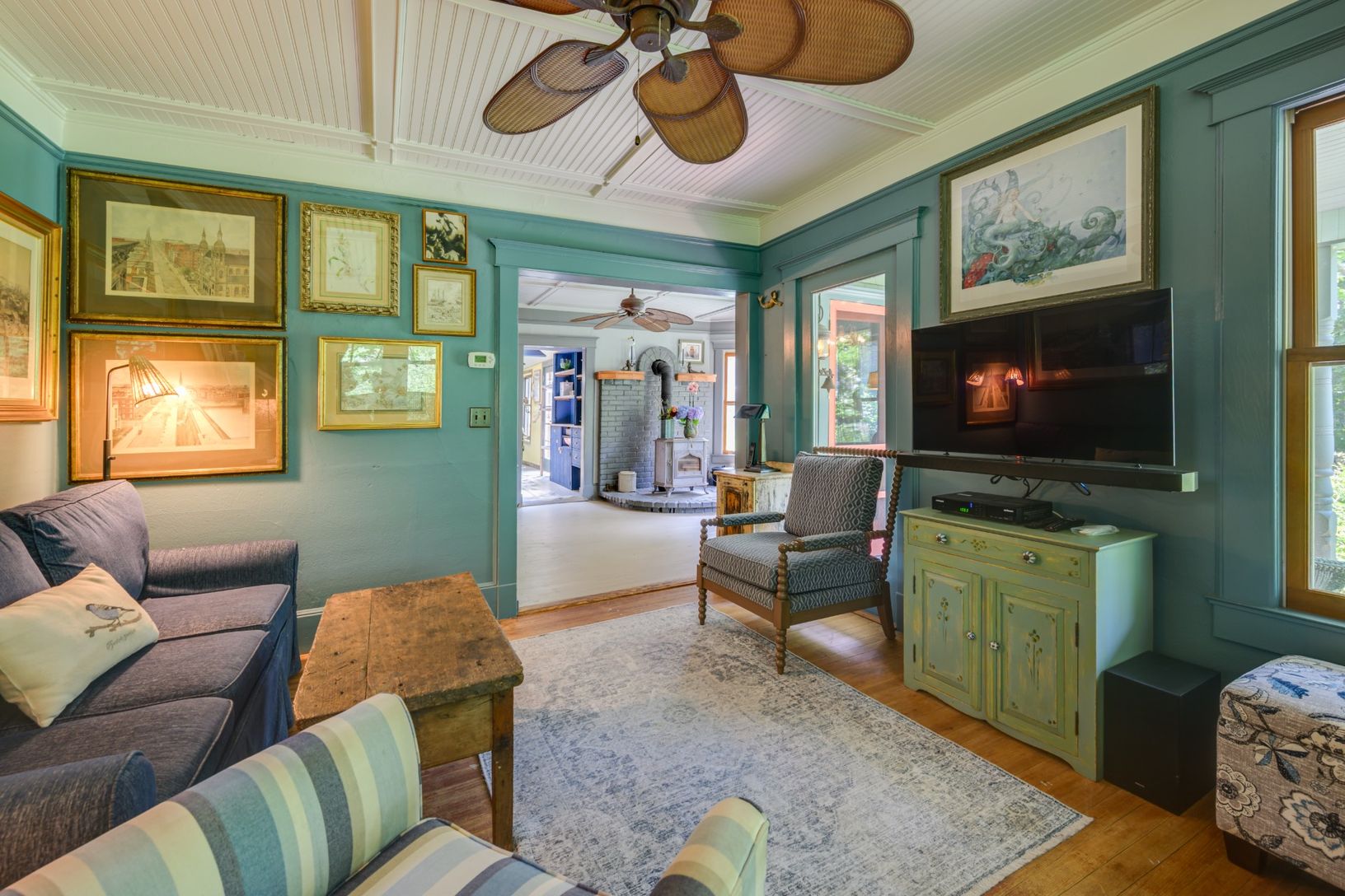*ANNUAL TAXES $10,998* An exquisite escape about two miles to the ocean, this property offers privacy, nature, and space with multiple buildings and 2 residences. It is zoned multi-family, which makes it a rare and desirable income-producing property. You'll be greeted by a charming gate that welcomes you through a wisteria archway to the wraparound covered front porch. Across the grounds, multiple gardens with natural species attract butterfl