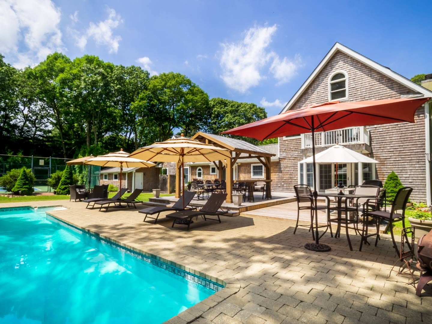 Enjoy your summer in this well appointed five bed, two and a half bath home, ideally located within close proximity to the Villages of Sag Harbor and Southampton and just three blocks to beautiful Peconic Bay Beach for swimming. The home offers all the entertainment perks; heated saltwater pool, all weather tennis with US Open colors, gourmet kitchen, satellite TV, Internet connection, indoor outdoor sound plus a great interior with upscale de