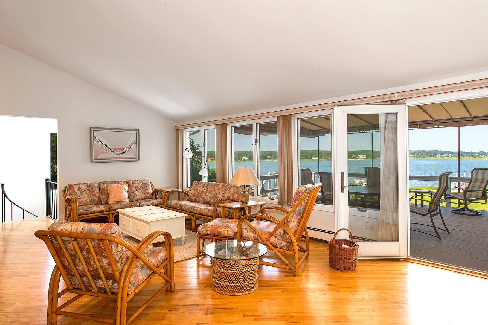 Sag Harbor Village waterfront home with room for pool, features 4 bedrooms, 3 baths, fireplace, attached 2 car garage, large elevated deck overlooking sunsets. Village home on .64 acres with magnificent waterfront sunsets. Views overlooking Sag Harbor cove. Rare opportunity in prestigious Redwood area.