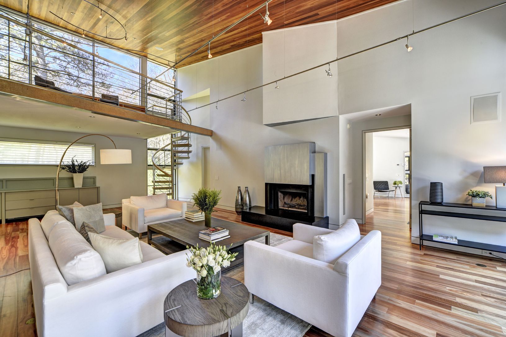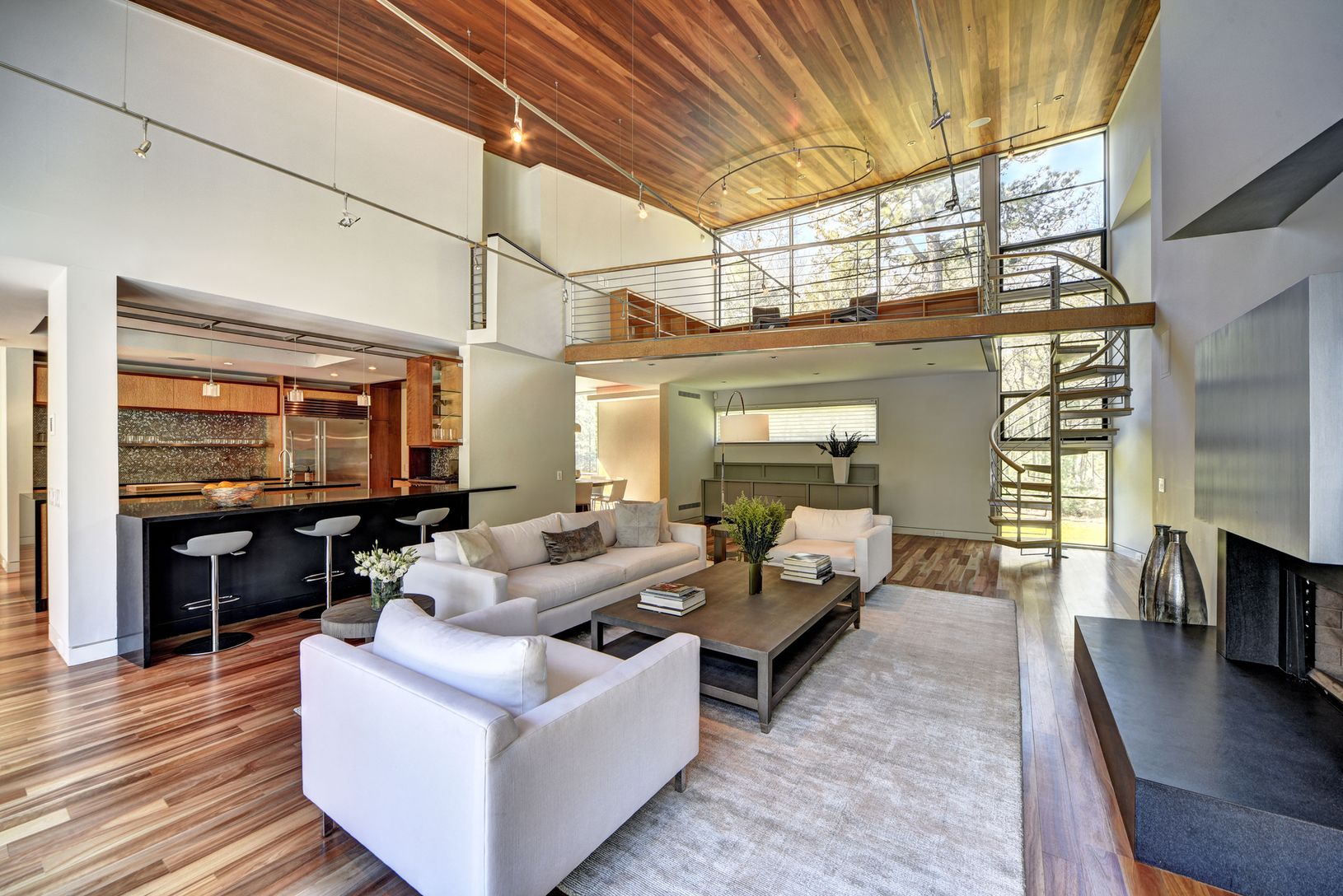 3 acres of bucolic seclusion yet a short drive to both "downtown" Sag Harbor and East Hampton Village. The two-story, 5,400-square-foot home boasts 5 bedrooms (with a master and junior master on the first floor), 5 full baths, 2 half baths, custom-designed chef's kitchen, loft library hovering over double height ceiling living area, raised fireplace, CAC, glass spiral staircase tower and a finished basement. Soaring glass windows provide vie