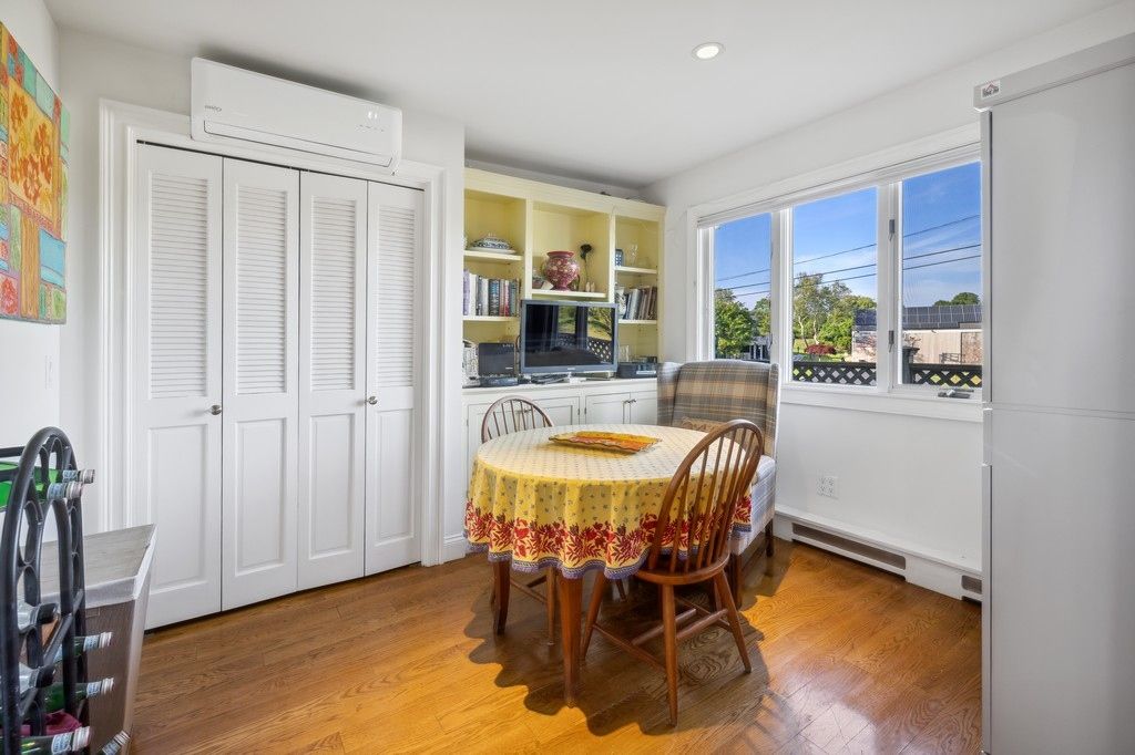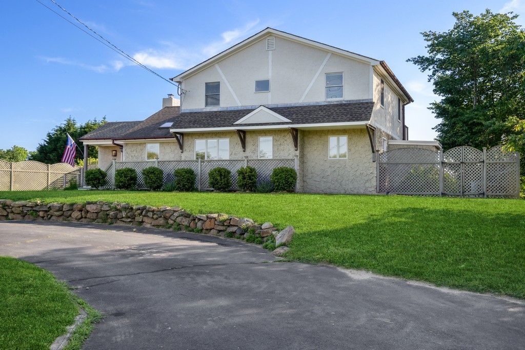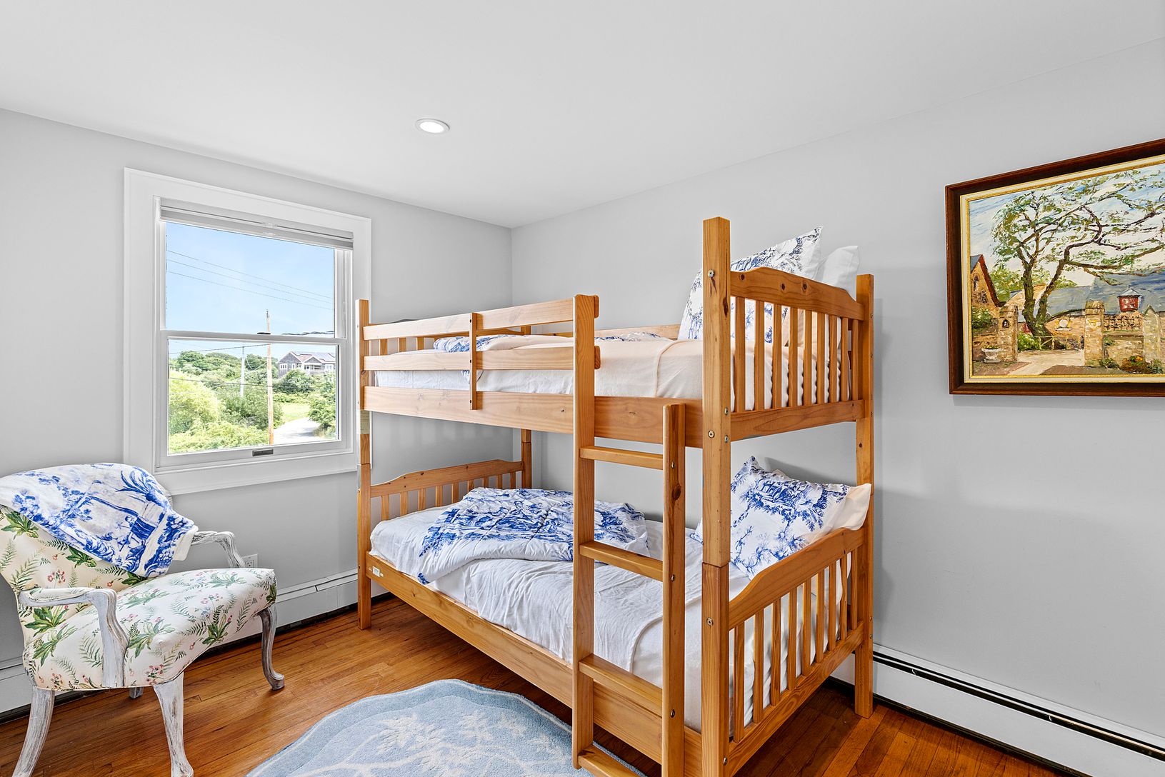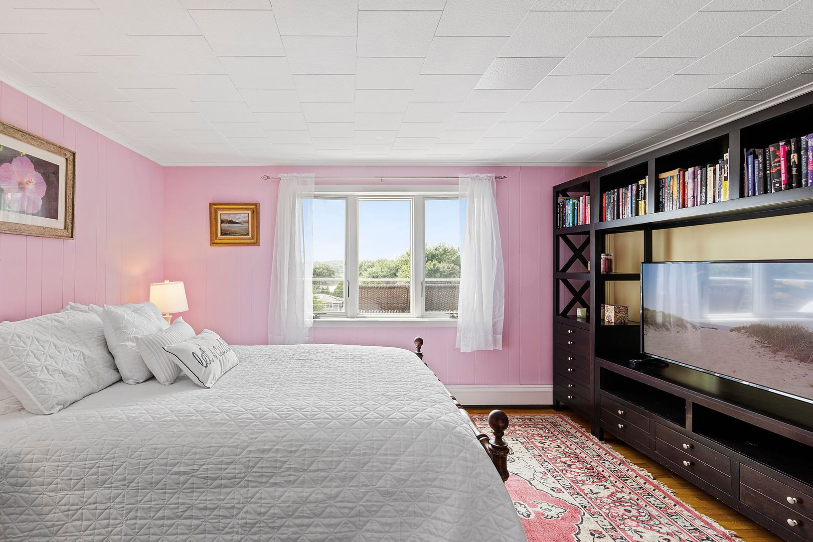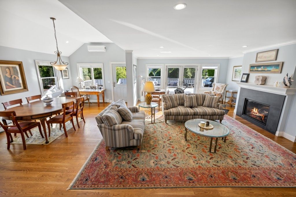Nicely situated on shy half acre and close to town and ocean is this five bedroom, two bath home with sprawling yard and expansive decking for entertaining. Spacious and sun filled open living room with fireplace, dining, open kitchen with breakfast area. Upstairs primary bedroom has sitting area and doors that open to deck with awning where you can relax and take in the pond and ocean views. Outdoor shower and central air. Brand new upgraded