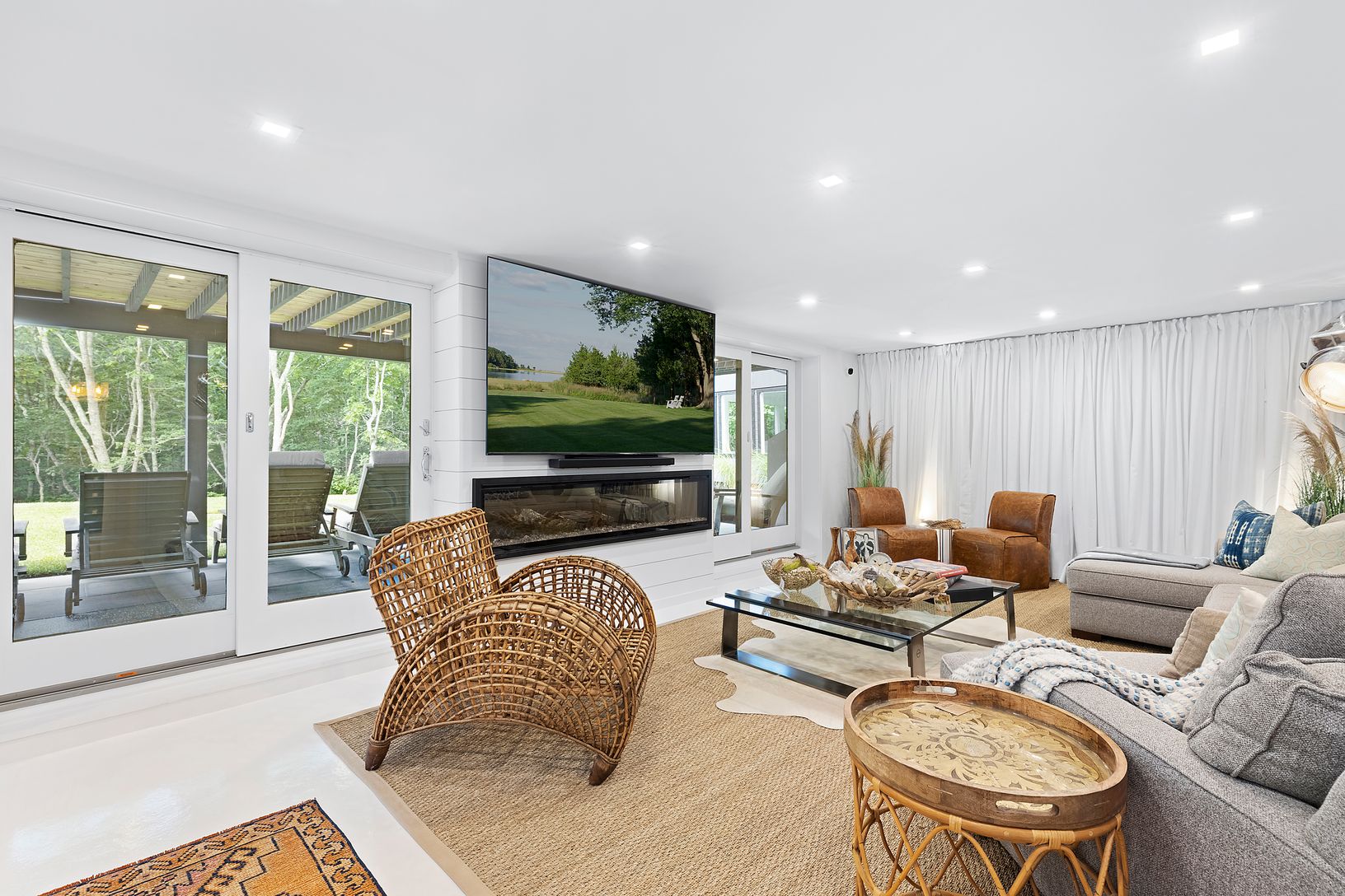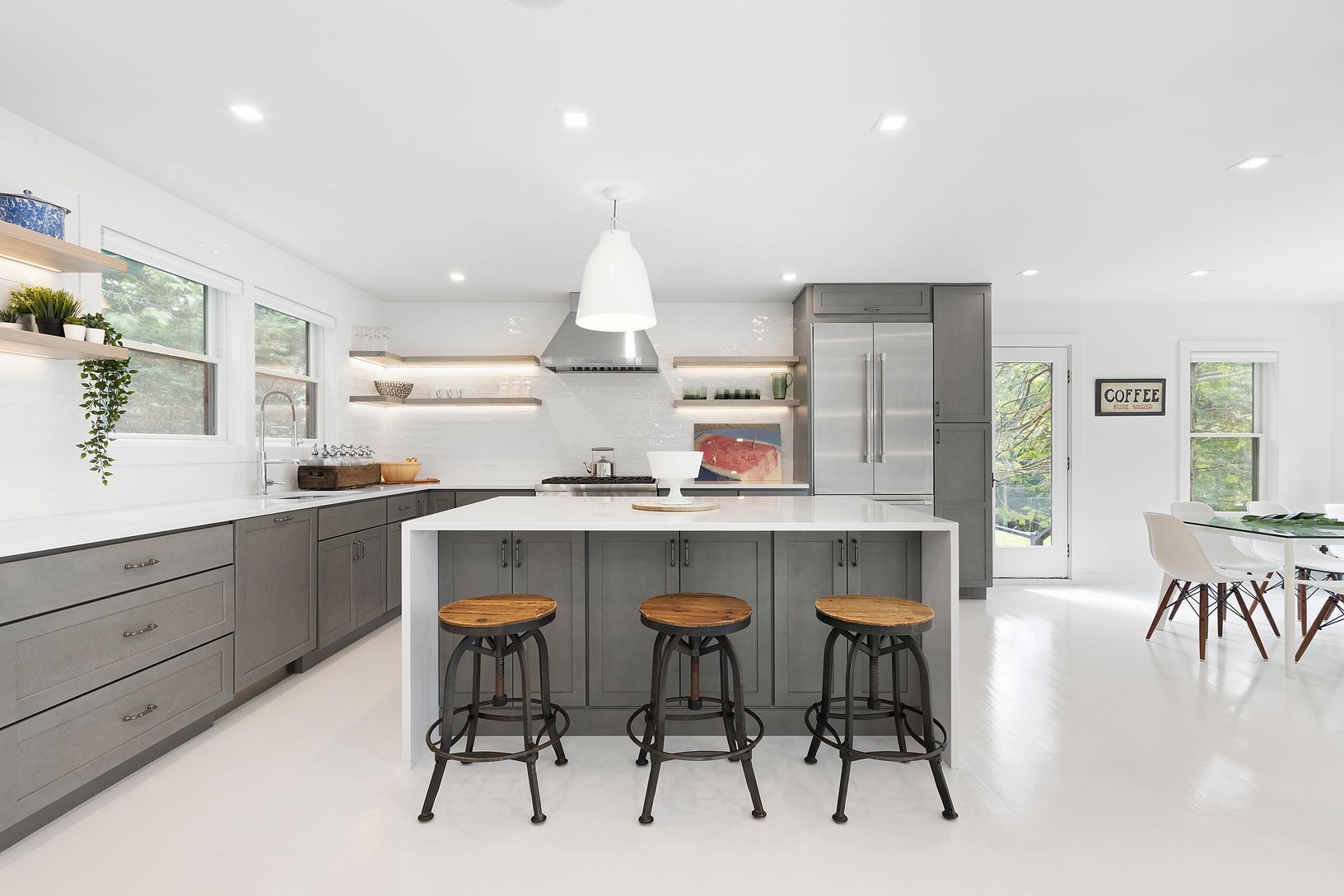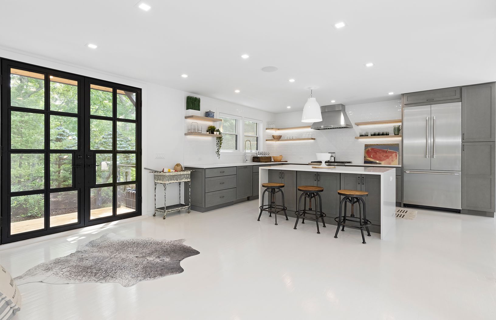 This masterfully renovated home on nearly 2 acres, (1.88) is a must see. HGTV pro designers have outdone themselves once again creating a dreamy and ultra private hideaway. This brand new renovation boasts and open concept floor plan with professional chef's kitchen, over sized island and stainless steel Thermadore appliances with a generous dining room. Soaring ceilings and a magnificent wall of glass greet you in the living room complete wit