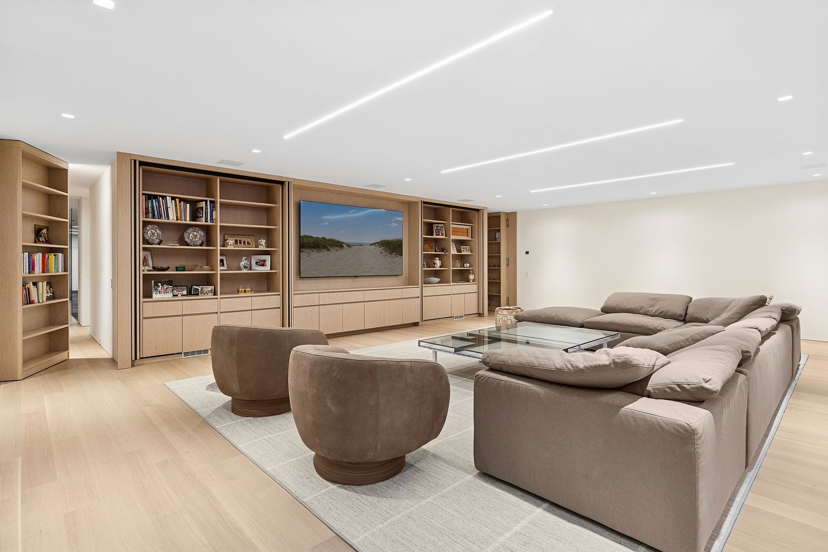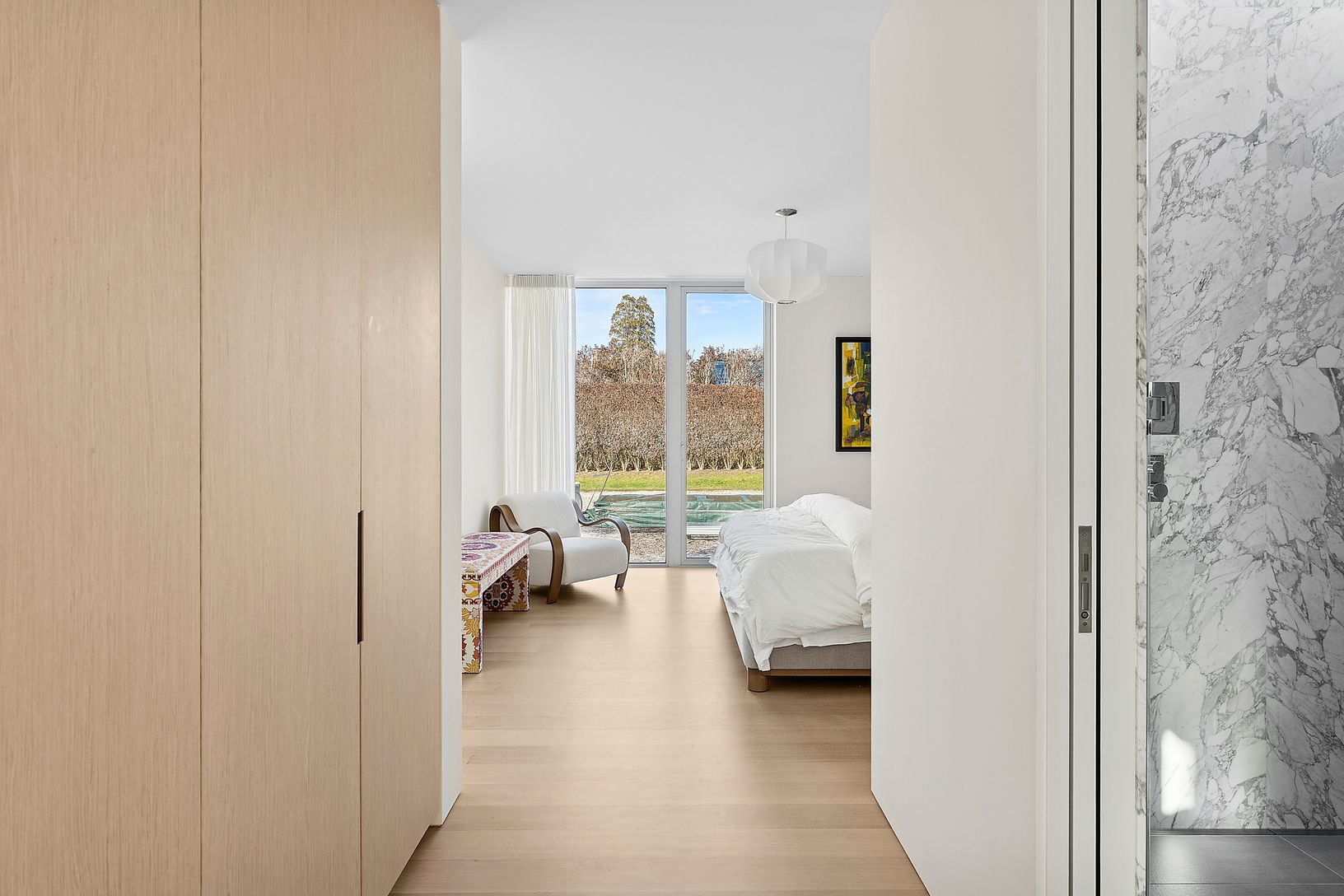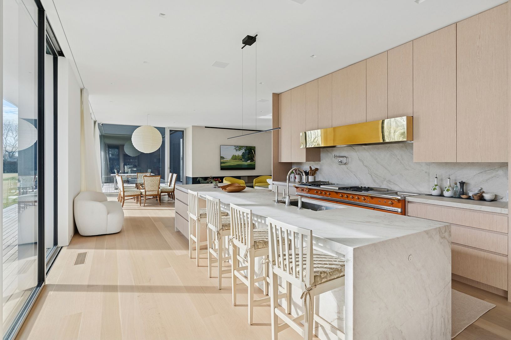Tucked along one of Southampton Village’s most coveted lanes and just moments from the ocean, 156 Duck Pond Laneis a brand-new modern estate that redefines luxury coastal living. Set behind gates on a beautifully landscaped parcel, the residence unfolds as a private retreat where architecture, light, and lifestyle converge. Clean modern lines are softened by warm natural materials and walls of glass, allowing sunlight to pour into every corner