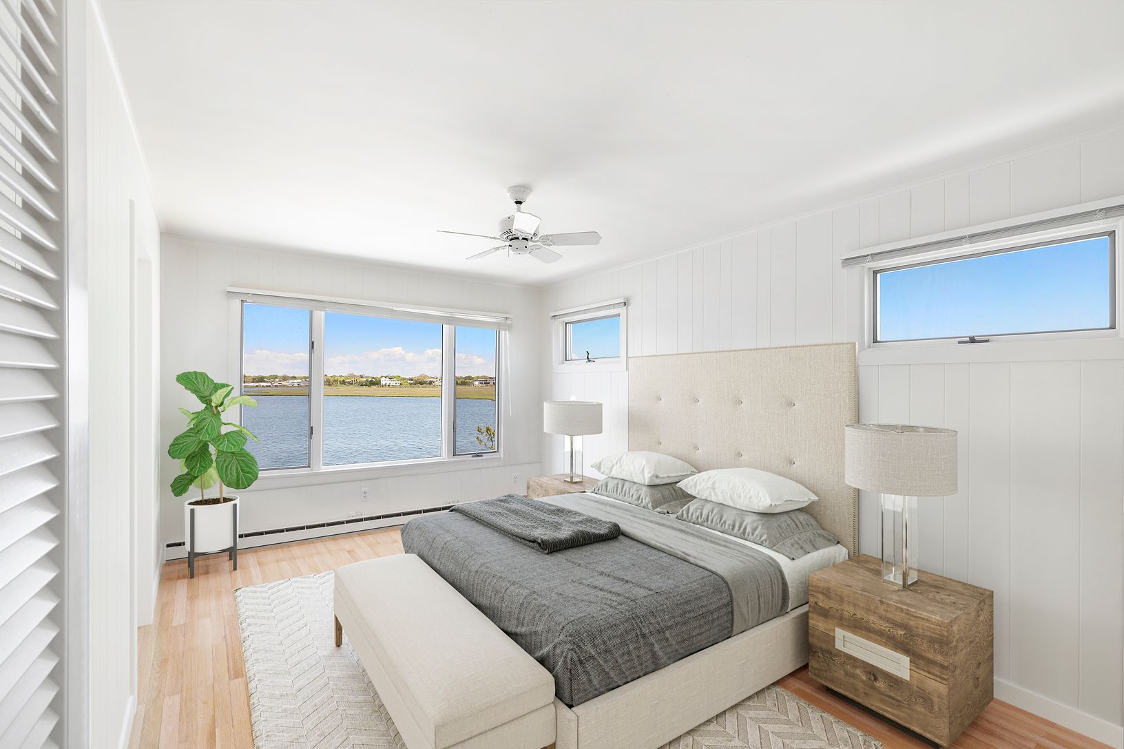Bayfront and between the bridges, this bright and airy contemporary beauty boasts stunning views and spectacular sunsets. Just west of Rogers Beach, and overlooking Moneybogue Bay, the four-bedroom, three-bath home features an open design, loads of windows and two fireplaces. Making the most of its space and location, it’s perfect for boating enthusiasts and water lovers, with standout features including a deepwater dock, massive deck and even