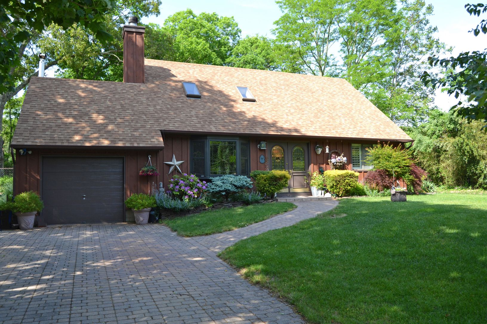 4 bedroom Cape with a spacious living room with vaulted ceilings and skylights, fireplace, updated eat in kitchen with stainless steel appliances and quartz counter tops, patio with fenced in back yard, 1 car garage, new washer and dryer, new burner, and beautiful plantings in this quiet neighborhood with close proximity to the North and South Forks and LIE.