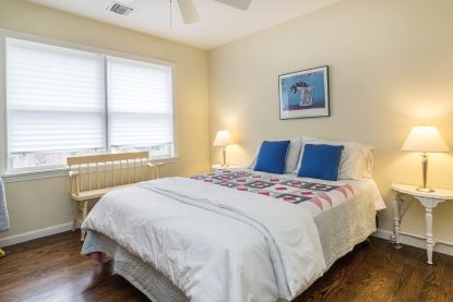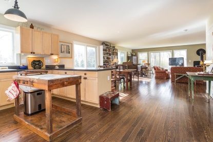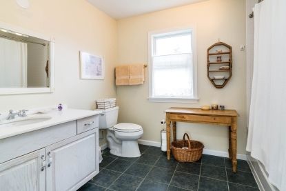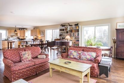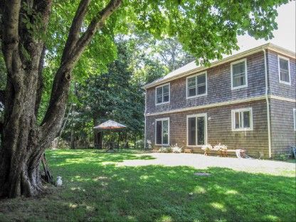 Located just down the sidewalk from Nick & Toni's and the East Hampton Grill, situated at the end of a long shared drive, resides this stately two-story cedar shingled traditional home with three bedrooms, two and one-half baths and an open living, kitchen and dining layout. Built in 2005, features include central air conditioning, glass sliding doors, high ceilings, wood-burning stove, hardwood floors, street gas, town water and a seclude