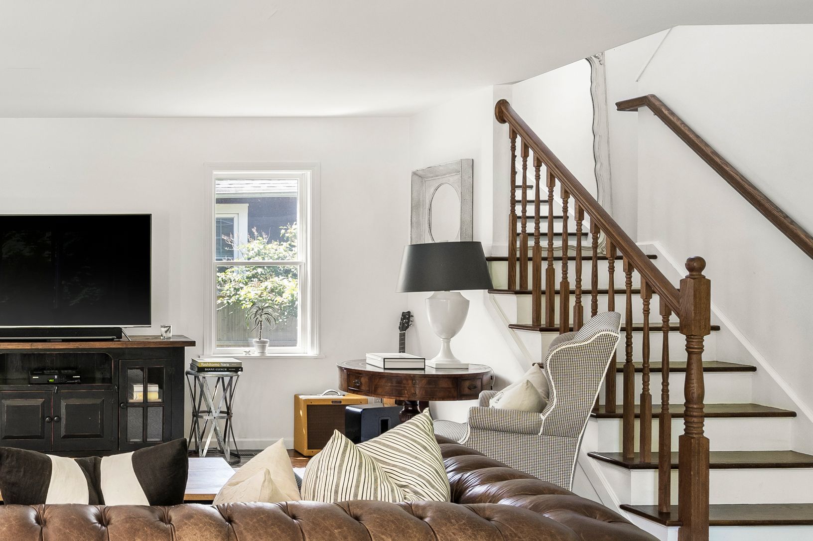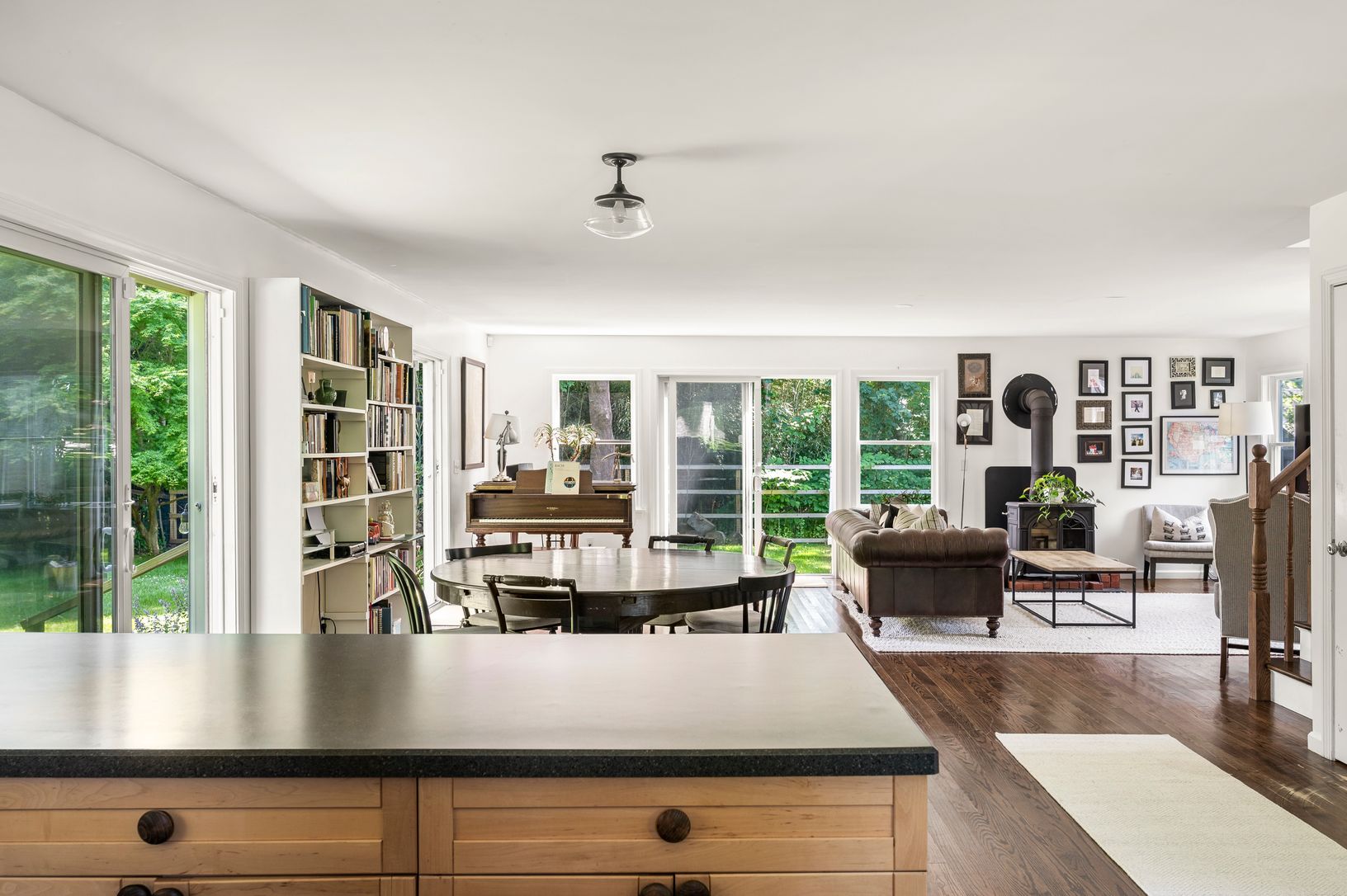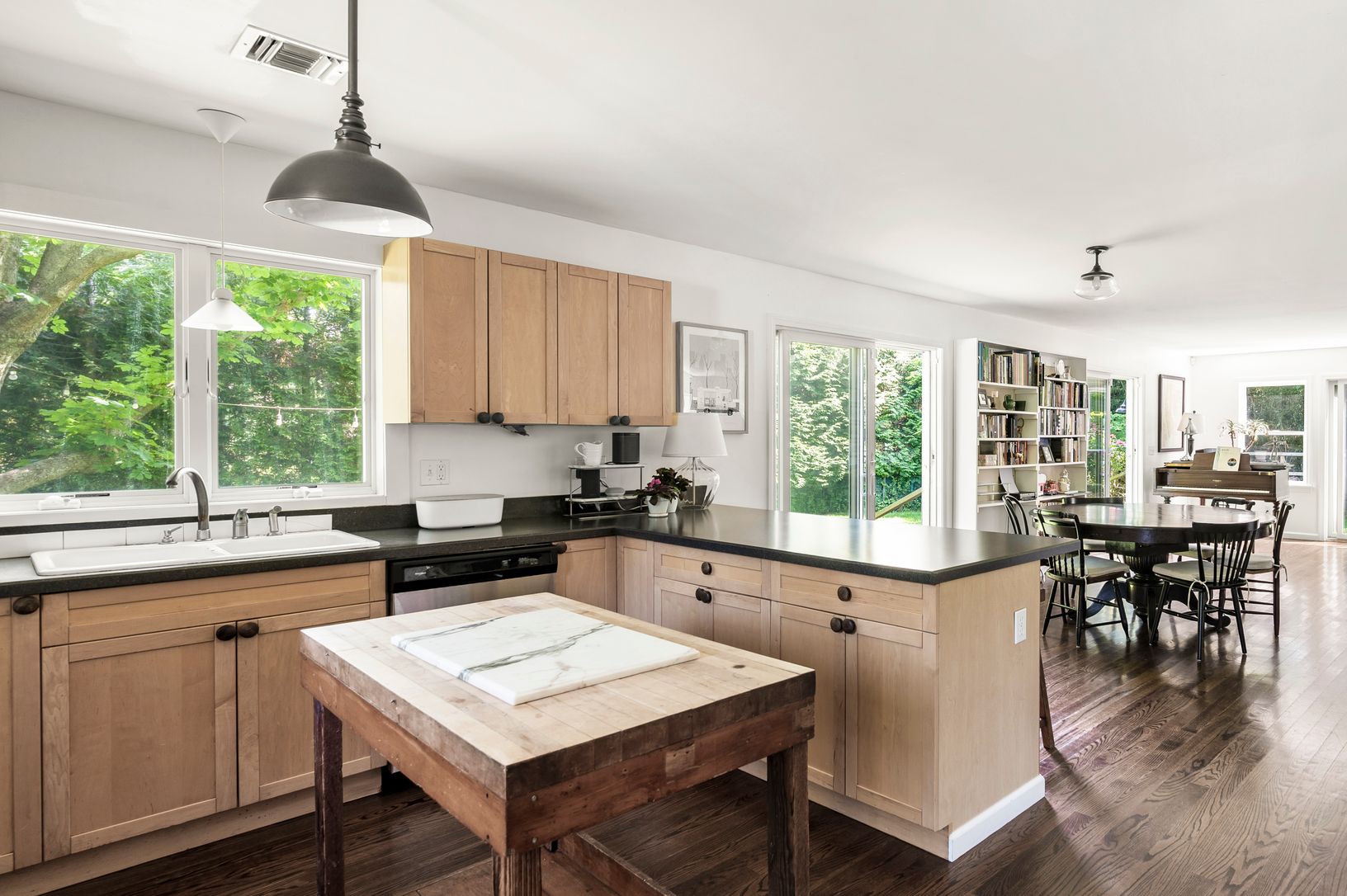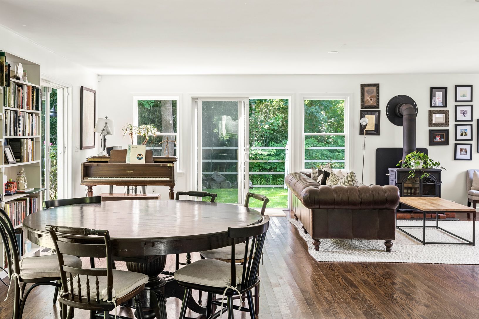 Fantastic homes like this one are hard to find! The location is a dream. Set on a bucolic private country lane only two seconds to restaurants and food shops, and a stone's throw to Main Street and Newtown Lane in the Village, the convenience is unbelievable and the setting is unique. This 3 bedroom 2.5 bath home is available for the first time for a summer getaway. The spacious loft-like ground floor has windows on all four sides allowing the