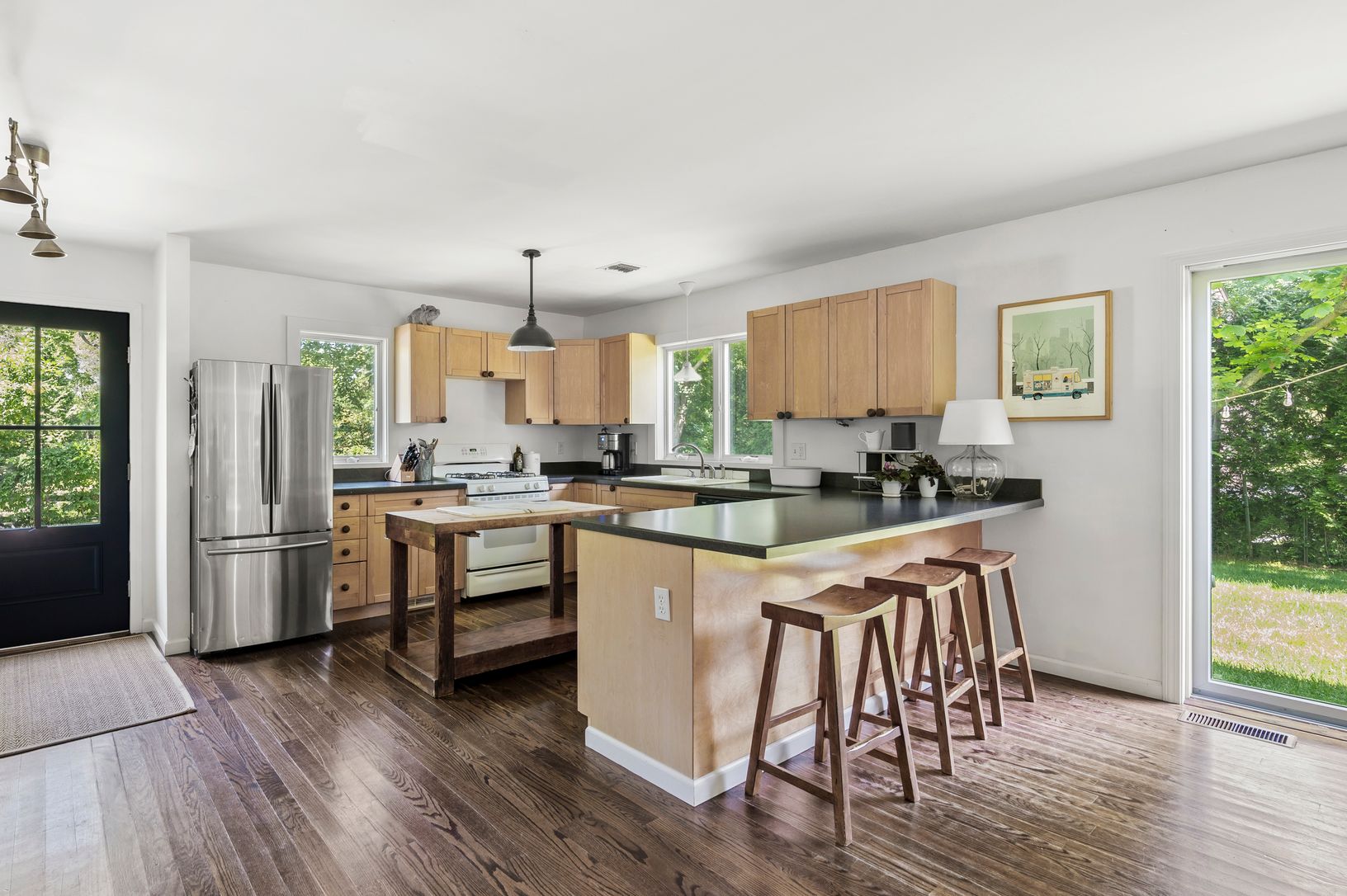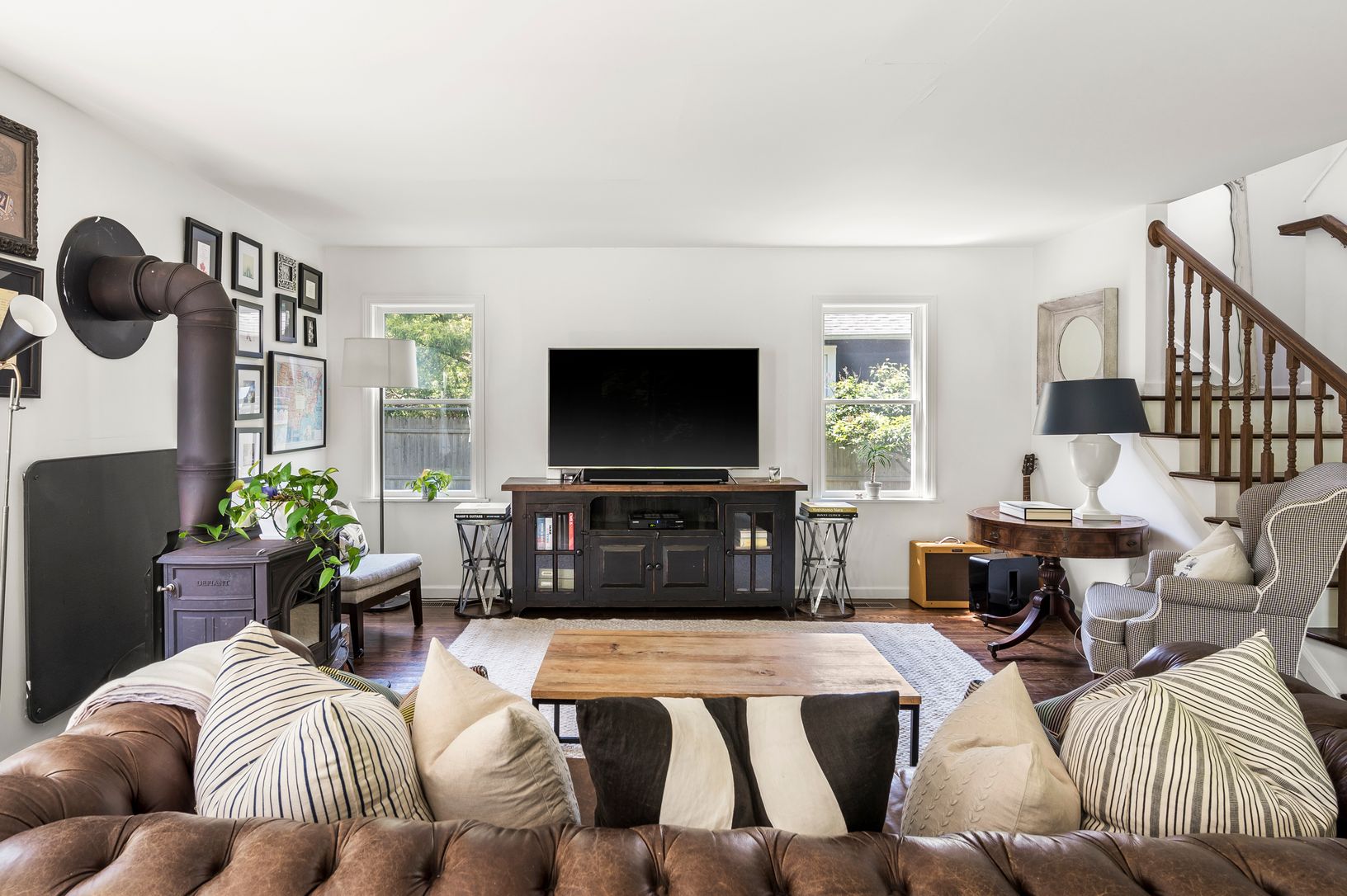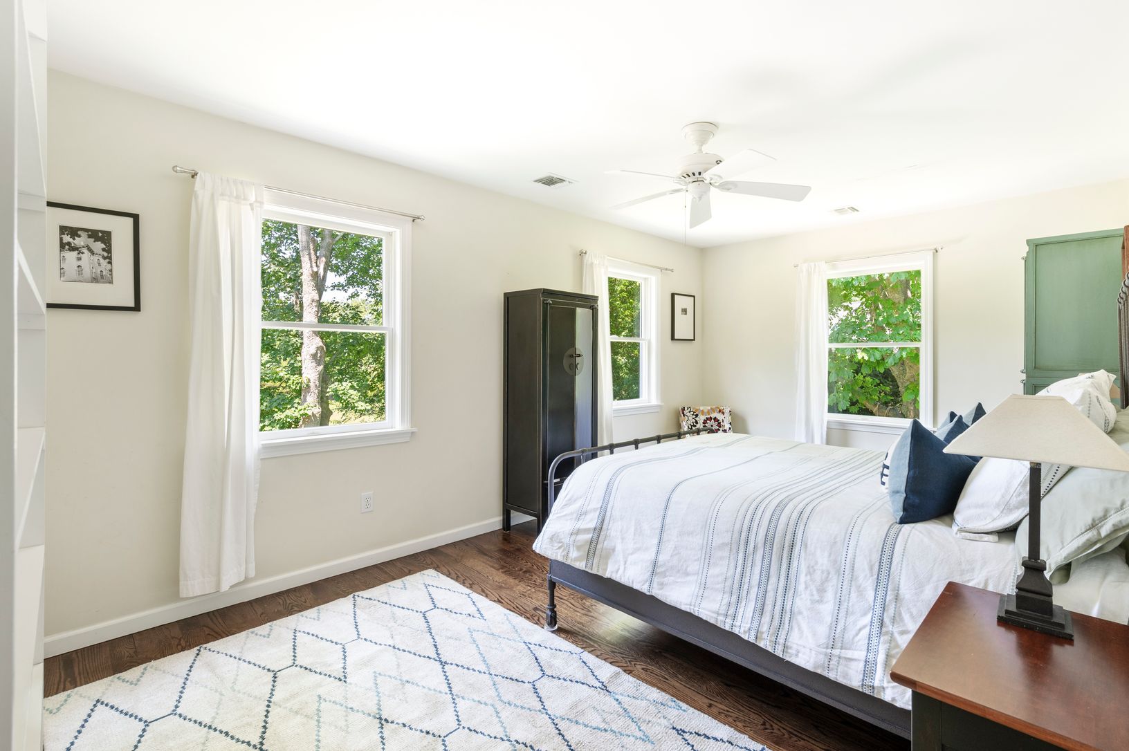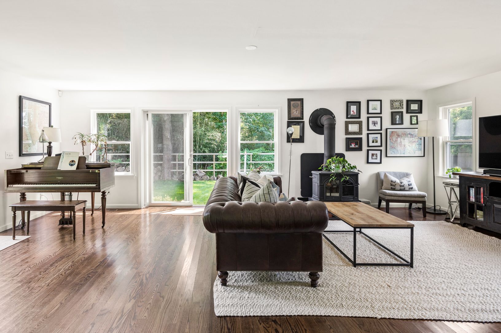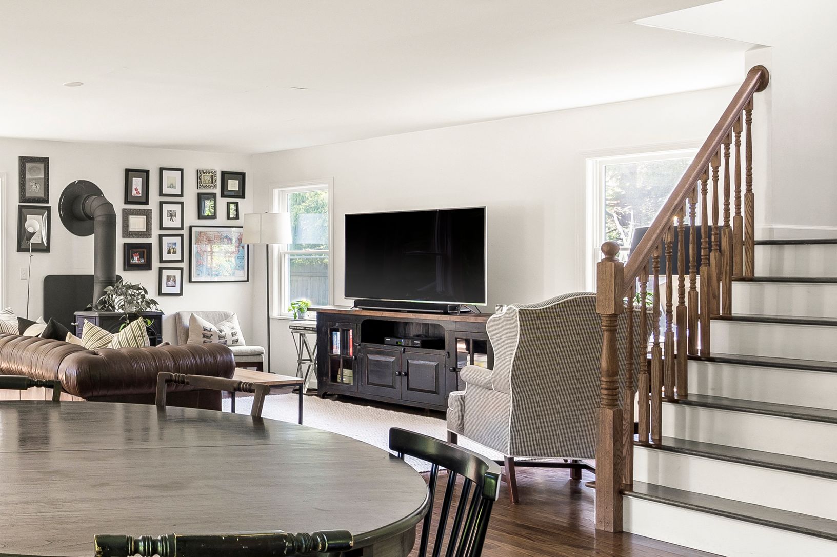 Fantastic homes like this one are hard to find! The location is a dream. Set on a bucolic private country lane only two seconds to restaurants and food shops, and a stone's throw to Main Street and Newtown Lane in the Village, the convenience is unbelievable and the setting is unique. This 3 bedroom 2.5 bath home is available for the first time for a summer getaway. The spacious loft-like ground floor has windows on all four sides allowing the