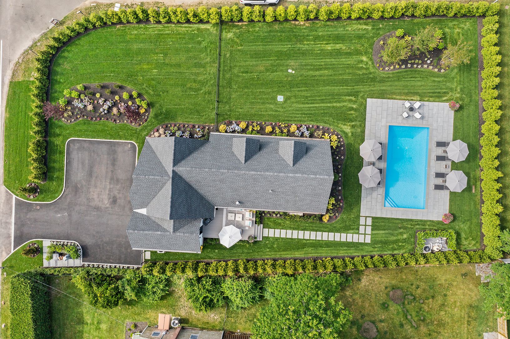 Just completed in 2023, a new three bedroom two and half bedroom home situated on .38 of an acres. Large great room Professional kitchen with vaulted ceiling, Beautiful outdoor space including a large deck, custom stone surrounding a heated in ground pool, lush landscaping, with new sod and plantings. integrated music system, inside and out, Landscape lighting. Room for expansion with ten-foot ceilings in basement, egress windows, there is unf