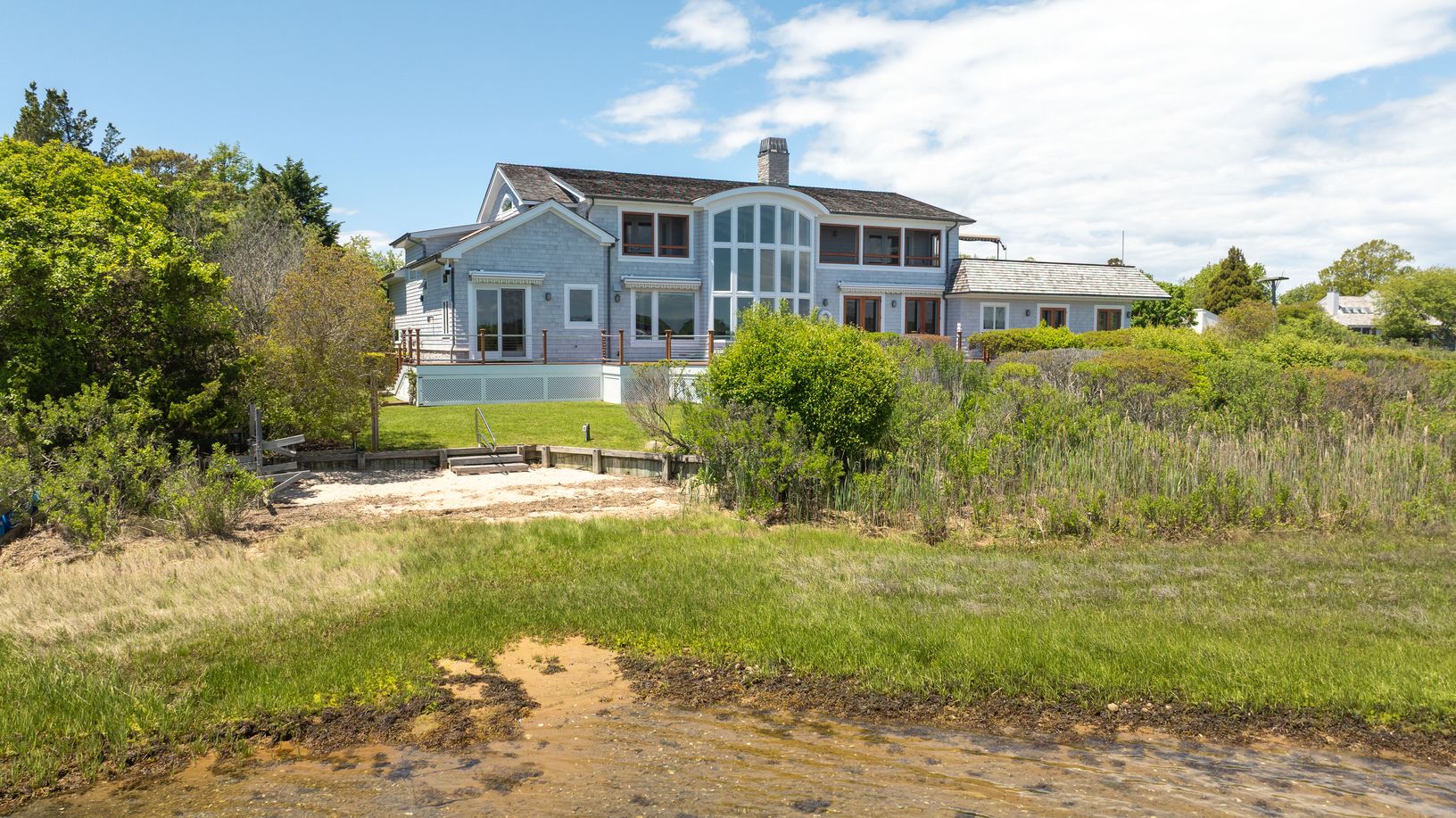 Set on the tranquil shores of Lake Montauk, this impeccably crafted transitional-style waterfront home offers a rare opportunity to own a total of 2.11 acres, including the adjacent parcel at 160 West Lake Drive. Built in 2009 by Men at Work, known for their exceptional craftsmanship and structural integrity, the home stands as a testament to quality. This 4-bedroom, 4.5-bathroom residence seamlessly blends traditional warmth with contemporary
