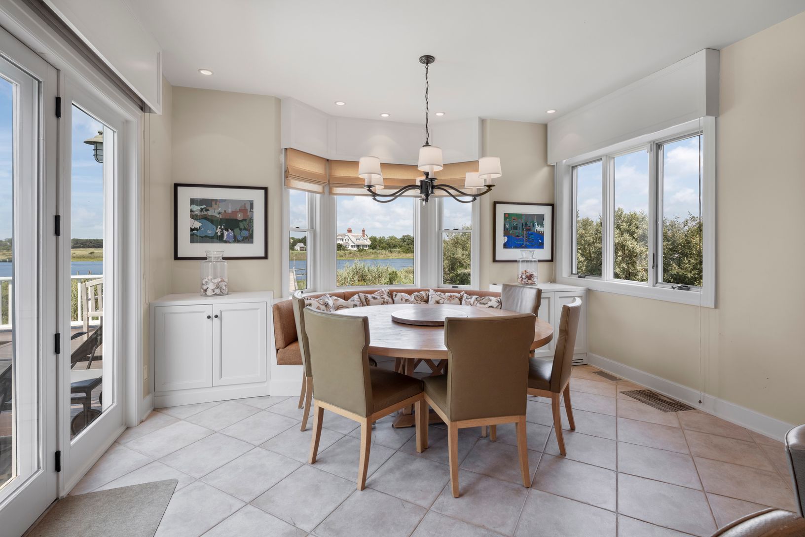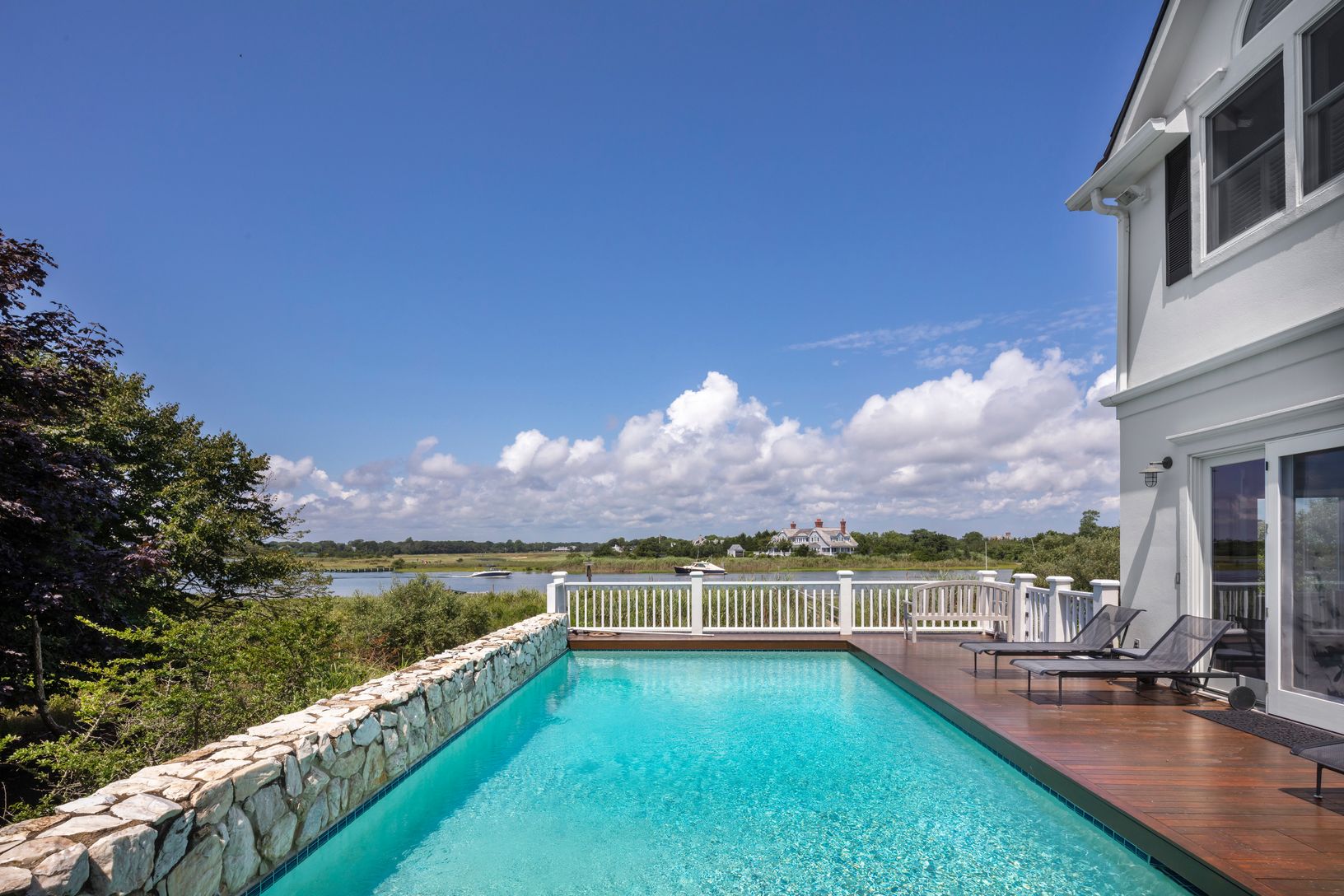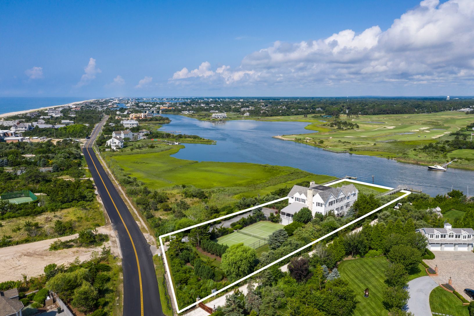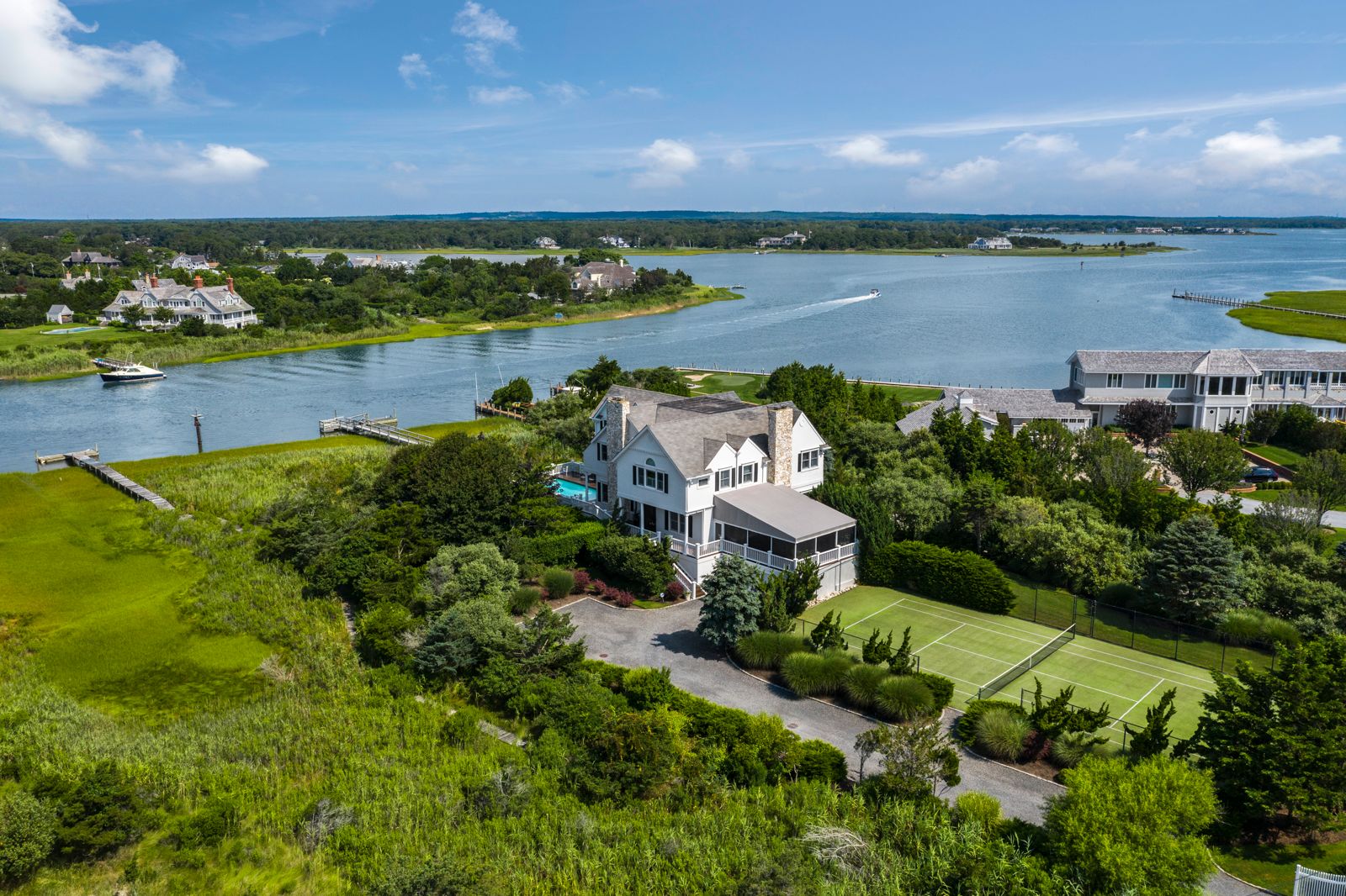 Waterfront living in the Hamptons doesn't get any better than this on 1.4 acres with over 160 feet of bay frontage, complete with a deep-water dock, all-weather tennis court, bayside heated gunite pool, and a deeded walkway across Dune Road to the ocean. The immaculate home's interior was designed by Rick Livingston of Period Design and boasts panoramic sunset views over the Quogue Canal to the Quogue Field Club, Penniman Creek and Shinnecock