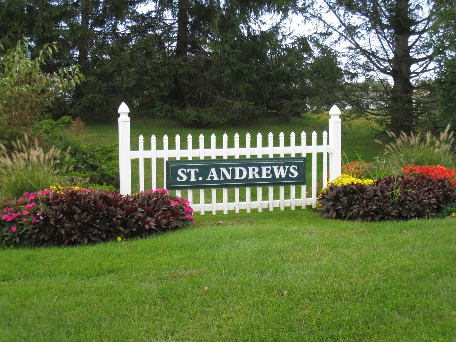 Brand new to the market and in a prime location with views of the Pond and Gazebo. This is the largest "Dune" model at 1818 square feet and with board approval, even expandable. Three bedrooms and two baths, cathedral living room with fireplace and attached oversized garage. St. Andrew's is located on 74 acres of rolling lawns with two community tennis courts and solar heated gunite pool, low association fees and the community is pet friendl