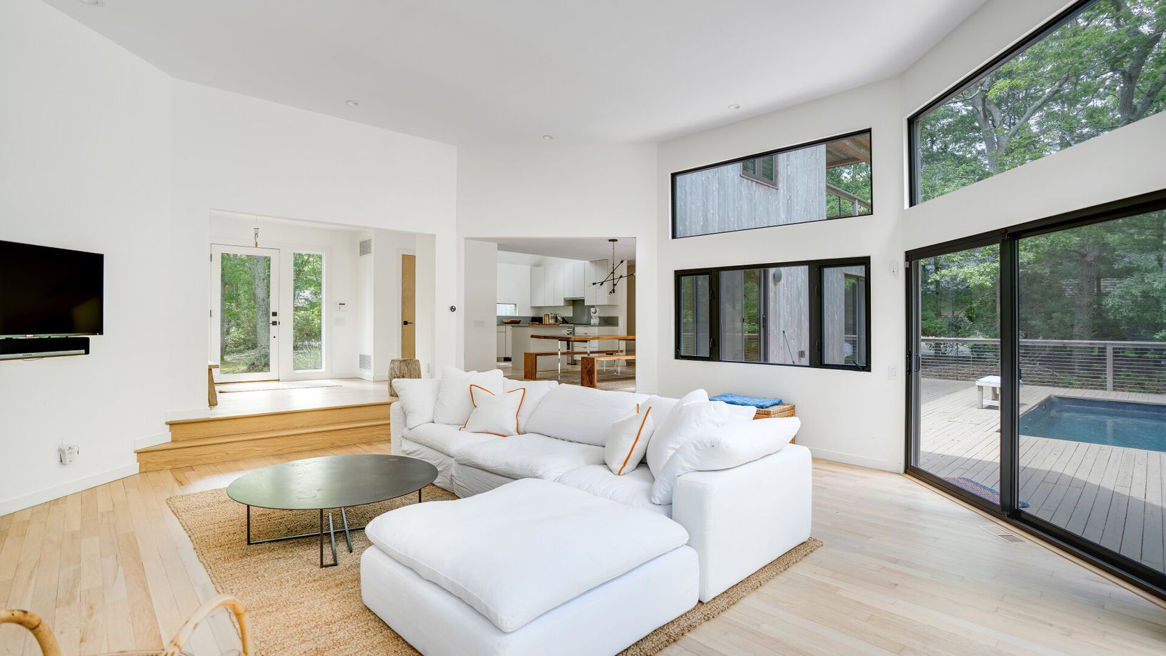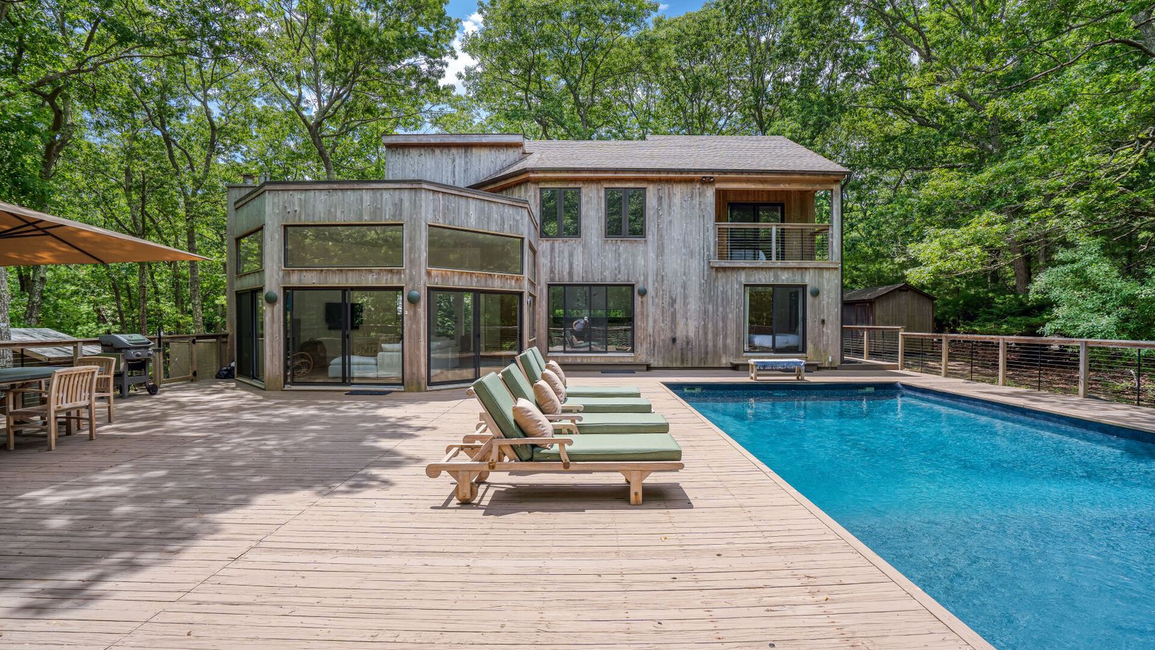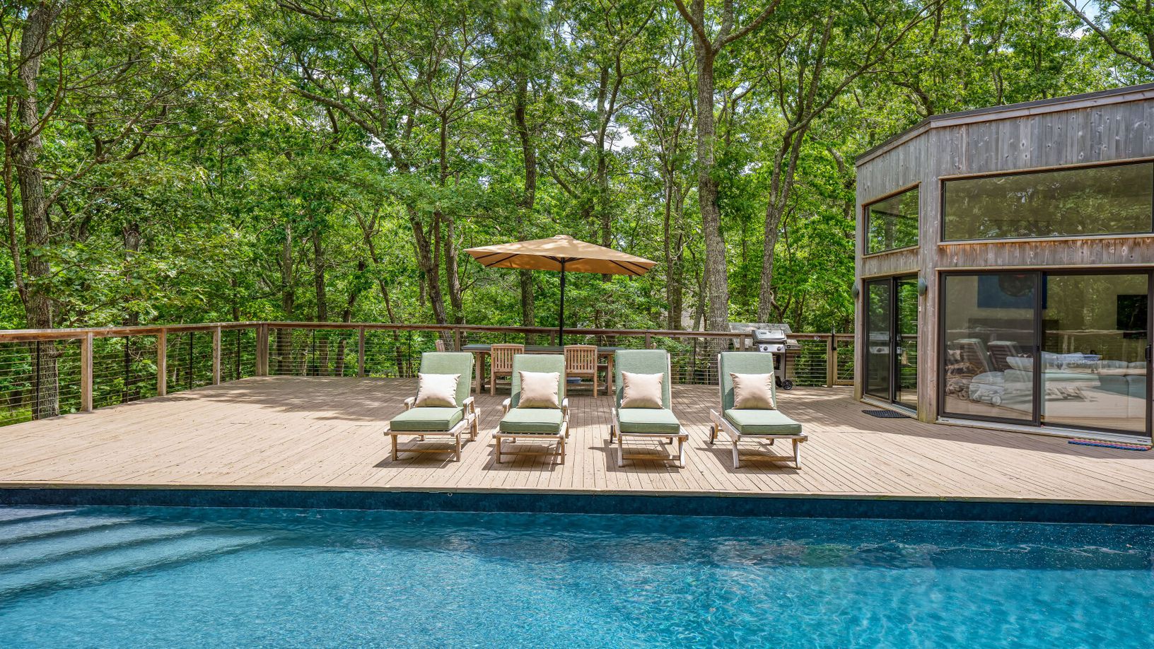 Guests who are looking to escape the hustle of everyday life, and yet remain within close proximity to local amenities will adore this thoughtfully planned, eco-conscious estate in East Hampton. Surrounded by trees and on a wide, quiet street, this four-bedroom, three-bathroom home includes 2,200 square feet