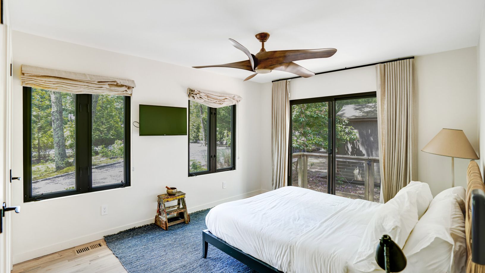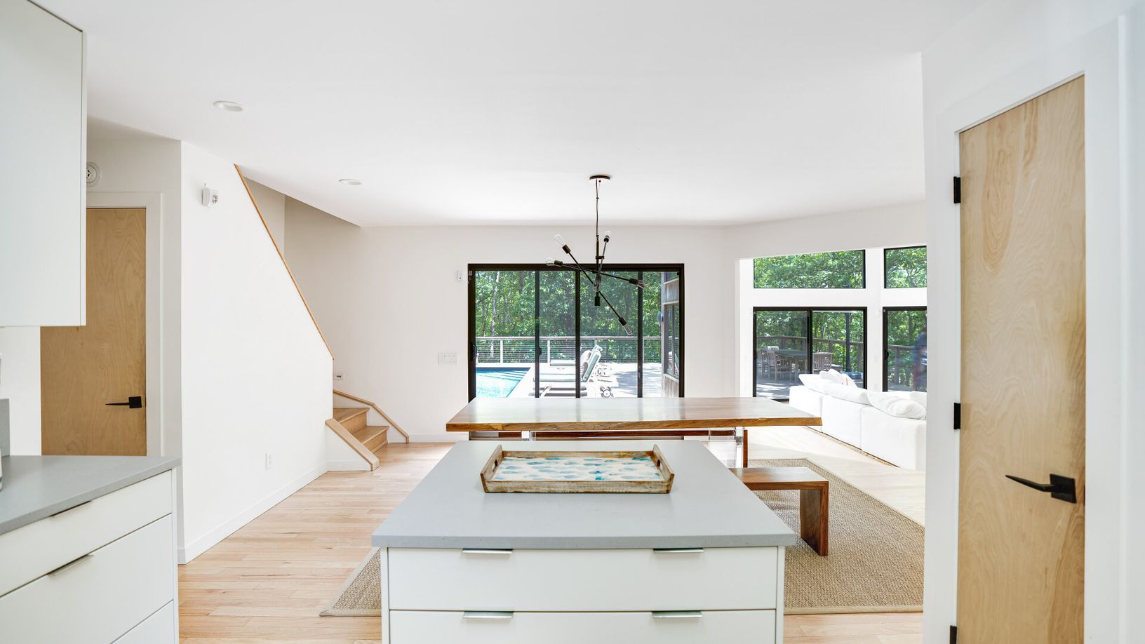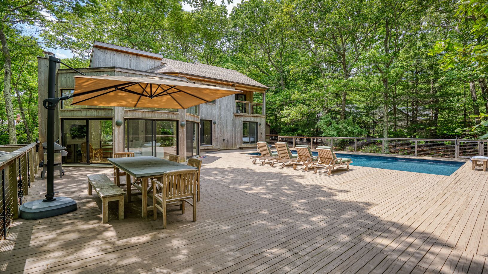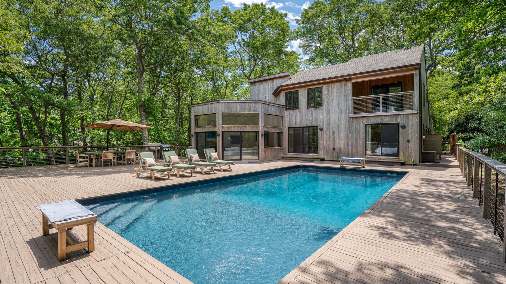 Guests who are looking to escape the hustle of everyday life, and yet remain within close proximity to local amenities will adore this thoughtfully planned, eco-conscious estate in East Hampton. Surrounded by trees and on a wide, quiet street, this four-bedroom, three-bathroom home includes 2,200 square feet