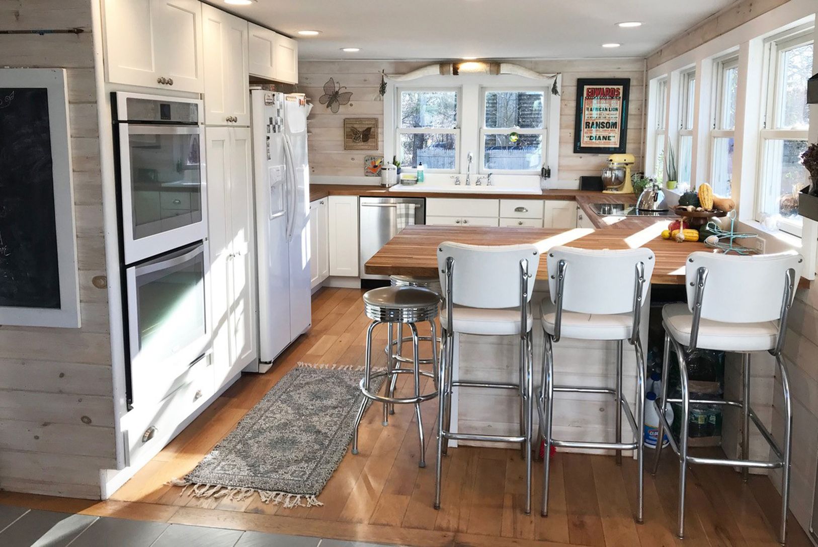 Beautifully updated country cottage, designed to maintain a low cost of living. Three bedrooms and one bathroom located within walking distance to marinas, school, and Accabonac Harbor. Just a short bike ride to bay beaches. Kitchen boasts bright and airy south facing windows, a Hearthstone wood stove, silent Bosch dishwasher, double wall ovens, induction cooktop and a reproduction vintage sink that over looks perennial gardens. New Anderson w