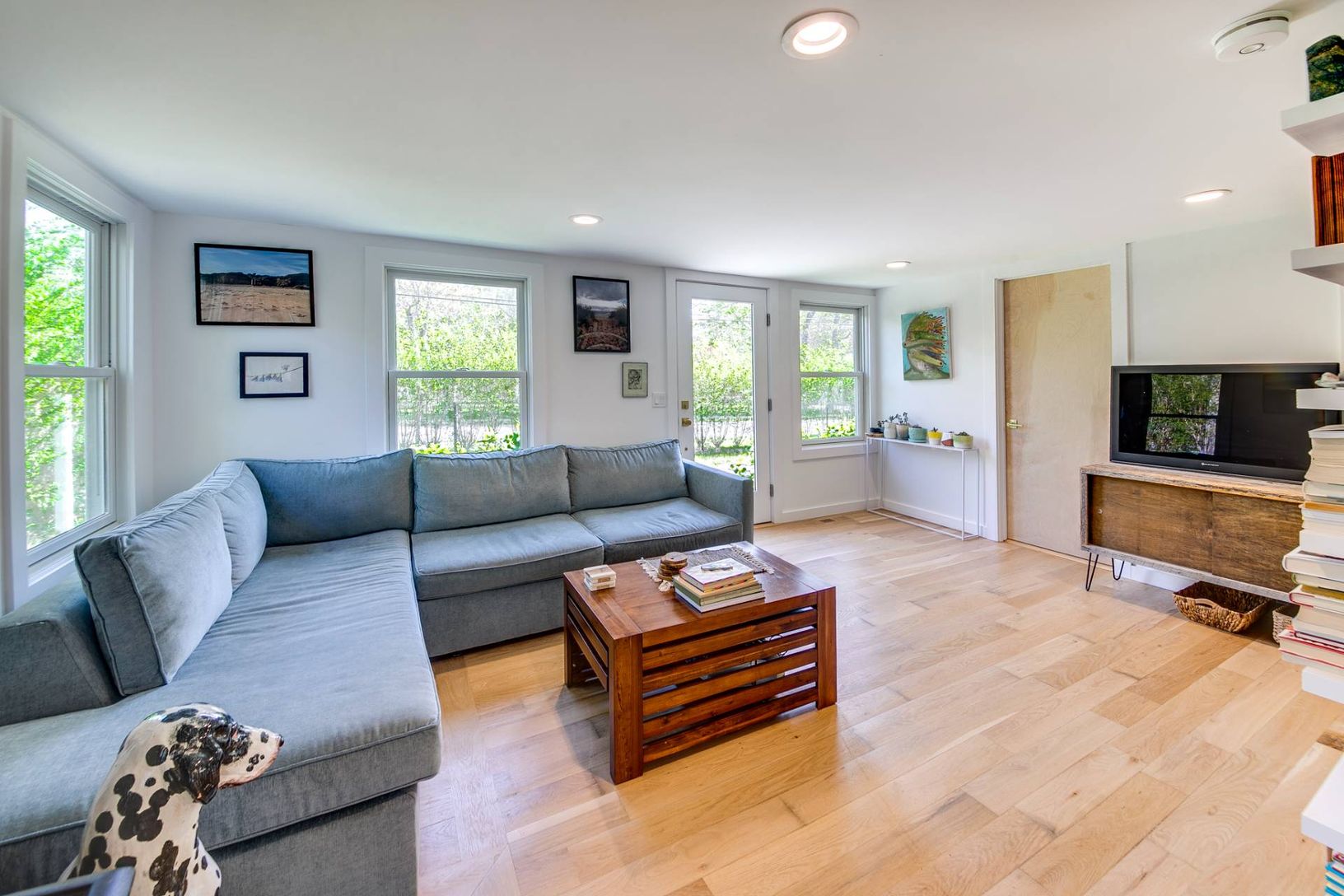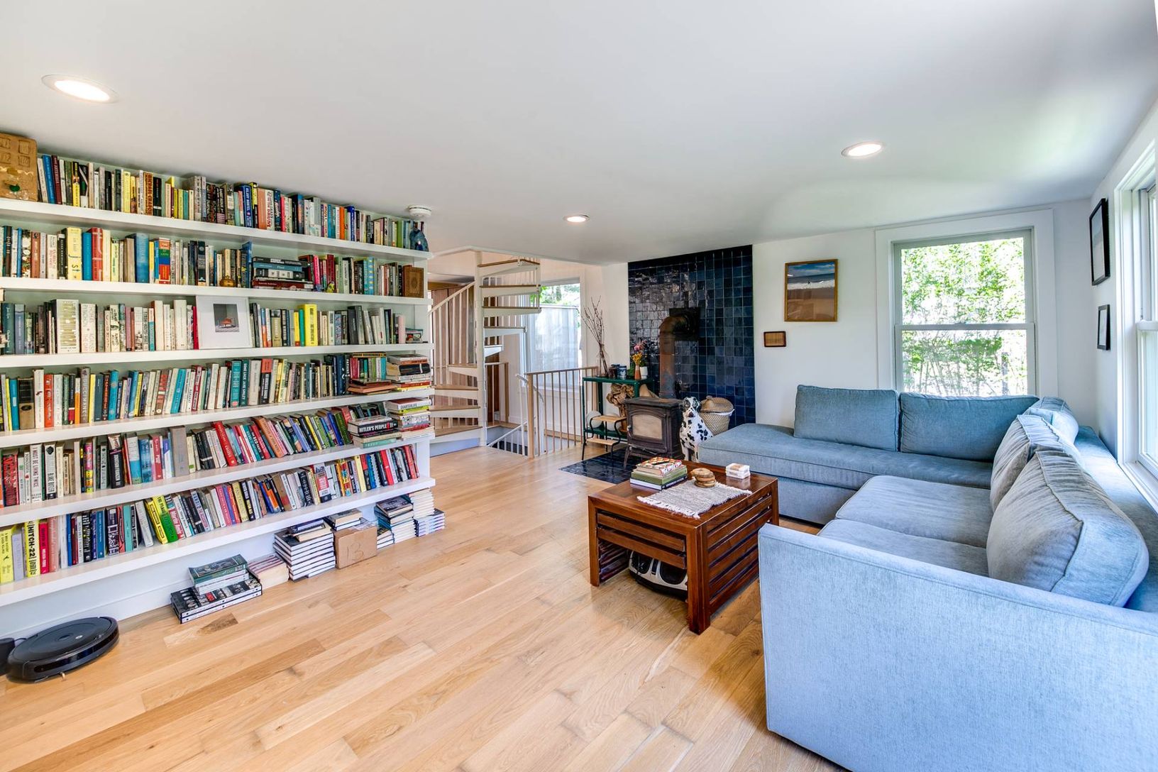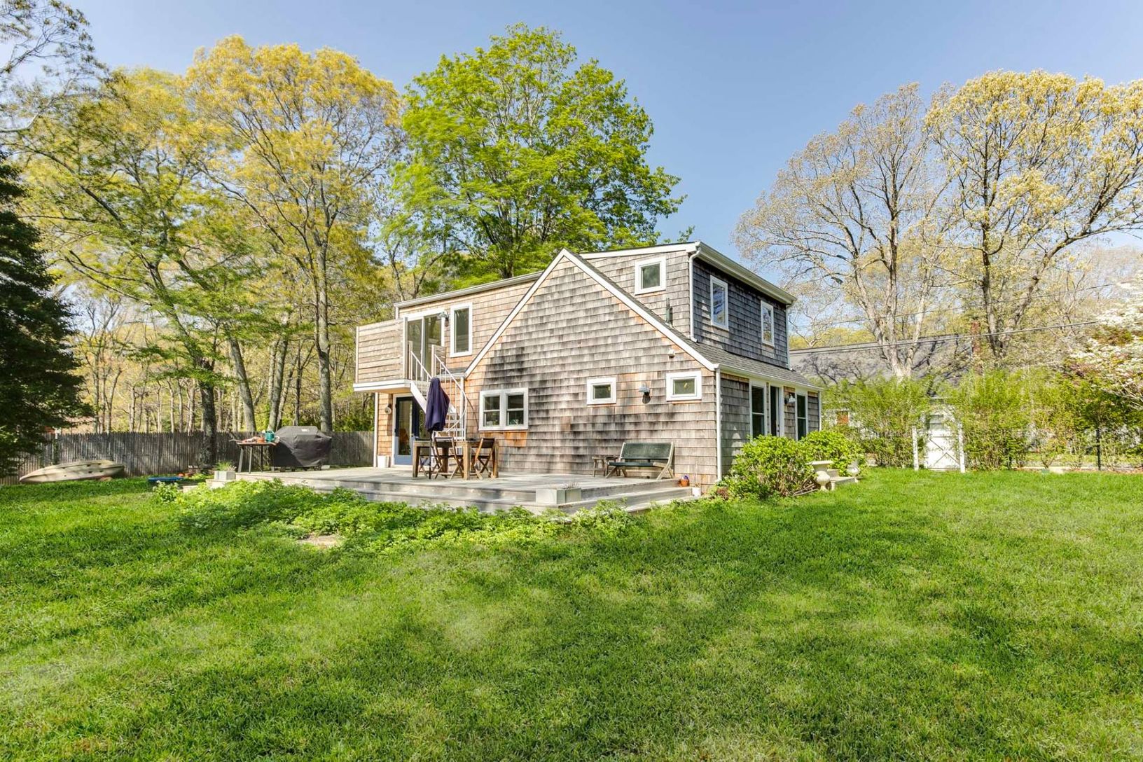 This light-filled East Hampton beach home combines beachy charm with modern updates in a quietly stylish package. With 3 bedrooms and 3 newly renovated baths, the home is bright and inviting throughout. The custom kitchen features south-facing windows, premium appliances, eat-in seating, and easy access to a sunny patio with outdoor kitchen-perfect for al fresco dining and entertaining. Charming details like a wood stove and spiral staircase a