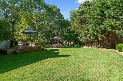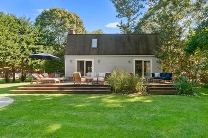 Rental Registration #: 17-668 Well-appointed and bright summer rental available for the first time in East Hampton, Clearwater private beach. There are two new baths, a well equipped kitchen, and three bedrooms. Central air and wireless internet, wide plank floors, two story living room with separate dining area. Outdoors is a private, fully landscaped yard with nice dining patio and new mahogany deck with chaise lounges. Short distance to pri