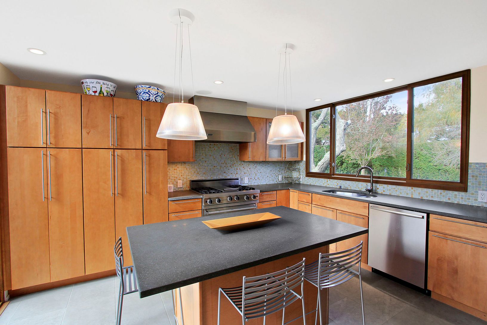 Moments to Mecox Bay and world class ocean beaches, this Water Mill South Contemporary offers 2,800± sf of living space on 0.92± acre of beautifully landscaped property. The 4- bedroom, 4-bath home provides an open and airy floor plan featuring a sunken living room with double-height ceilings, massive skylights and fireplace. The eat-in kitchen is completely renovated with stainless steel appliances and center island. The dining room overlooks