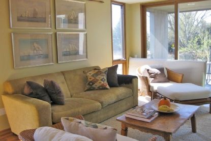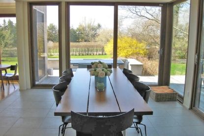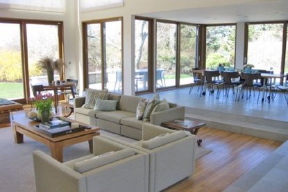 Stunning and stylish, rebuilt in 2005 and maintained in impeccable condition. Four bedroom/four bath modern home with gourmet stainless kitchen, open loft-like living and dining, cathedral ceiling, and floor-to-ceiling windows that bring the outdoors inside. Den, 2 fireplaces, playroom, central air, heated gunite pool. Lushly landscaped shy acre on quiet cul-de-sac in prime south-of -highway location near ocean beaches and village shops.