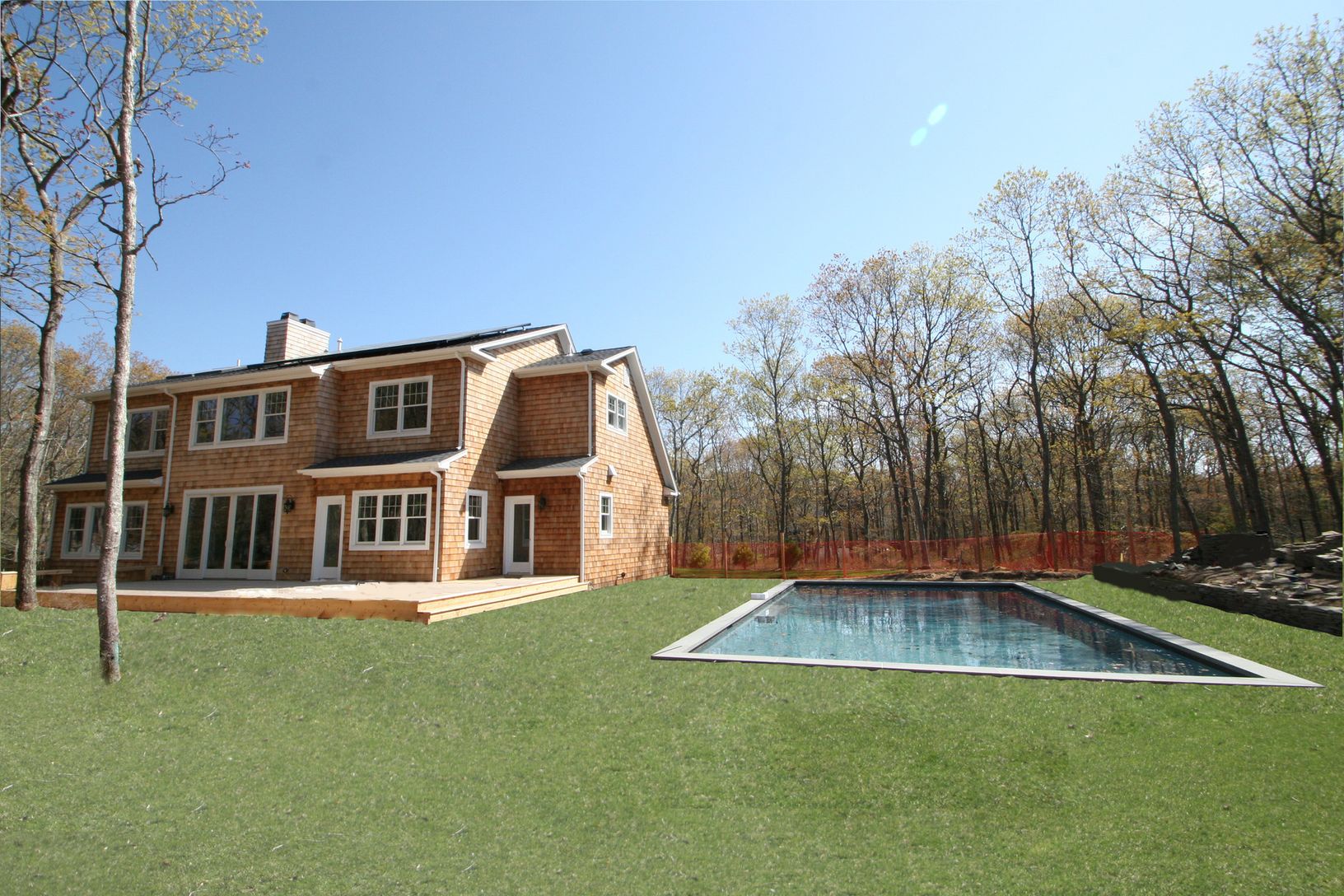 Set on private wooded acre in Southampton North, enjoy 4400 sq.ft State of the Art, energy efficient home. 4 BR, 3.5 bath, cedar shingled Post Modern offers unmatched attention to detail including 9 ft ceilings, hard wood floors, granite and marble throughout this Energy Star Rated, NAHB Gold Rated & Green Certified New Construction. 1st or 2nd floor Master Suites, gunite pool, blue stone patios, library and gourmet kitchen.