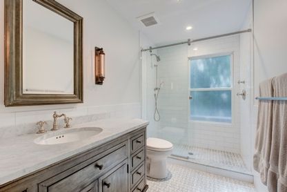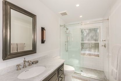 Chic and spacious four bedroom, four bath home was completely renovated and enlarged in 2017. Light and open, and brand new! It has an open floor plan with a large gourmet kitchen/dining area that opens up to a living room with a fireplace. Beautifully landscaped backyard with heated gunite pool. The detached outbuilding incorporates a garage on one side and a pool house with kitchenette and bath on the other side. Approximately one mile to Sa