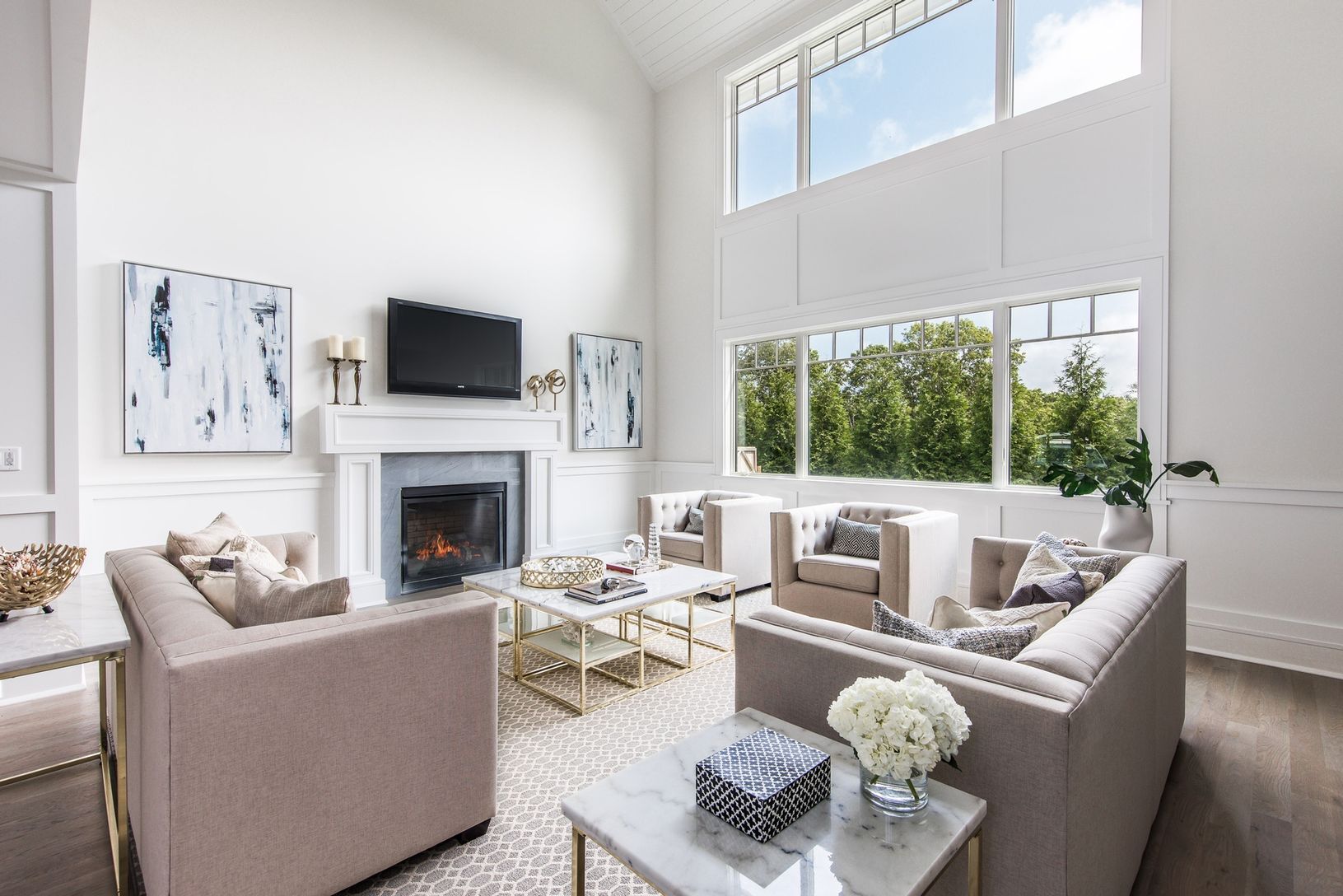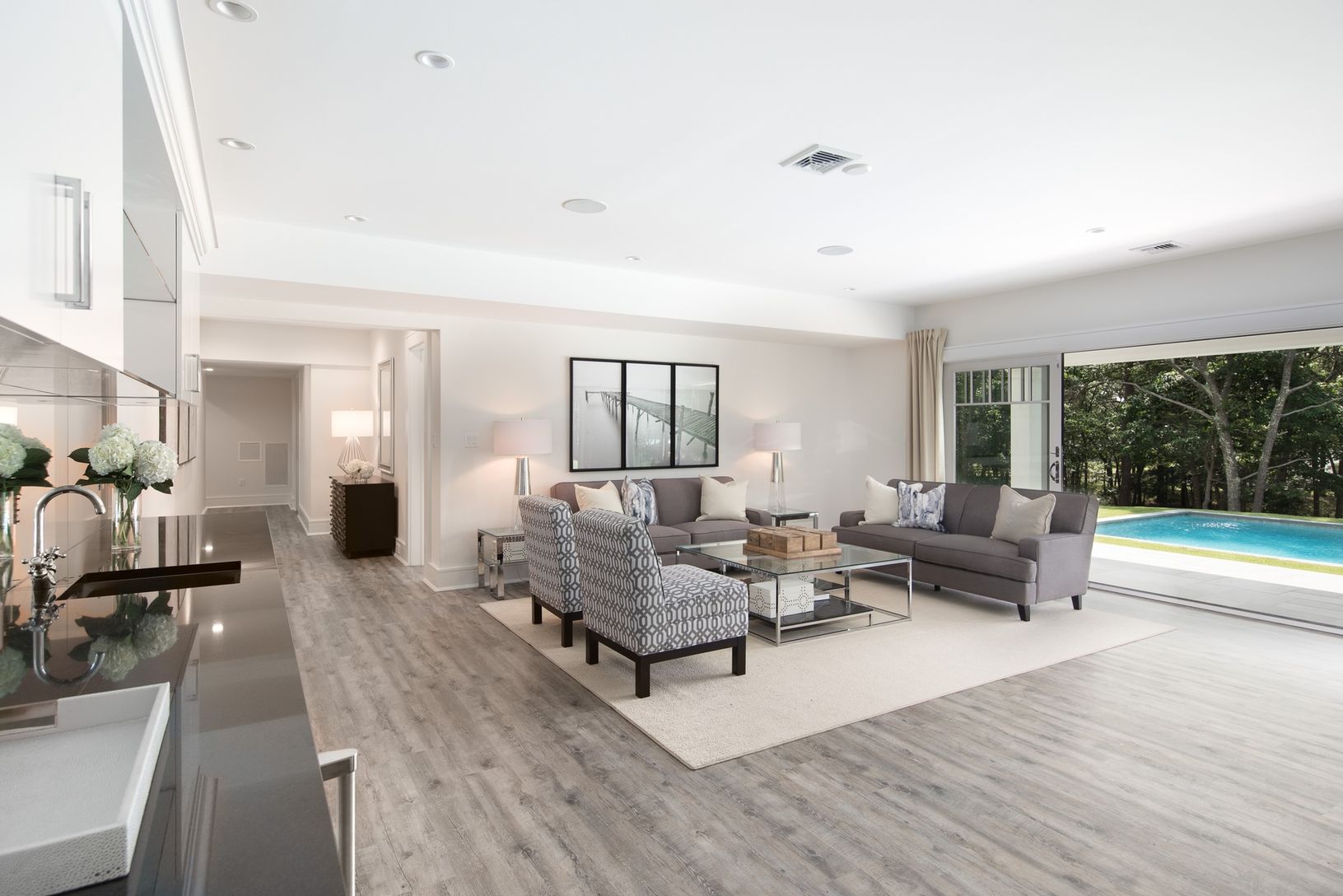 New to Market - Brand New Construction, conveniently located on a private drive - "Gabriel's Path" - less than three miles from East Hampton Village. This stunning post-modern home sits on an elevated 2+ acre lot overlooking a picturesque Hamptons horse farm. The great room, with double height ceiling and fireplace, opens onto a covered blue stone patio, perfect for outdoor entertaining. Also on the main floor, a second large living area wit