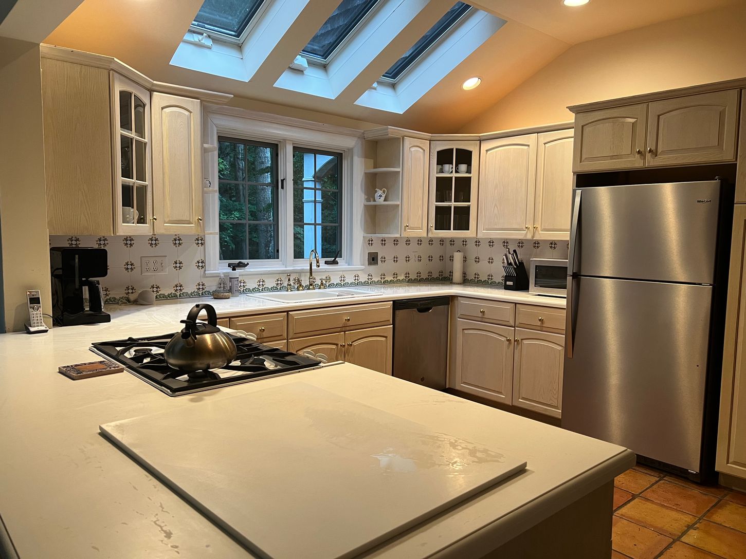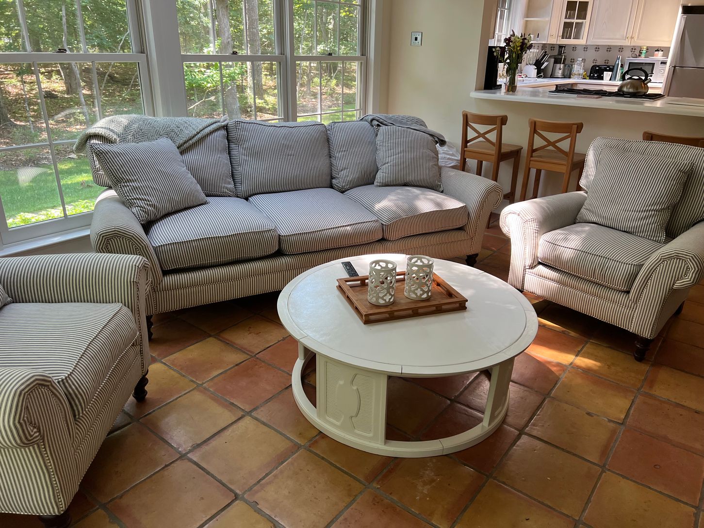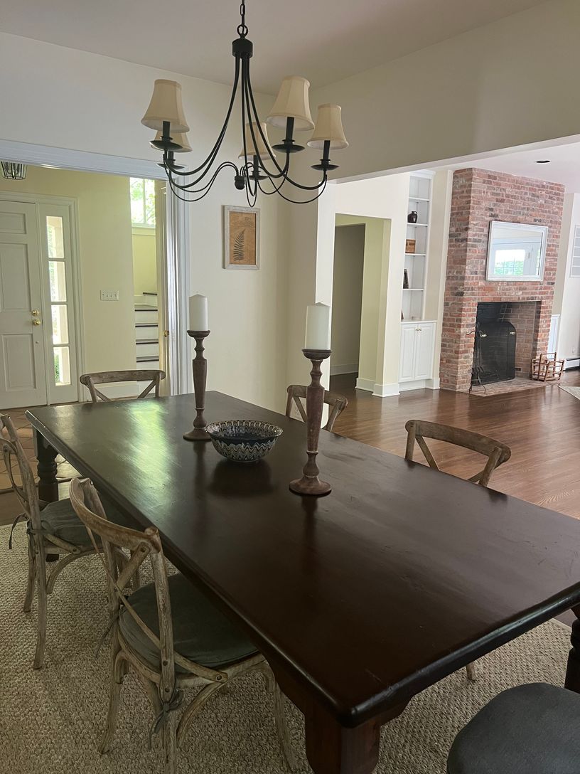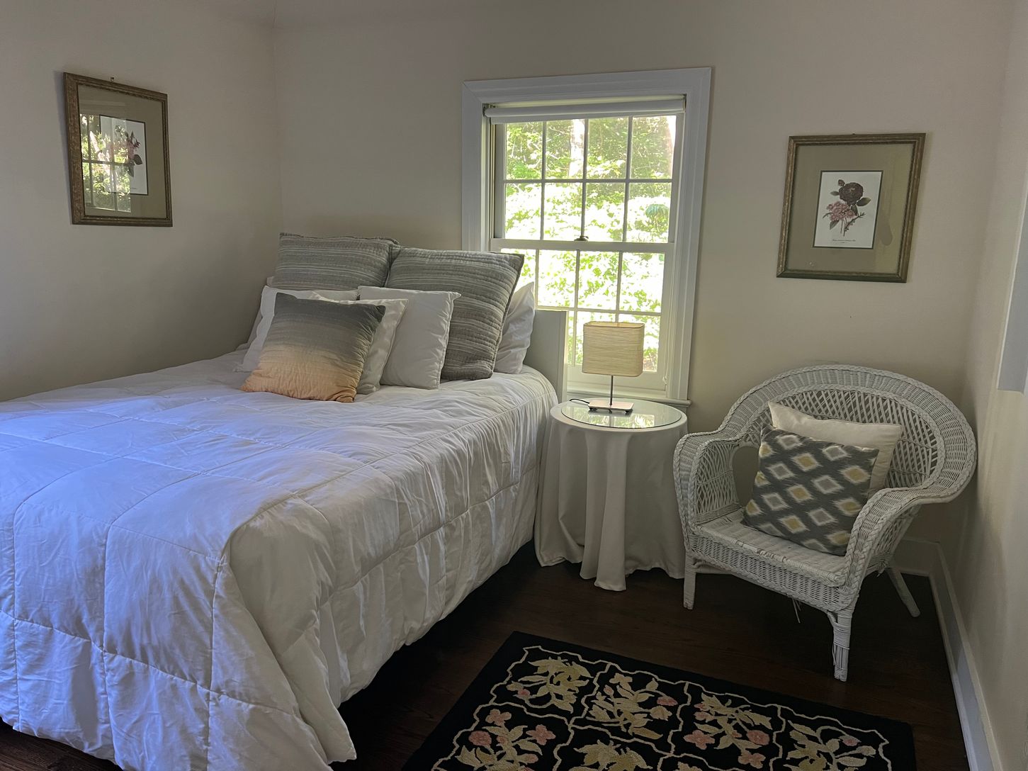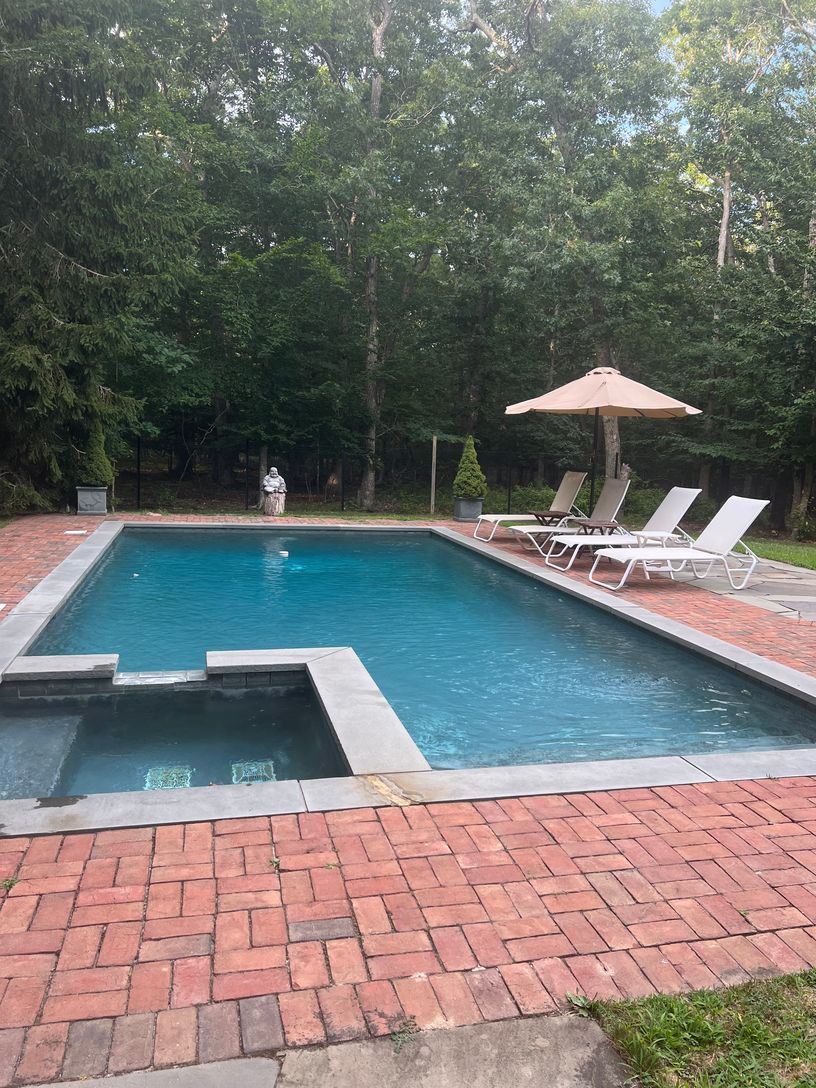 Close to private beach on Gardiner's Bay from this immaculate, 4-bedroom, 3.5-bath home. Spacious living room with fireplace, formal dining room, sun room off kitchen, master suite with fireplace, Jacuzzi with steam shower, sauna, central air, and beautiful screened porch with heated salt water pool and lots of privacy.