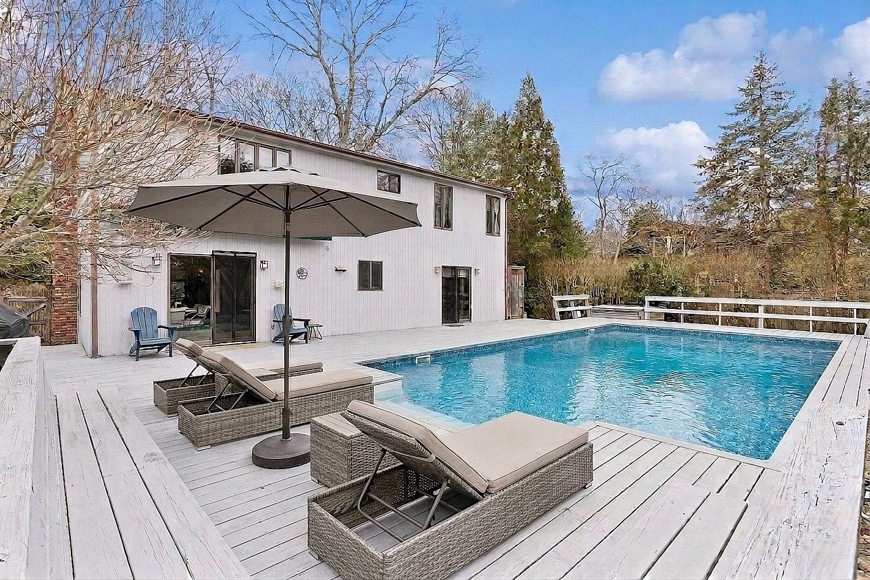 Located in the desirable Clearwater Beach community, this well-maintained 4-bedroom, 2-bath home offers comfort, functionality, and strong upside in a prime East Hampton setting. The home features wood floors, a wood-burning fireplace, skylights, and a bright, open layout. A renovated kitchen (2018) with updated appliances and refreshed bathrooms provide a move-in ready feel. Enjoy a private backyard with a 40x20 in-ground pool, new motor and