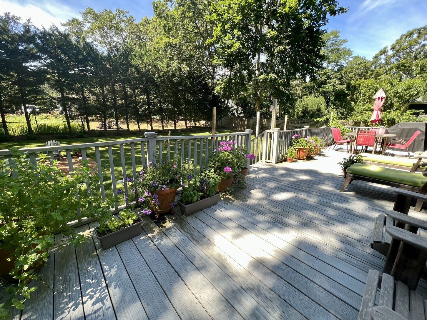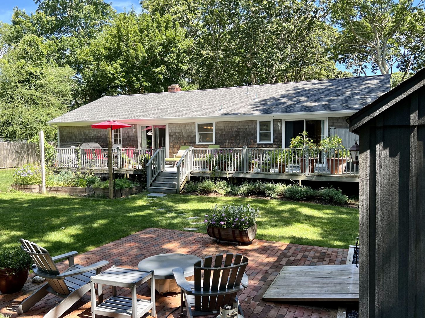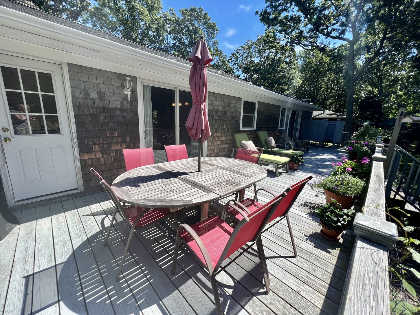 Just minutes from Southampton Village and Ocean Beaches. Bright and light open living area with fireplace, gourmet kitchen with island and dining area. Three bedrooms and 2 bathrooms. Living room with fireplace. Large rear deck with outdoor shower and outdoor dining with BBQ. Privacy and Great outdoor entertaining areas.