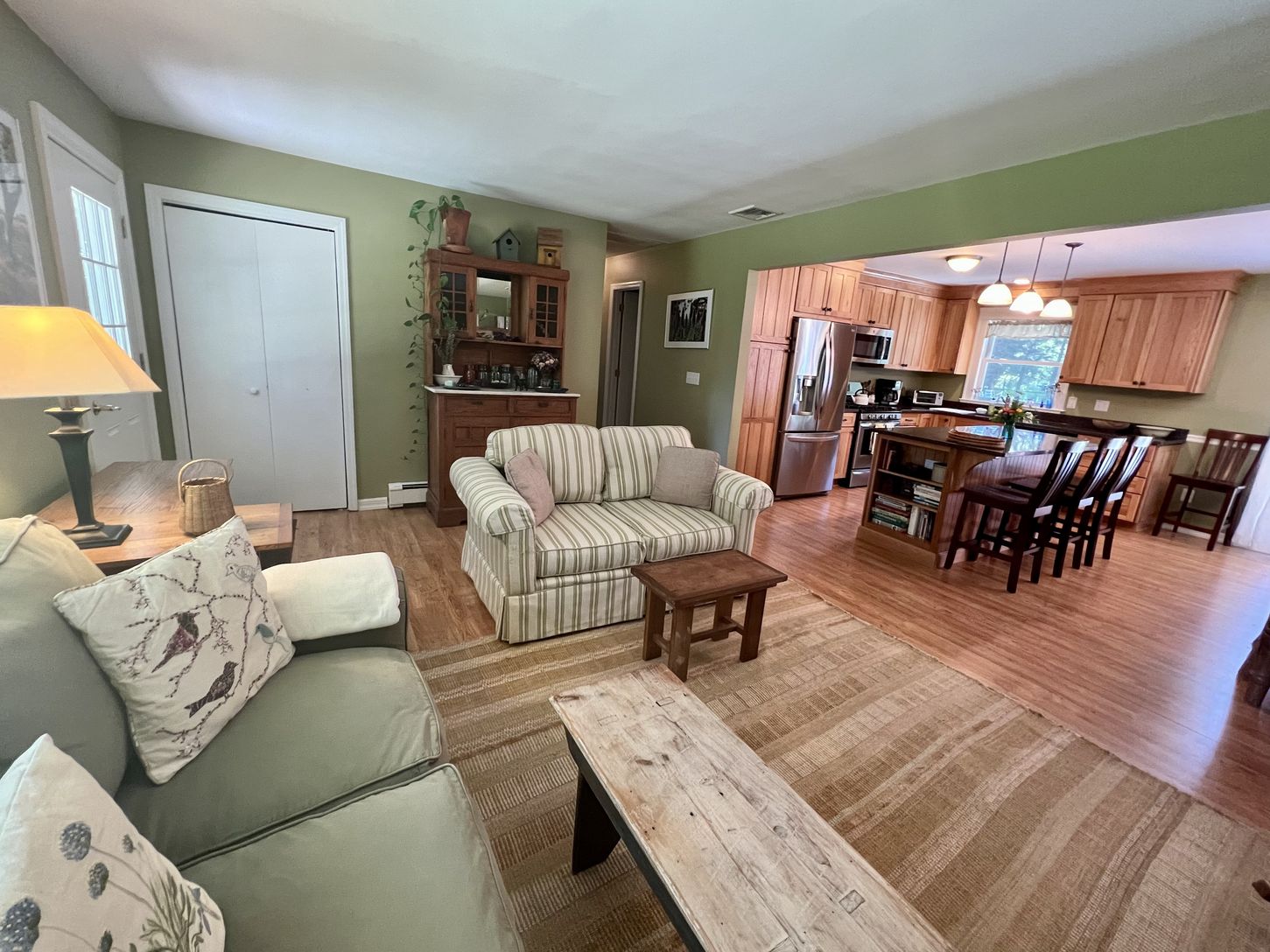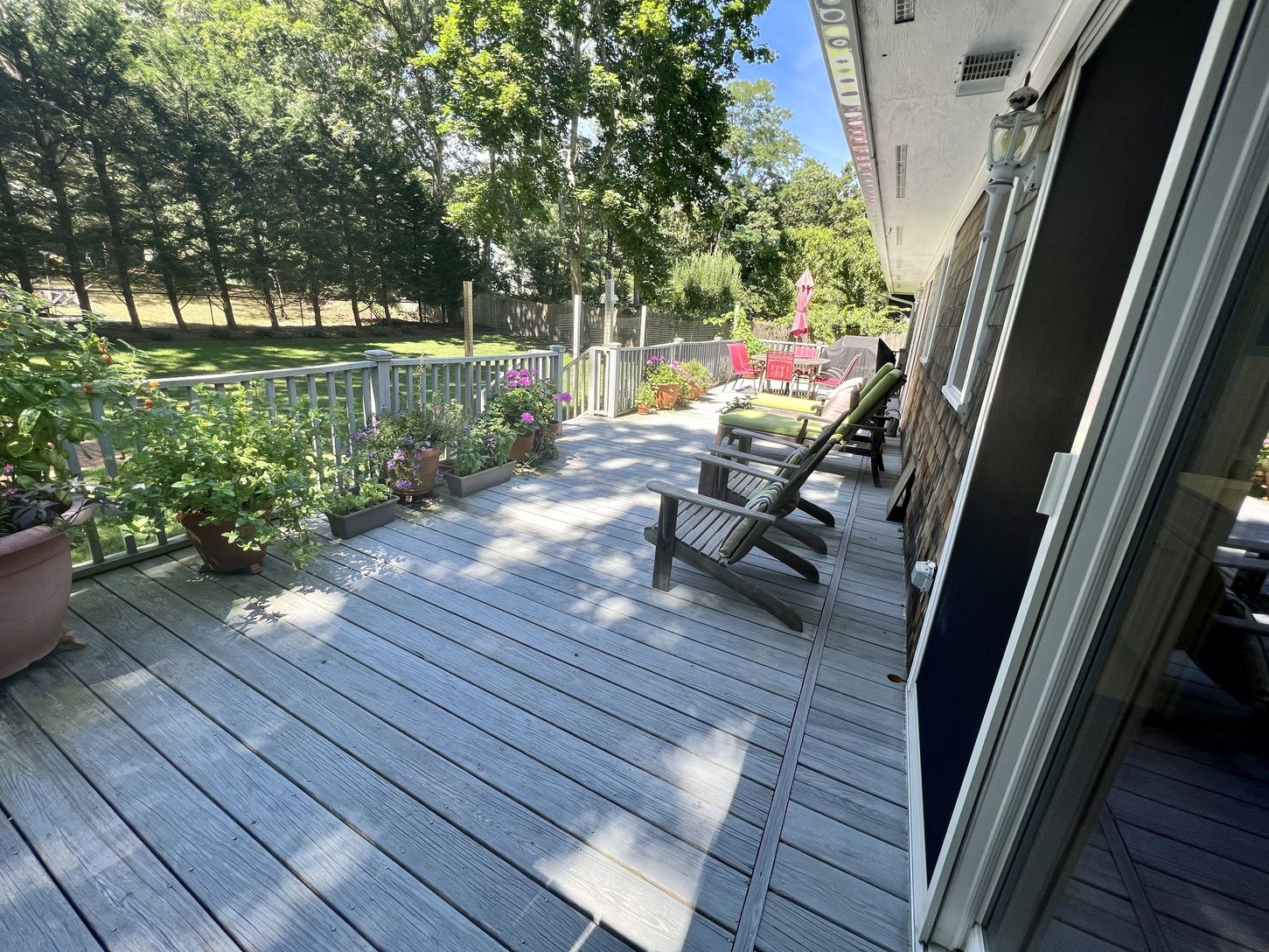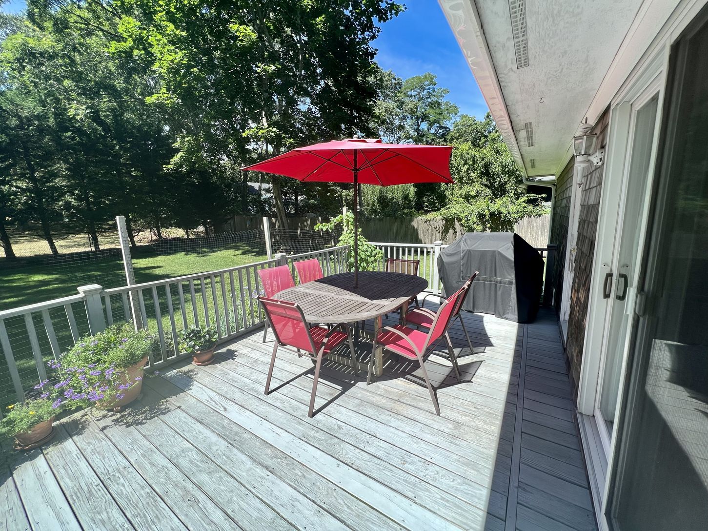 Just minutes from Southampton Village and Ocean Beaches. Bright and light open living area with fireplace, gourmet kitchen with island and dining area. Three bedrooms and 2 bathrooms. Living room with fireplace. Large rear deck with outdoor shower and outdoor dining with BBQ. Privacy and Great outdoor entertaining areas.