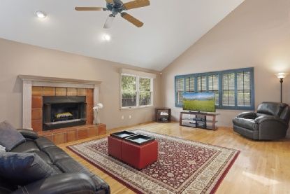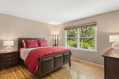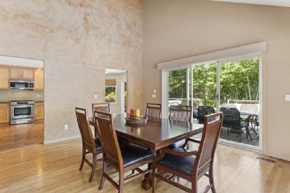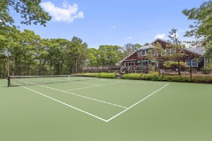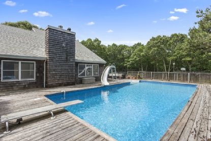 Located on your private 1acre parcel, this newly listed 4 bedroom 2.5 bath Post Modern home is ready for summer or year round living. The open and airy floor plan with vaulted ceilings, fireplace, and nicely updated eat in kitchen opens to your sprawling outdoor living space, deck and pool. First floor offers 3 spacious guest rooms, 1 full and 1 half bath. Enjoy privacy in your second floor master suite overlooking large grounds and tennis