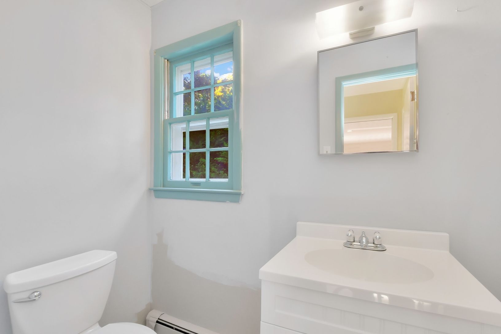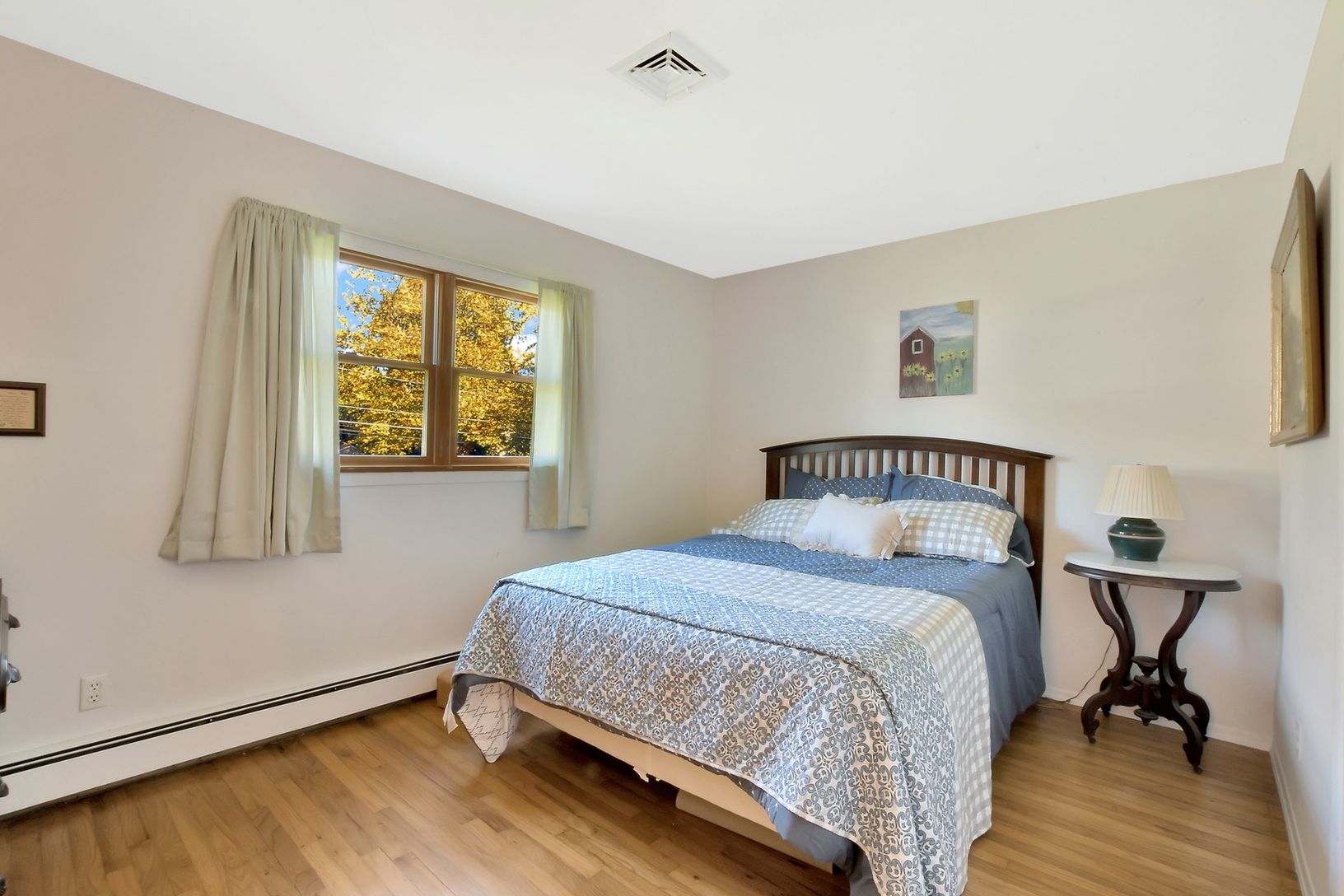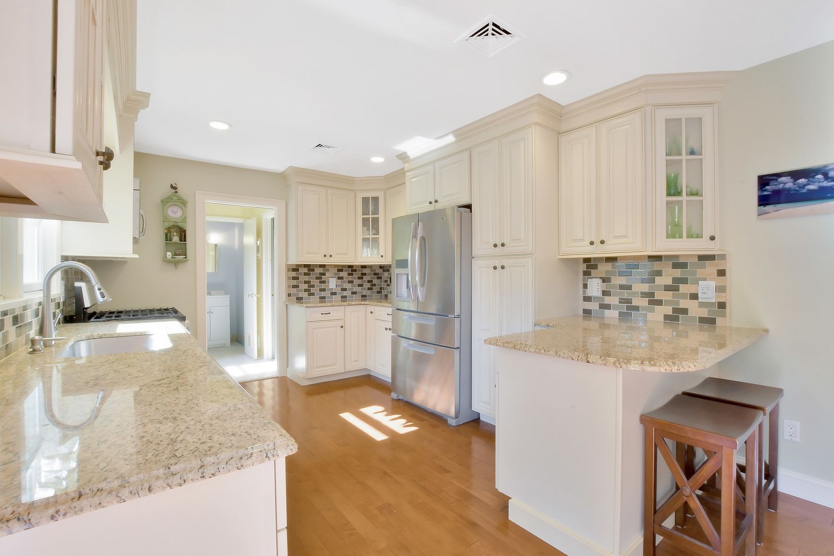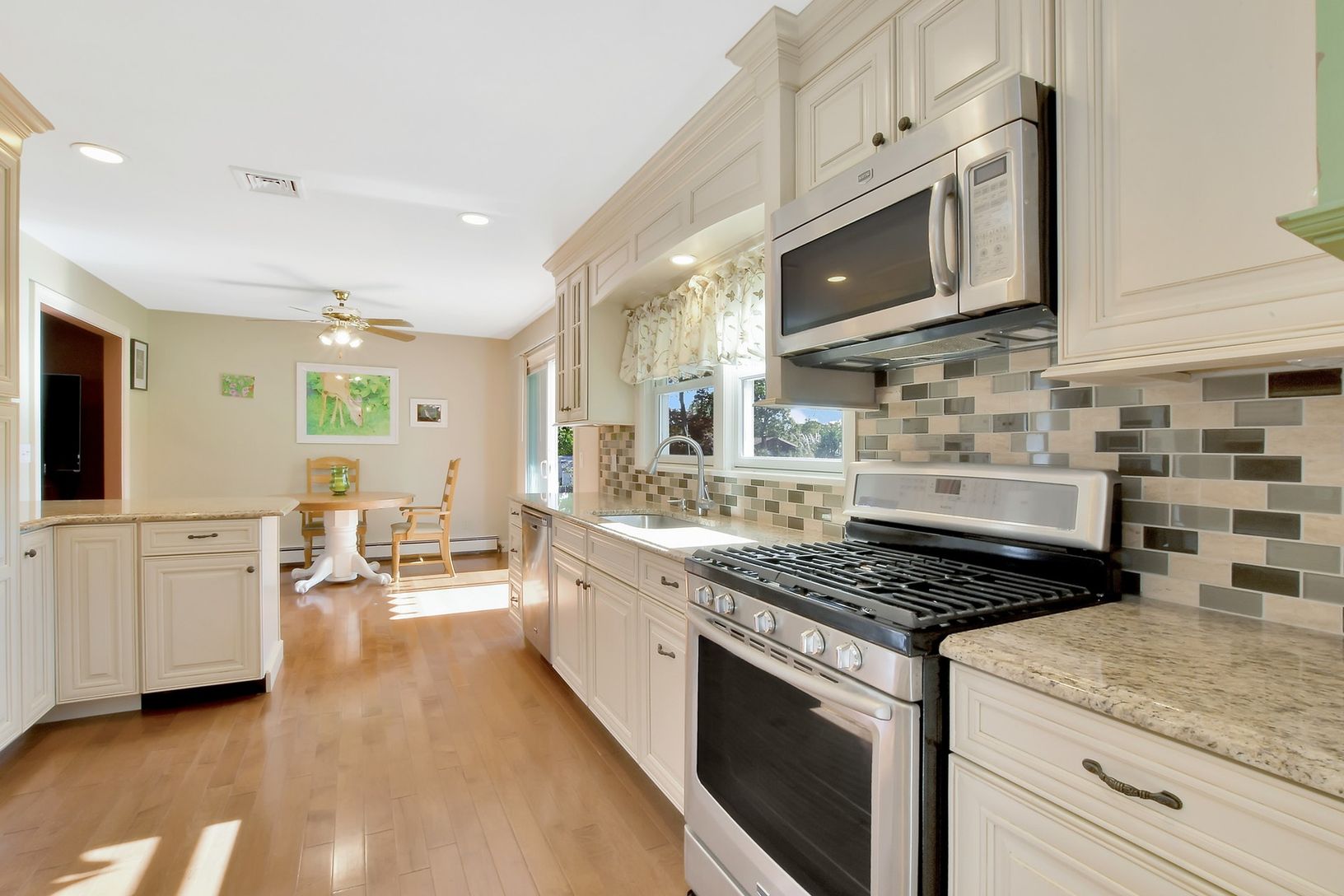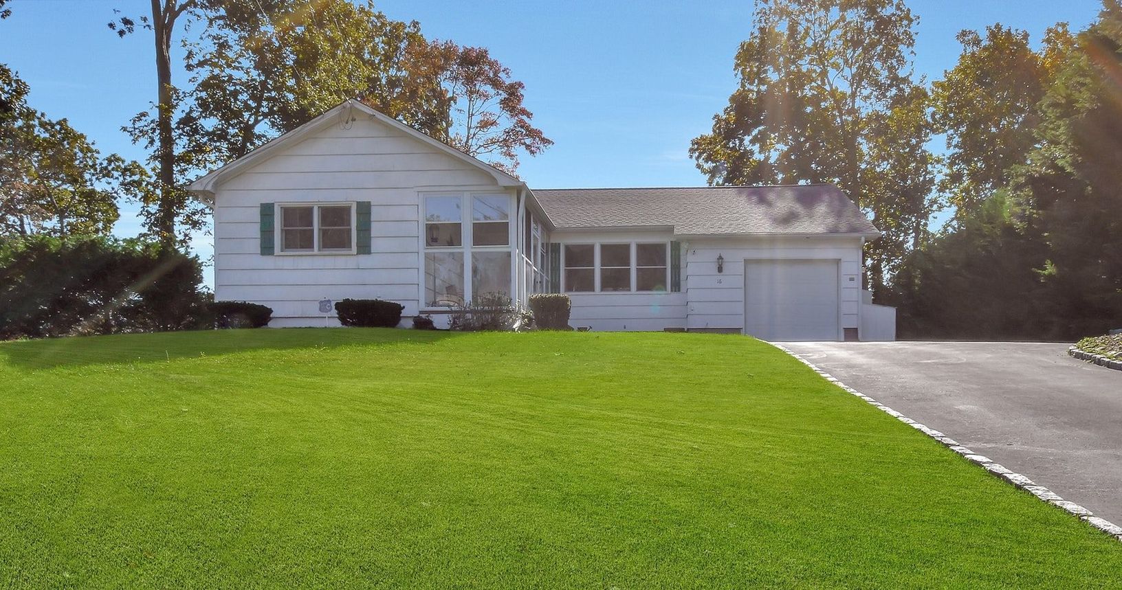 An inviting enclosed sun porch welcomes you to this 1,600 square foot Ranch with lots of potential. Three bedrooms, 1.5 baths, beautifully updated spacious kitchen with dining area, wood floors throughout, central air-conditioning, full basement and a new burner and roof. The .35 acre property offers a large back yard with room for a pool and a 1 car garage, and a full basement waiting to be finished. Enjoy fabulous South Shore beaches and b