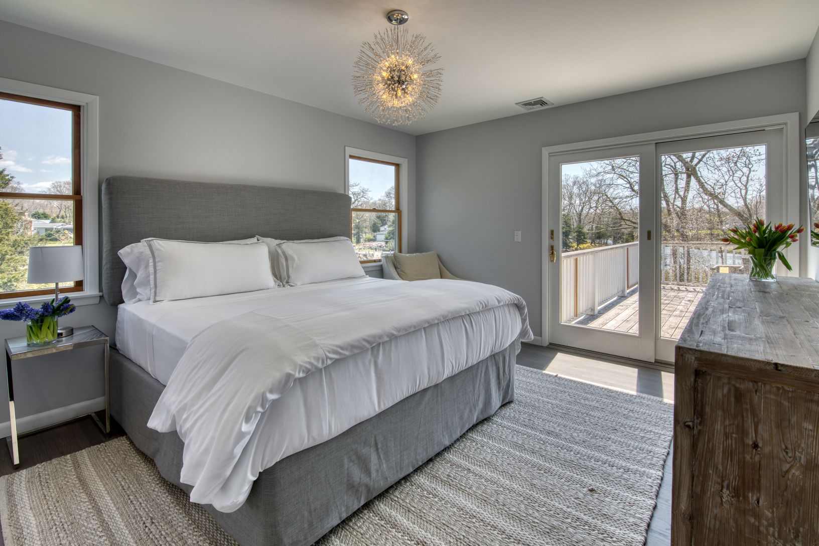 Fully renovated 3-bedroom, 2-bath waterfront home with private dock access. The upstairs primary suite features a spacious deck with sweeping water views, a walk-in closet, and a beautifully updated marble bath.