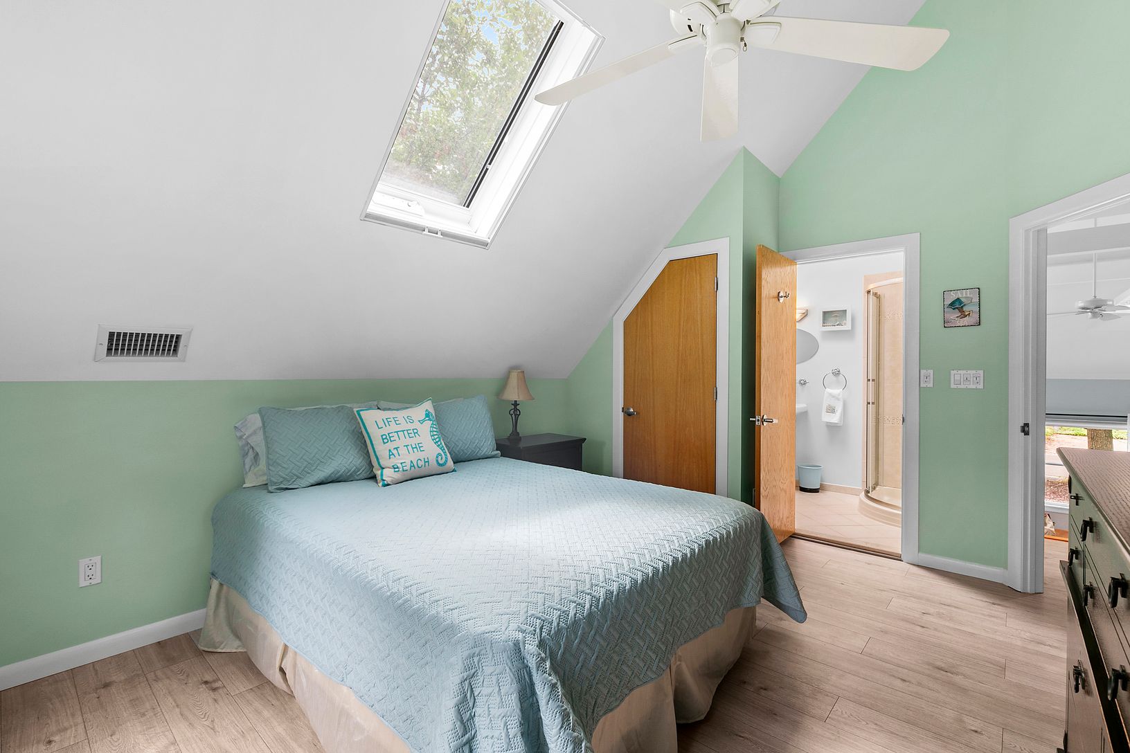 Unlock the potential of this charming, move-in ready 3-bedroom, 3-bathroom home in the desirable Pine Neck community. Perfectly situated just moments from Cromer's Market, local restaurants, a convenient liquor store, and the serene bay beaches. This home offers the best of beach community living. The spacious layout includes one bedroom downstairs and two upstairs with ensuite bathrooms, providing flexibility and privacy. Step into the beauti