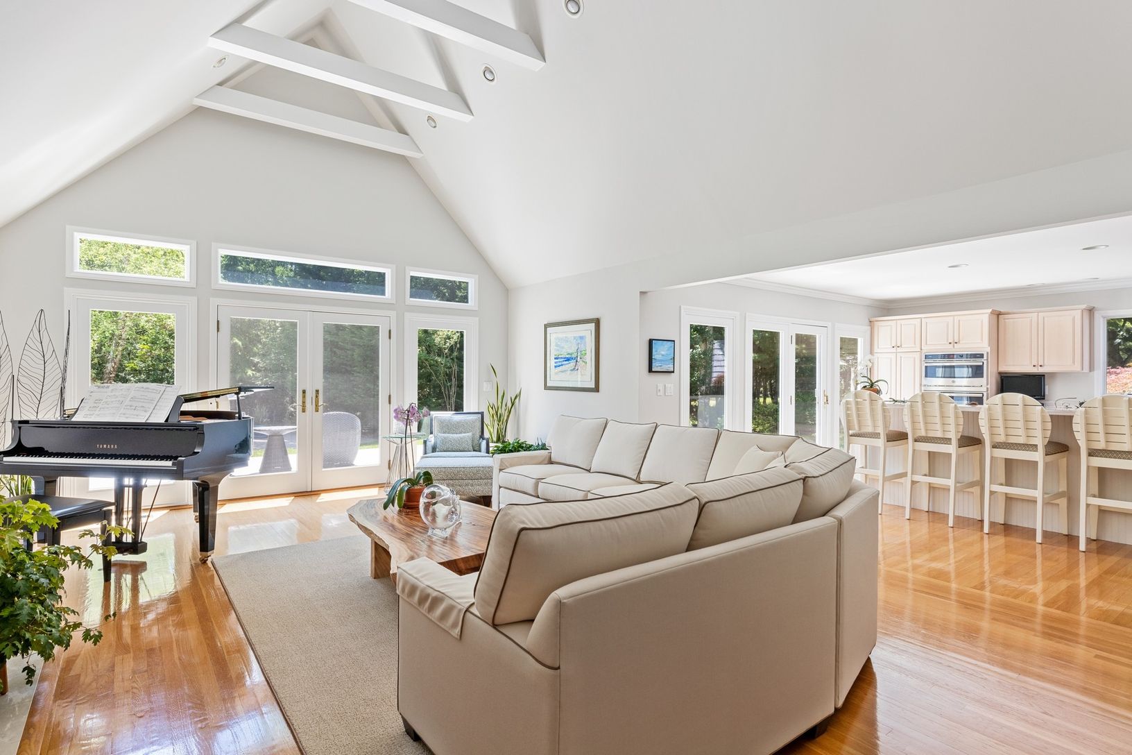 This stunning 2,500 +/- sq. ft. Sag Harbor residence provides the utmost in privacy and relaxation. Ideal East End living, the location is perfect for enjoying kayaking, paddling boarding, biking and swimming in the bay. The sun-filled, fully-furnished two story home offers three bedrooms, two and one half baths, a gourmet kitchen, open dining area, a two story grand living room showcasing a wall of windows, and an additional media room. Outdo