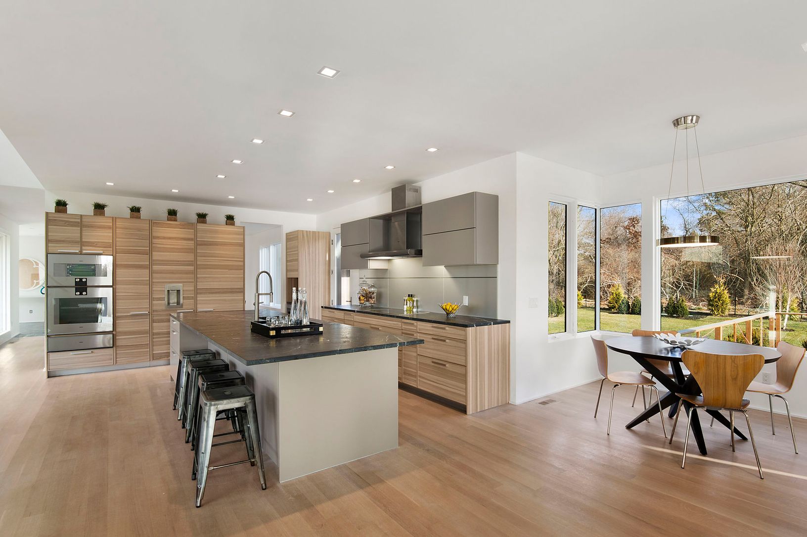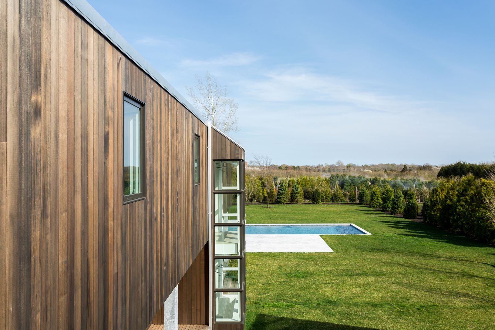 The Gables house is a 5500 sqft architectural masterpiece conceived by noted architect Stuart Narofsky in conjunction with Seaview development. The Palladian inspired architecture features a three-gabled front elevation with distinct modern sight lines, yet incorporates finishes that are traditionally East Hampton. Each of the gables house a distinct element of the house and are positioned to offer vistas of the property which is located momen