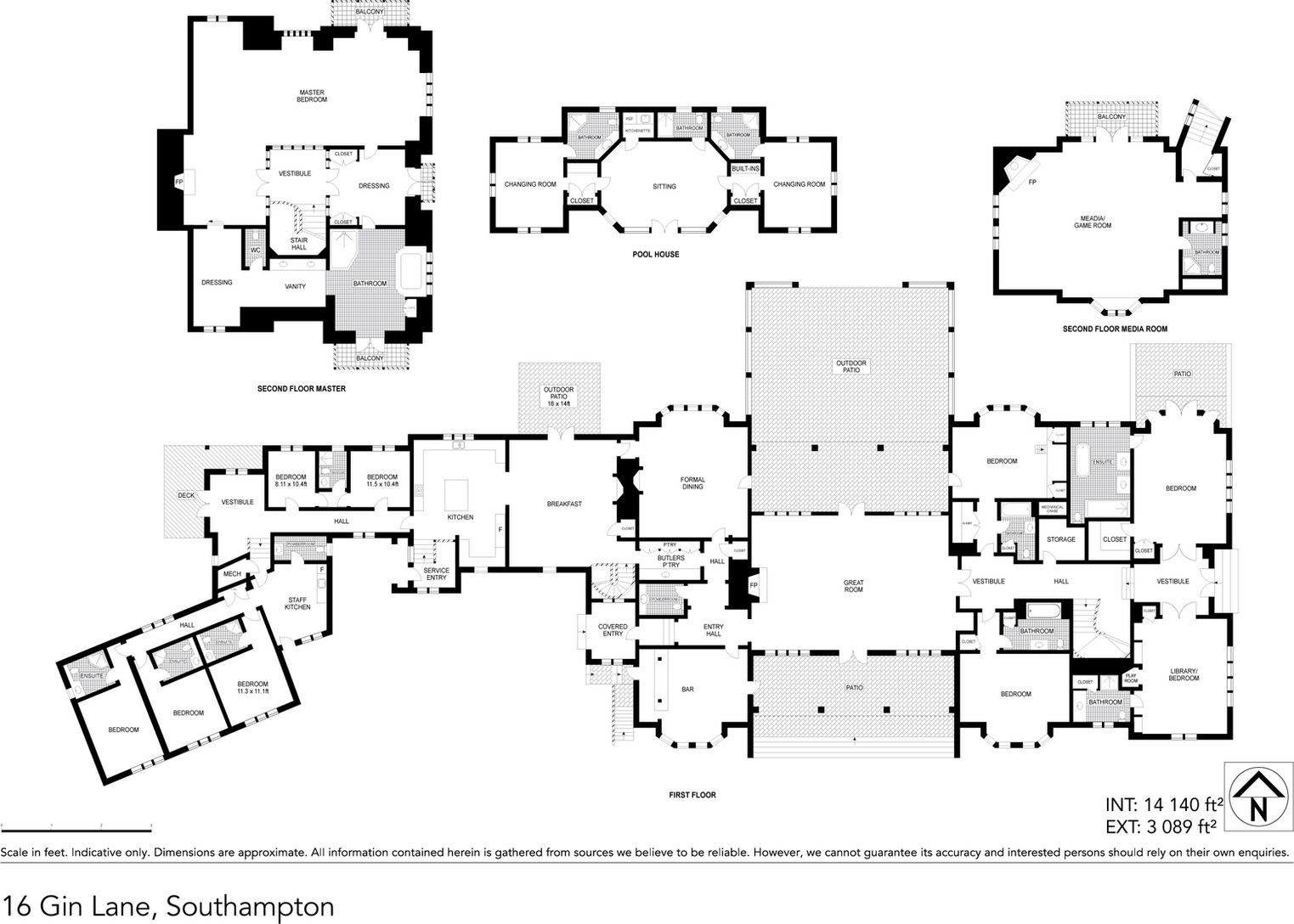 This iconic Gin Lane oceanfront estate offers the ultimate in luxurious retreats with 475 +/- ft. of direct bulkheaded beachfront. Panoramic views extend from the Atlantic to Lake Agawam. The property offers the residence on 5.25+/- acres in addition to four buildable lots for almost 15 acres in all. Built in the late 1920's, the main home exists as originally intended: An extraordinary summer home. The classic English Tudor style house shares