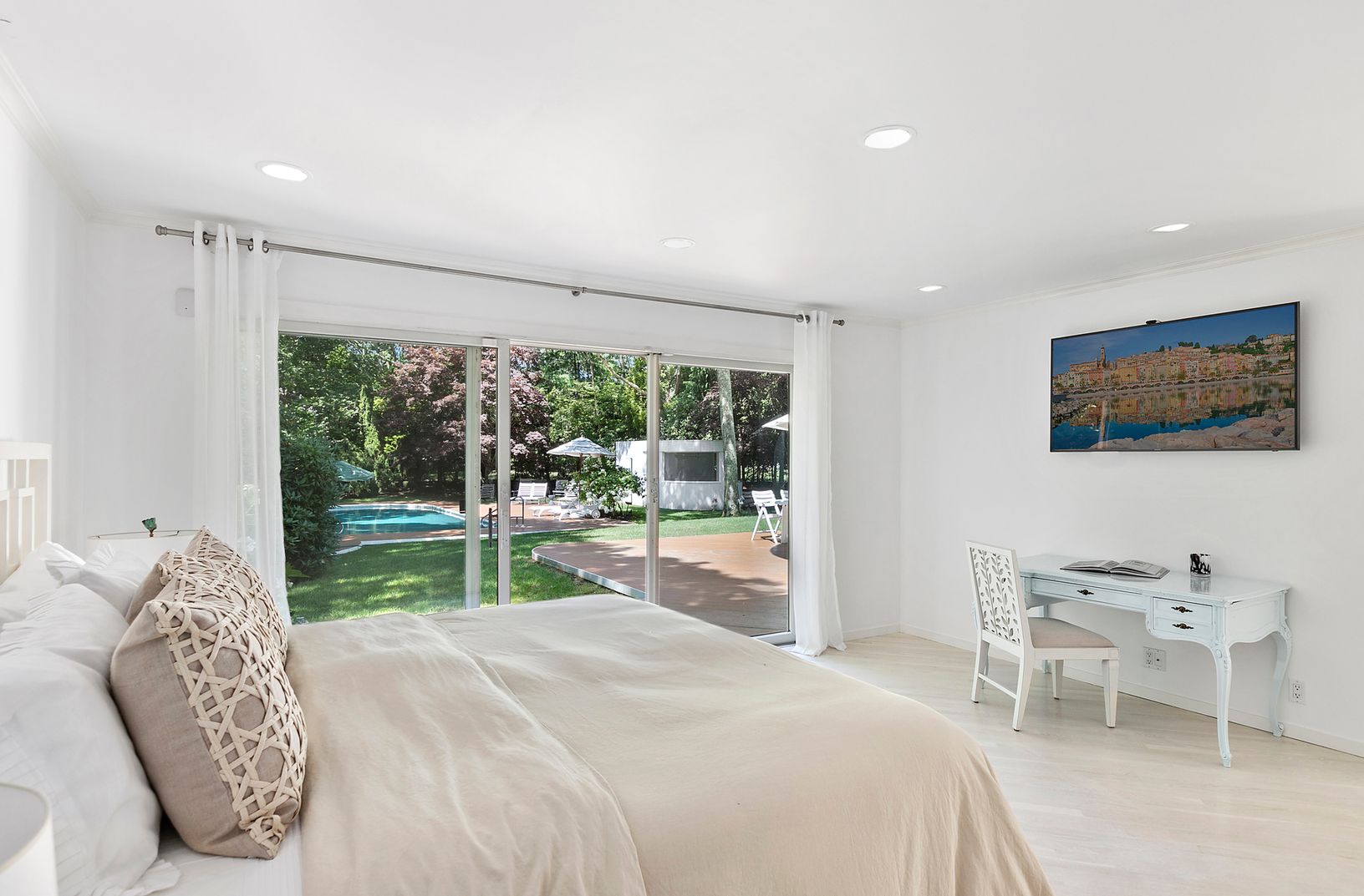Estate Sale in the Hamptons. Opportunity to own a private resort perfectly located south of the highway close to gorgeous ocean beaches. Flooded with natural light, 6 bedrooms plus den and 6.5 baths, in 5,100+/- sq. ft. of recently updated living spaces offer the opportunity to live in a desirable location at the end of a cul de sac street. Upon entry a dramatic living area with vaulted ceiling, gas fireplace, and floor to ceiling windows sets
