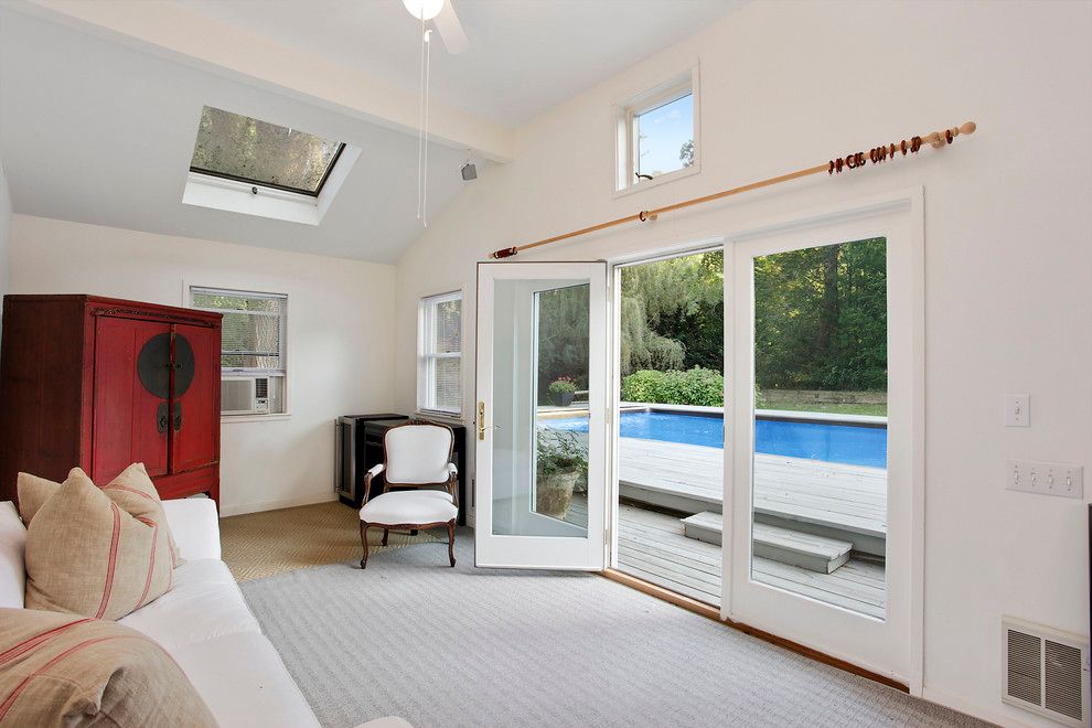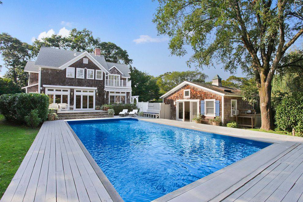 Steps away from Village beach, shops, marinas and restaurants, this five bedroom home is on one acre around the corner from all that Sag Harbor Village has to offer. Flooded with light throughout the day, open floor plan with great room and den, double-sided fireplace, custom kitchen, dining room, spacious master and 4 guest bedrooms. Outside, the bluestone patio, built in barbecue, pool and poolhouse are all surrounded by stunning perennials