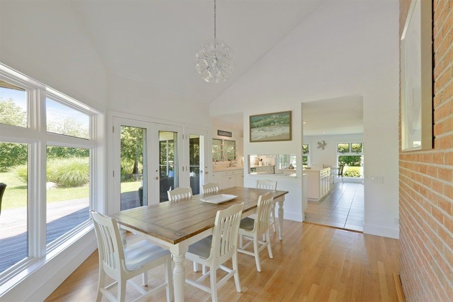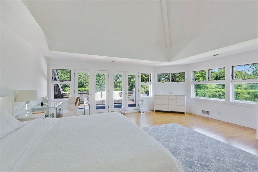 Beautifully appointed post-modern offers generous living and entertaining rooms, 4 bedrooms and 5 full baths. Features include cathedral ceilings, custom French doors, a screened porch, rolling lawn and a heated 44' swimming pool and use of community tennis courts. Short stroll to the ocean completes this wonderful Hamptons retreat.
