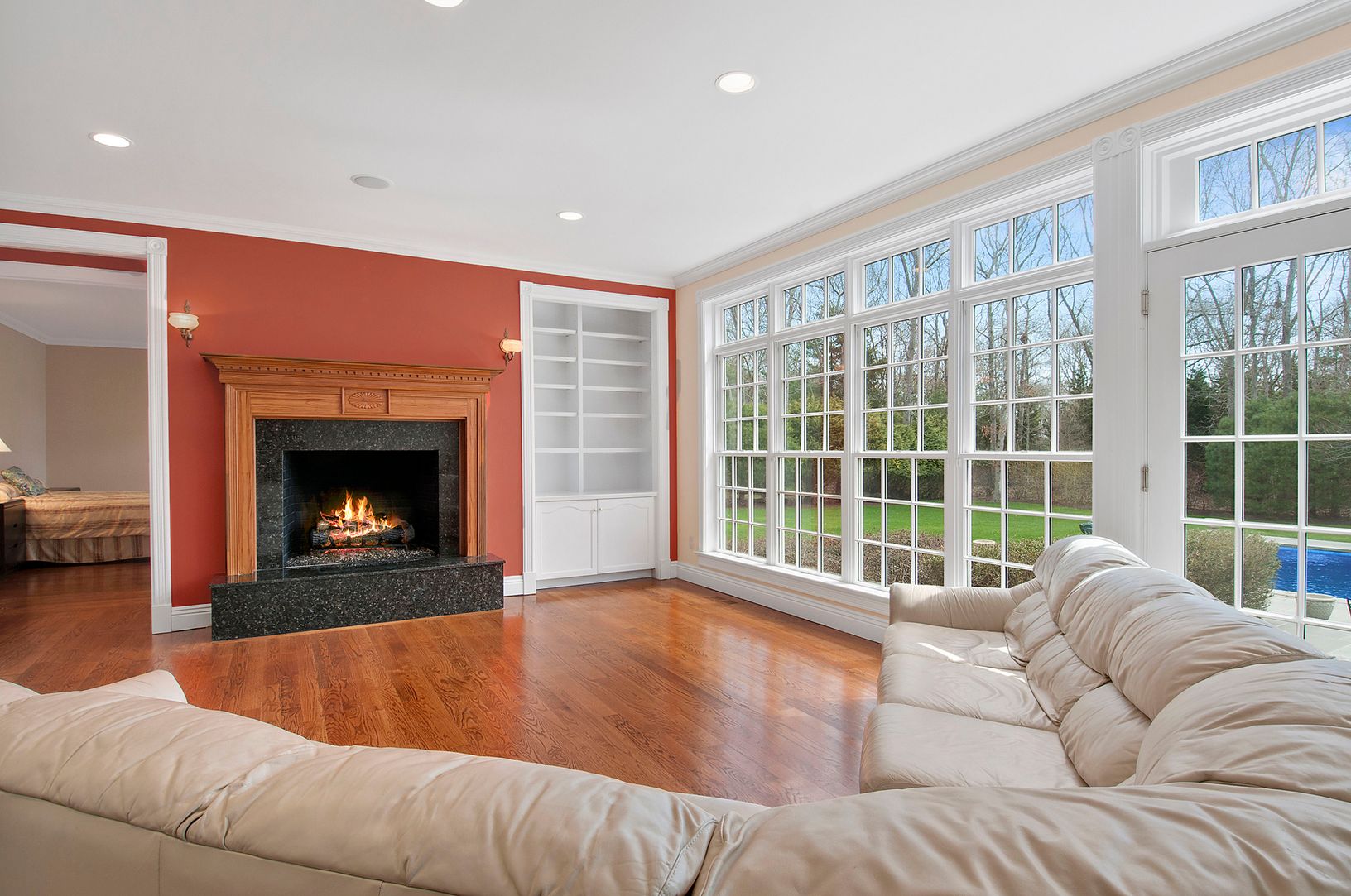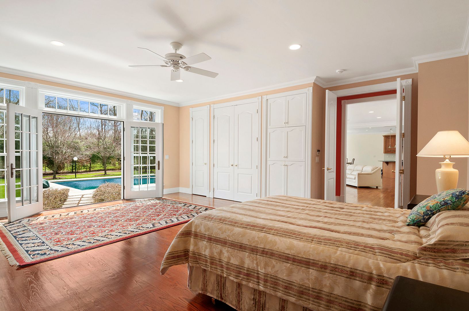 Filled with sunshine and luxurious finishes and amenities, this 4,000+ sq. ft. Post Modern was designed by Hamptons architect Violanda Franzesa and has been meticulously maintained by its present owners. The gracious 2-story foyer leads to an open and well-designed floor plan featuring an oversized great room with gas fireplace (with granite façade) and wall of French doors leading to the lush 1-acre of landscaping that awaits outside. Other f