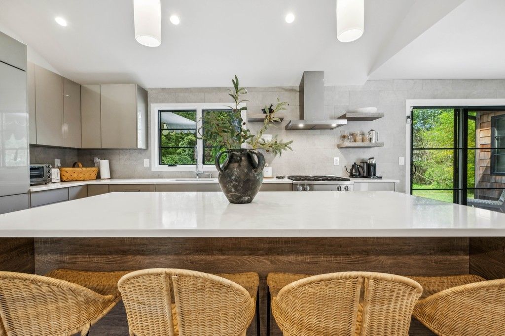 Discover this polished gem in East Hampton that exudes modern elegance and convenience. This recently rebuilt home is a masterful vision of a classic ranch, designed to meet the desires of today’s homeowner. The creation of a total beach house vibe. Revel in expansive open spaces filled with natural light and seamless transitions from the kitchen to the dining, living, and pool areas.