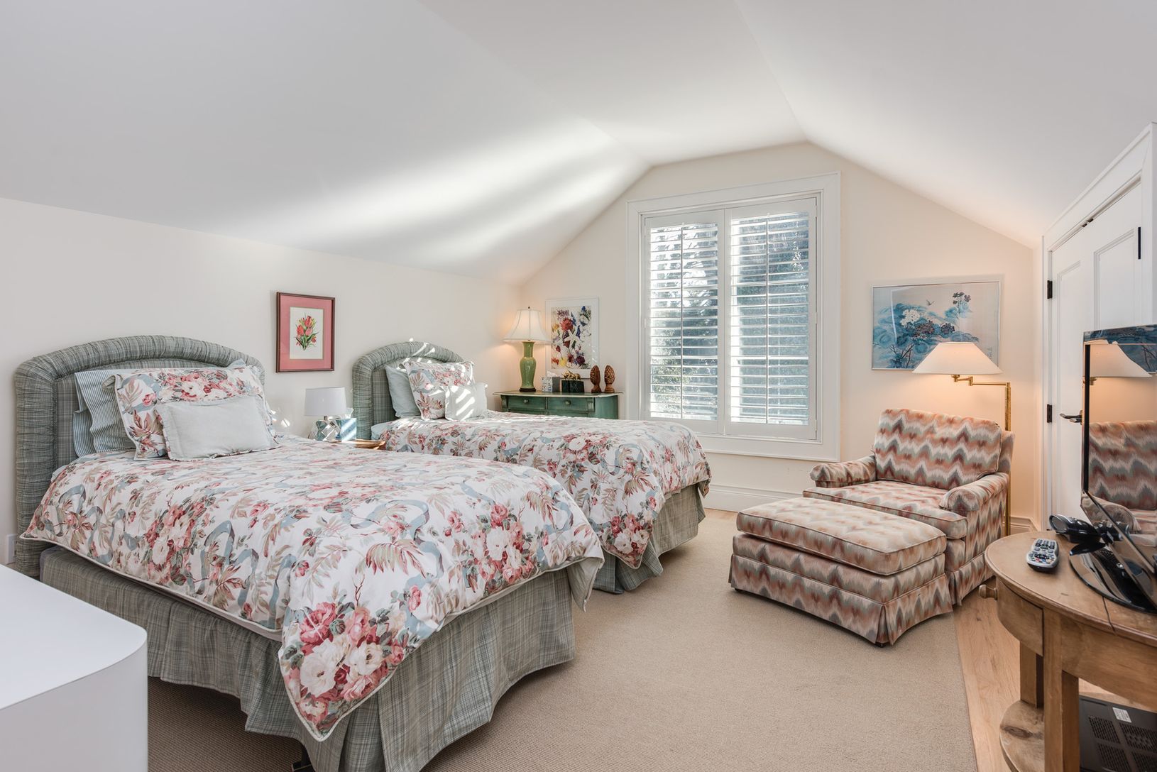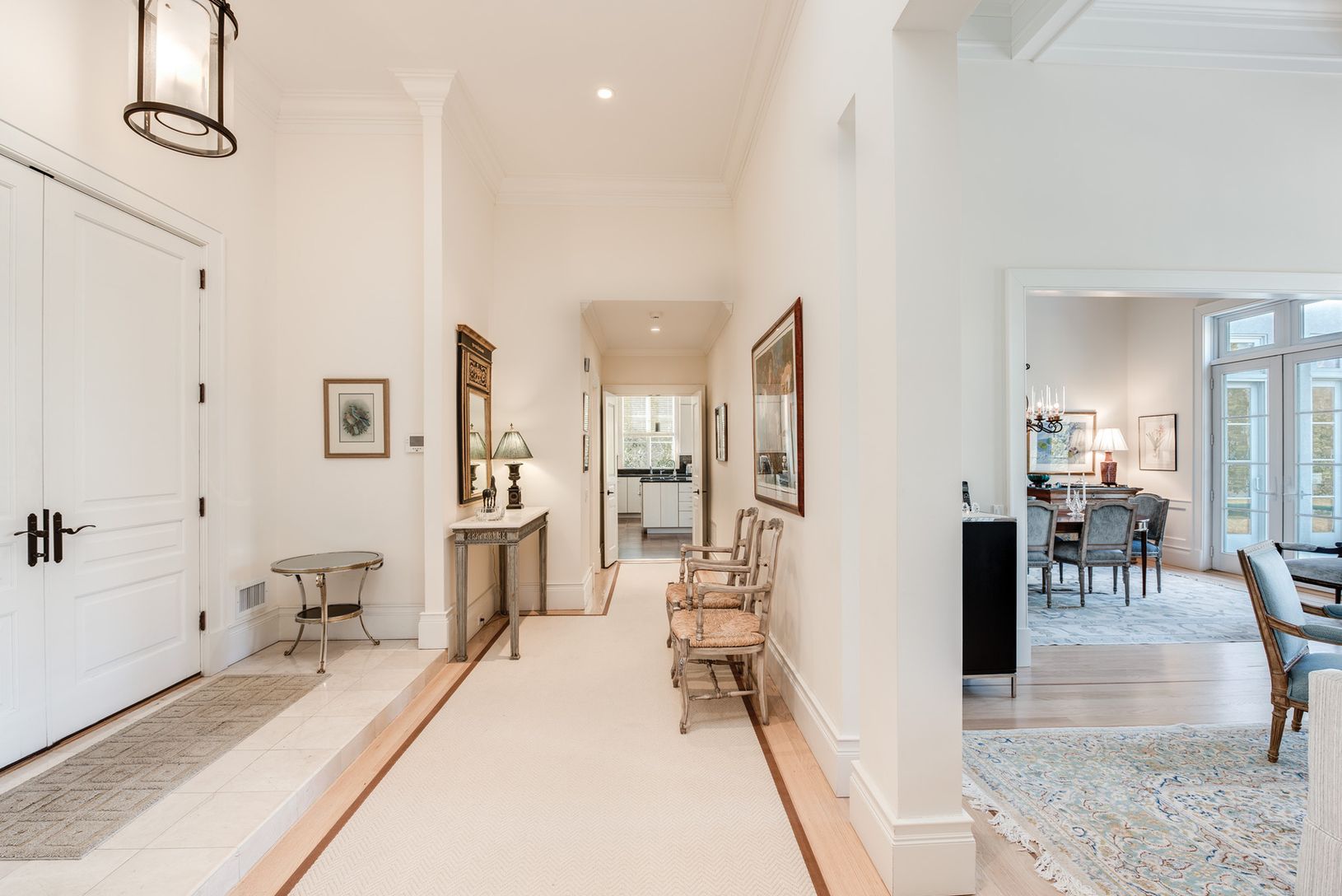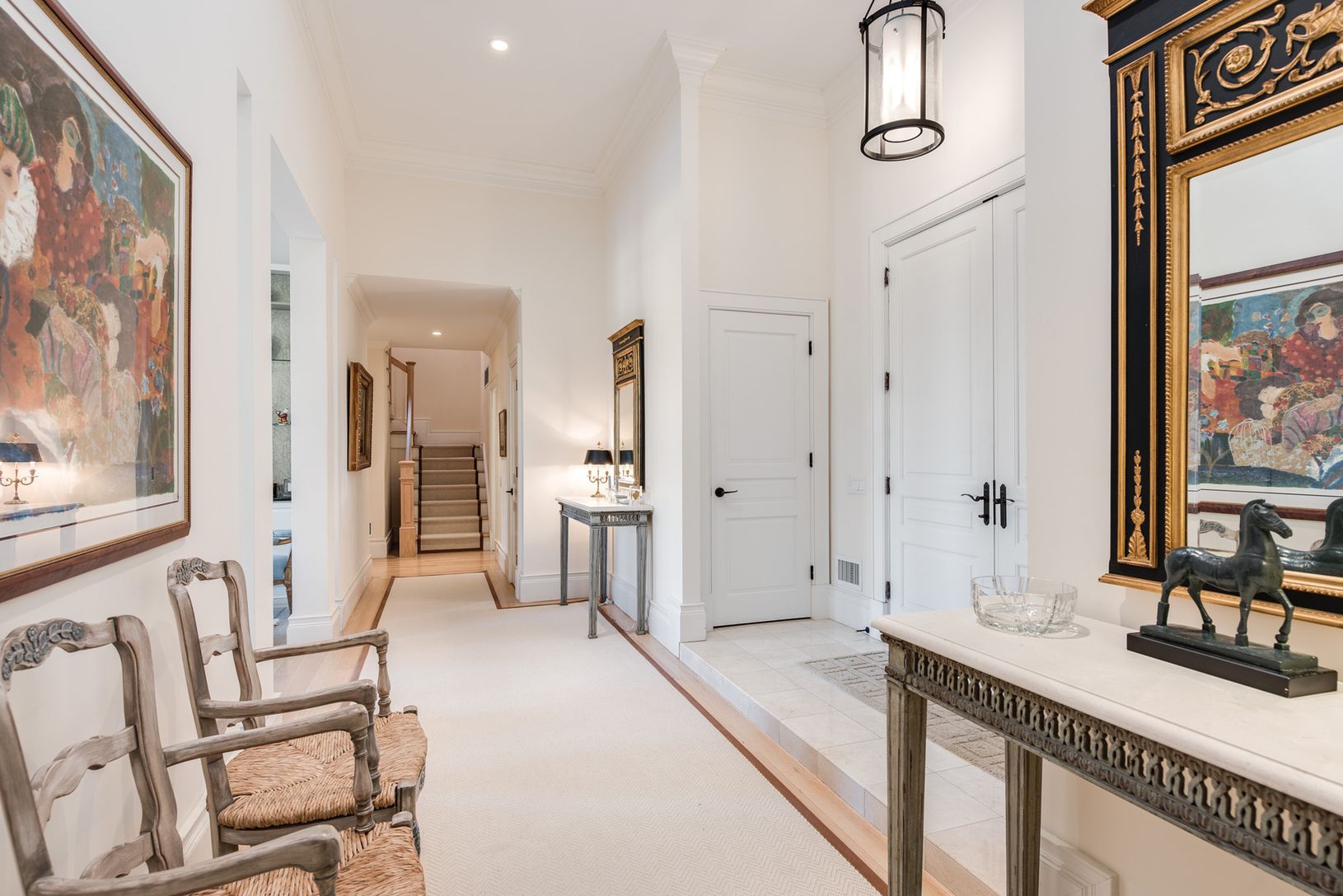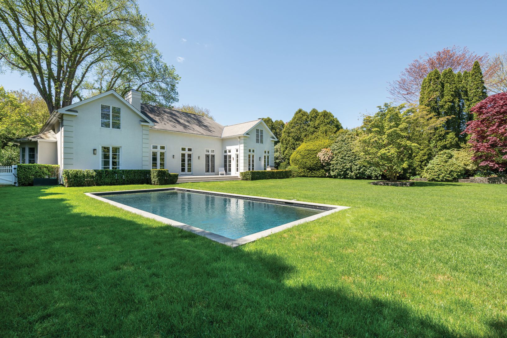 Nestled on one of East Hampton's most delightful village lanes, this wonderful home incorporates the charm of a French country house with all the amenities you expect today. The spacious entry foyer leads to each room on the first floor. The great room features a vaulted coffered ceiling, fireplace and French doors overlooking the terrace and the wonderful private gardens and, of course, the heated gunite pool. There is an eat-in profession