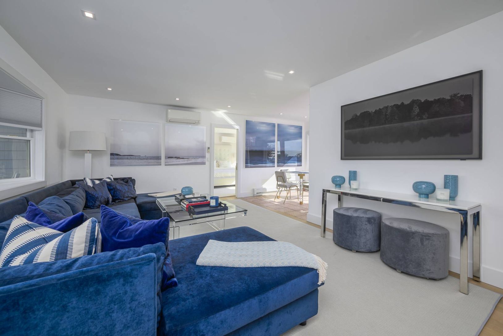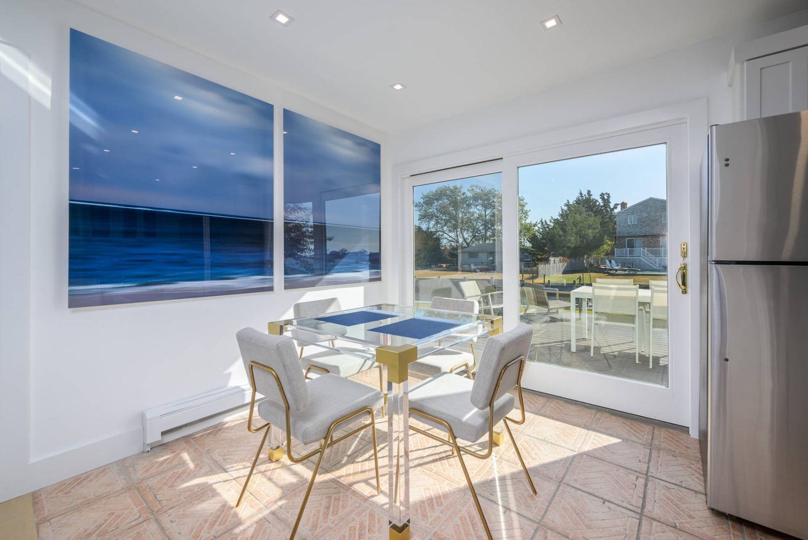 Surrounded by panoramic water views and complete with a private dock. Just renovated, this 3-bedroom home has lots of charm with hardwood floors, exposed brick, and great natural light. An updated kitchen has stainless steel appliances and an adjacent dining space with sliding glass door egress to the patio. The exteriors feature a fire pit, outdoor shower, and ample patio space with a retractable awning, creating a warm and inviting atmospher