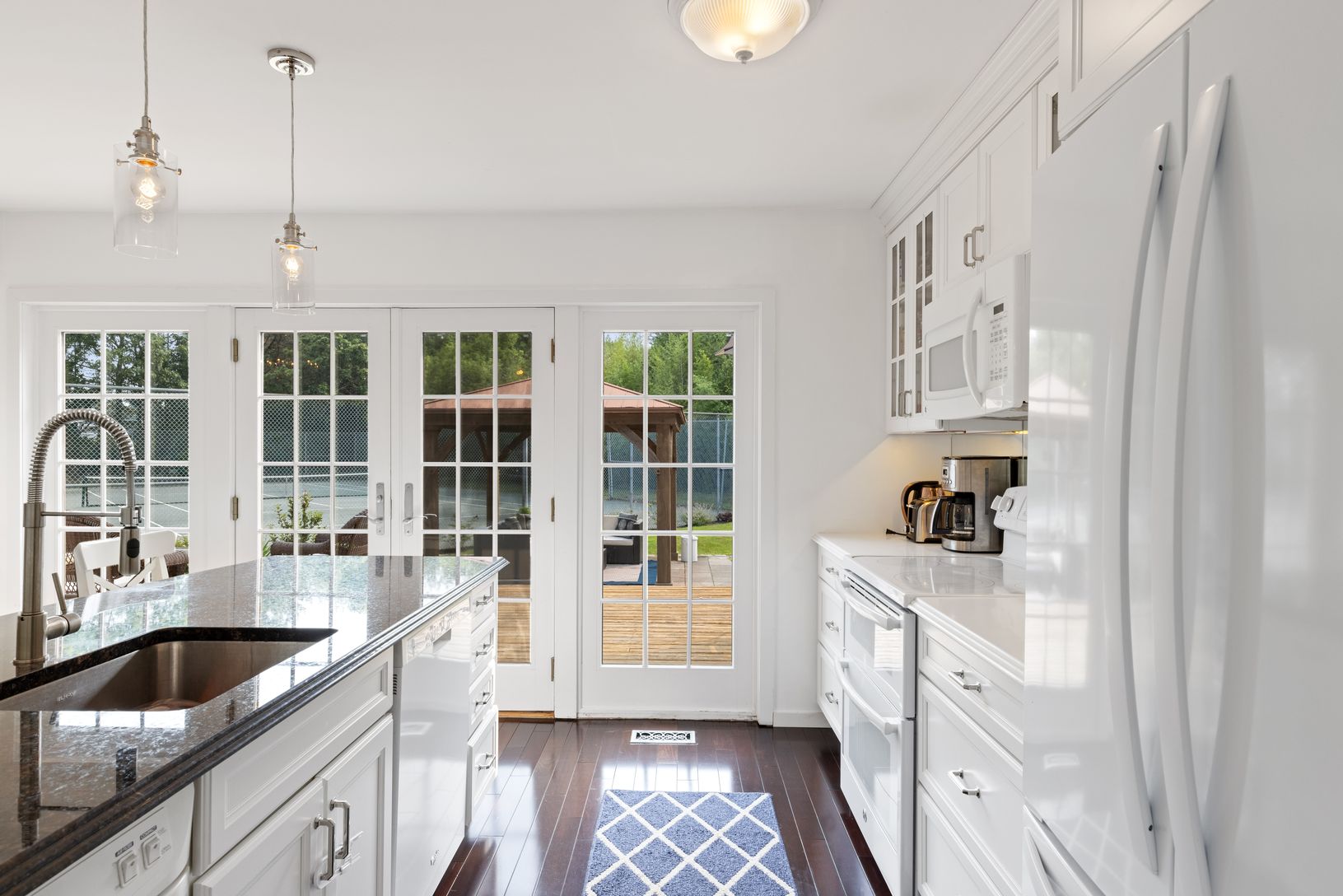 Situated down a long driveway on 1.15 acres sits this beautiful & well maintained private oasis with in-ground heated swimming pool & tennis court . Offering an expanded entrance, an open kitchen & living space perfect for entertaining, first floor master with modern finishes & direct access to the rear deck. Second floor hosts luxury finishes in the bath & two additional bedrooms. A finished lower level with bathroom allow